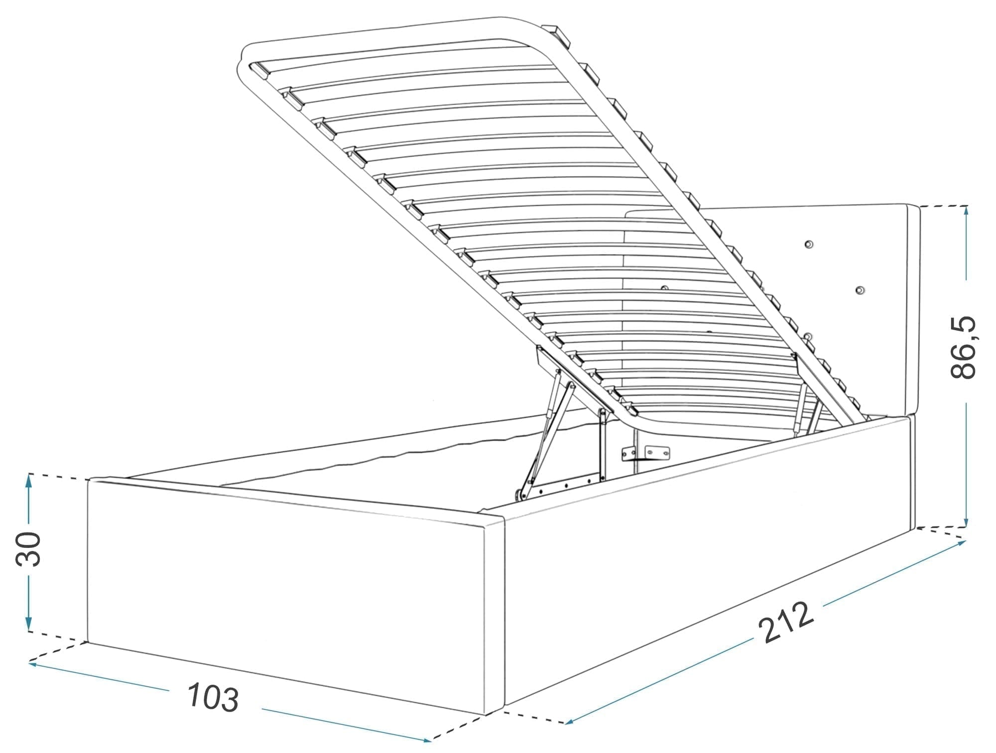 Zaopatrzony w ramki podtrzymujące materac, posiada system podnoszenia w formie dwóch siłowników gazowych a także brzozowe listwy sprężynujące typu flex umieszczone w plastikowych kieszonkach. Rama stelaża wykonana jest ze stali.