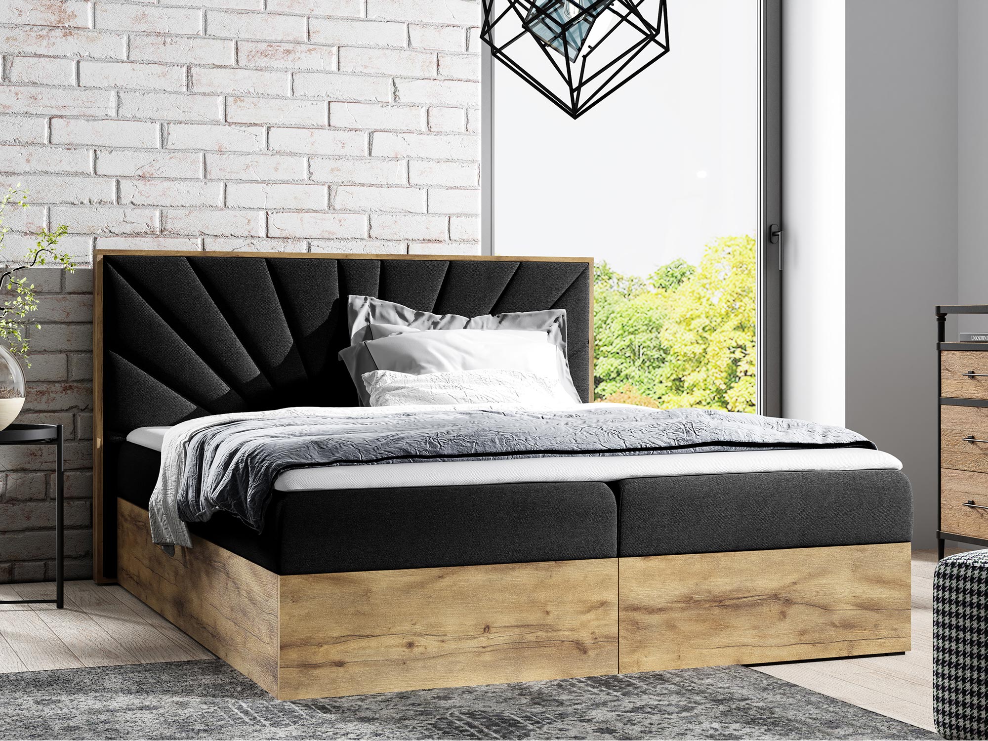 - Dwa pojemniki na pościel, które oferują dodatkową przestrzeń do przechowywania