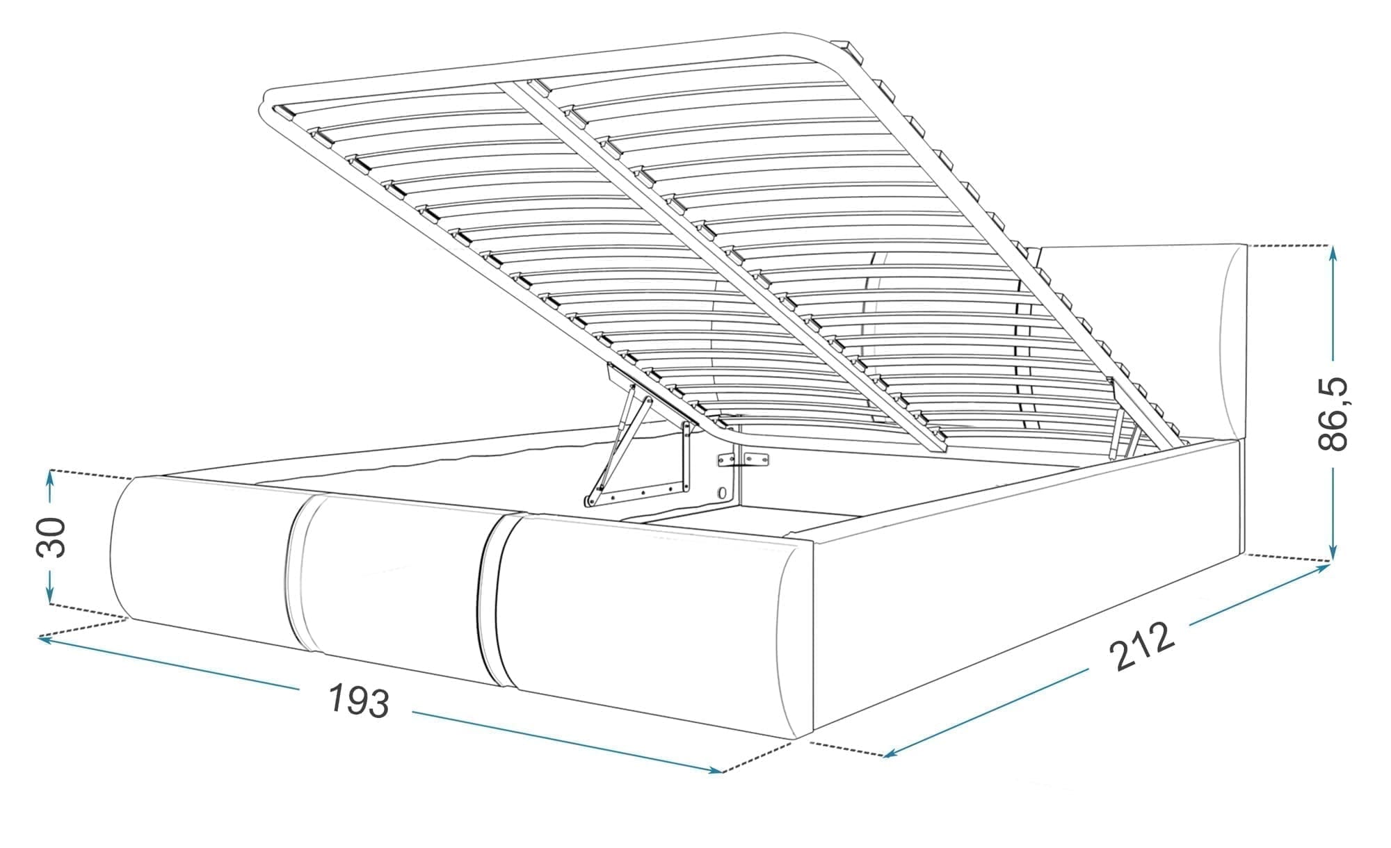 Wyposażony w ramki podpierające materac, posiada mechanizm podnoszenia w formie dwóch siłowników gazowych jak również brzozowe listwy sprężynujące typu flex osadzone w plastikowych kieszonkach. Rama stelaża wykonana ze stali.