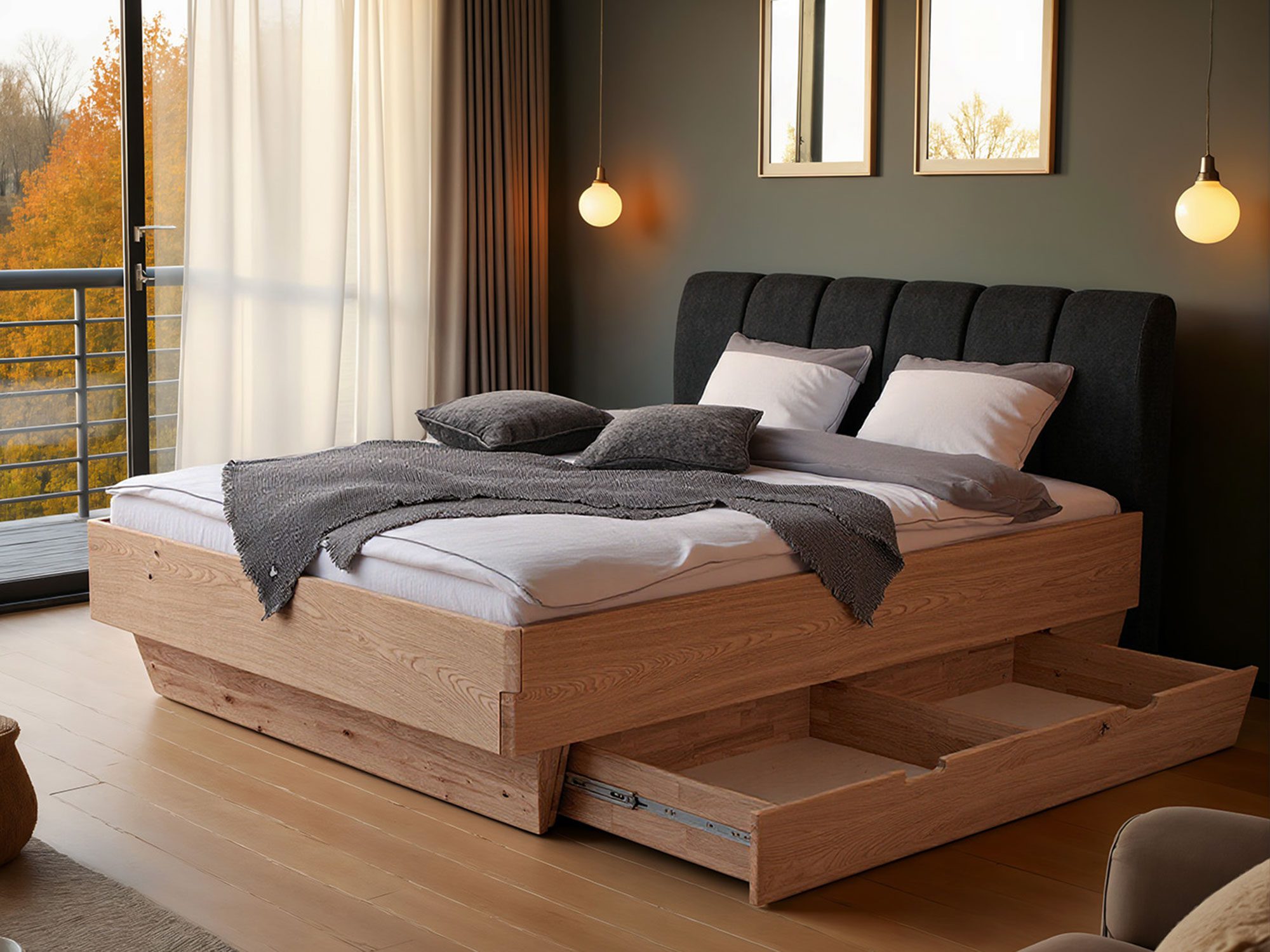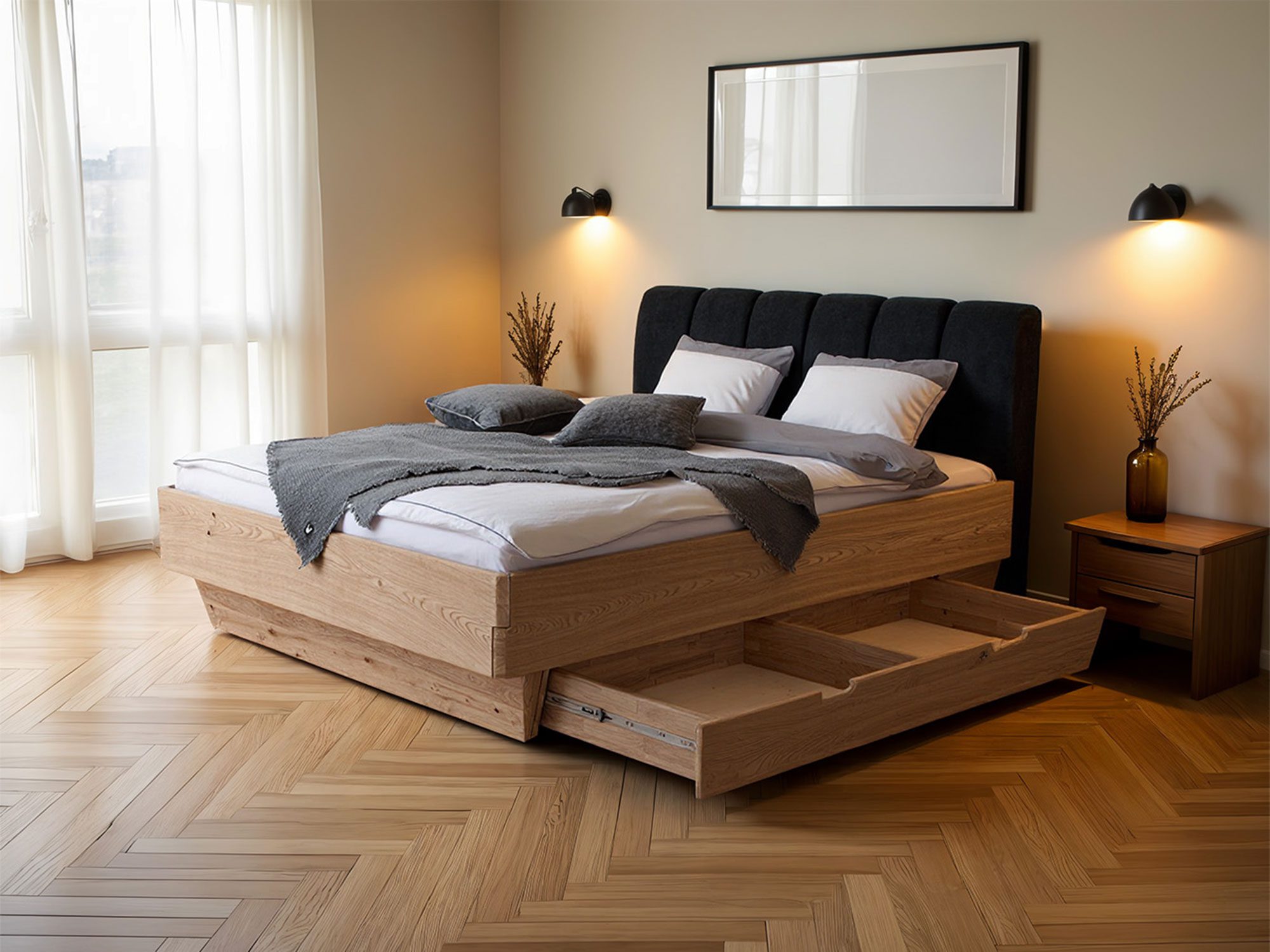 Łóżko dębowe z pojemnikiem – design, materiały i dopracowane detale