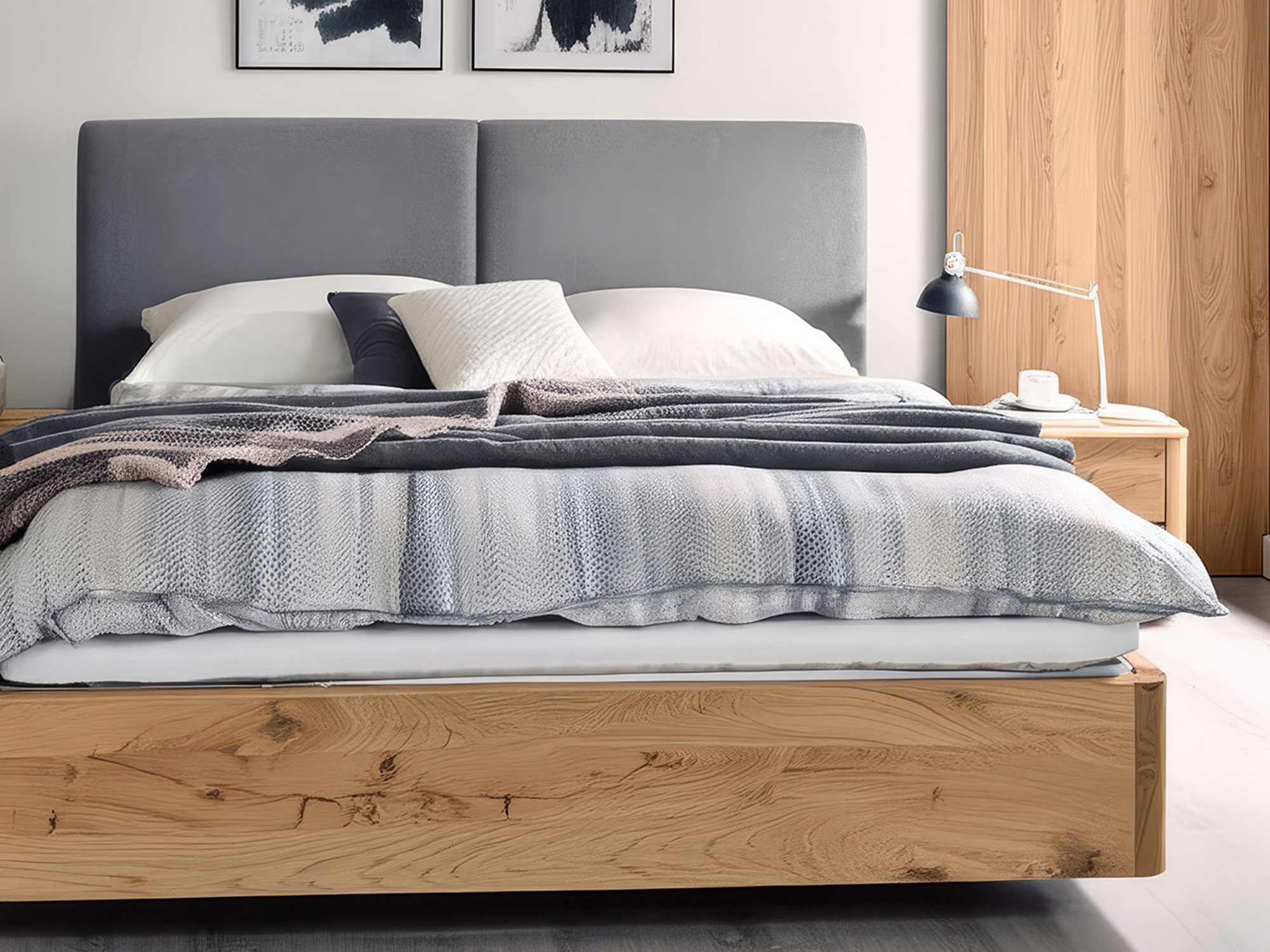 Spójność i uniwersalność aranżacyjna. Lelina A DĄB doskonale odnajdzie się w sypialni nowoczesnej, skandynawskiej, japandi czy minimalistycznej. Naturalne drewno ociepla przestrzeń, a geometryczna bryła wprowadza wizualny porządek. Efekt? Sypialnia, która uspokaja zmysły i wspiera codzienny rytuał regeneracji.