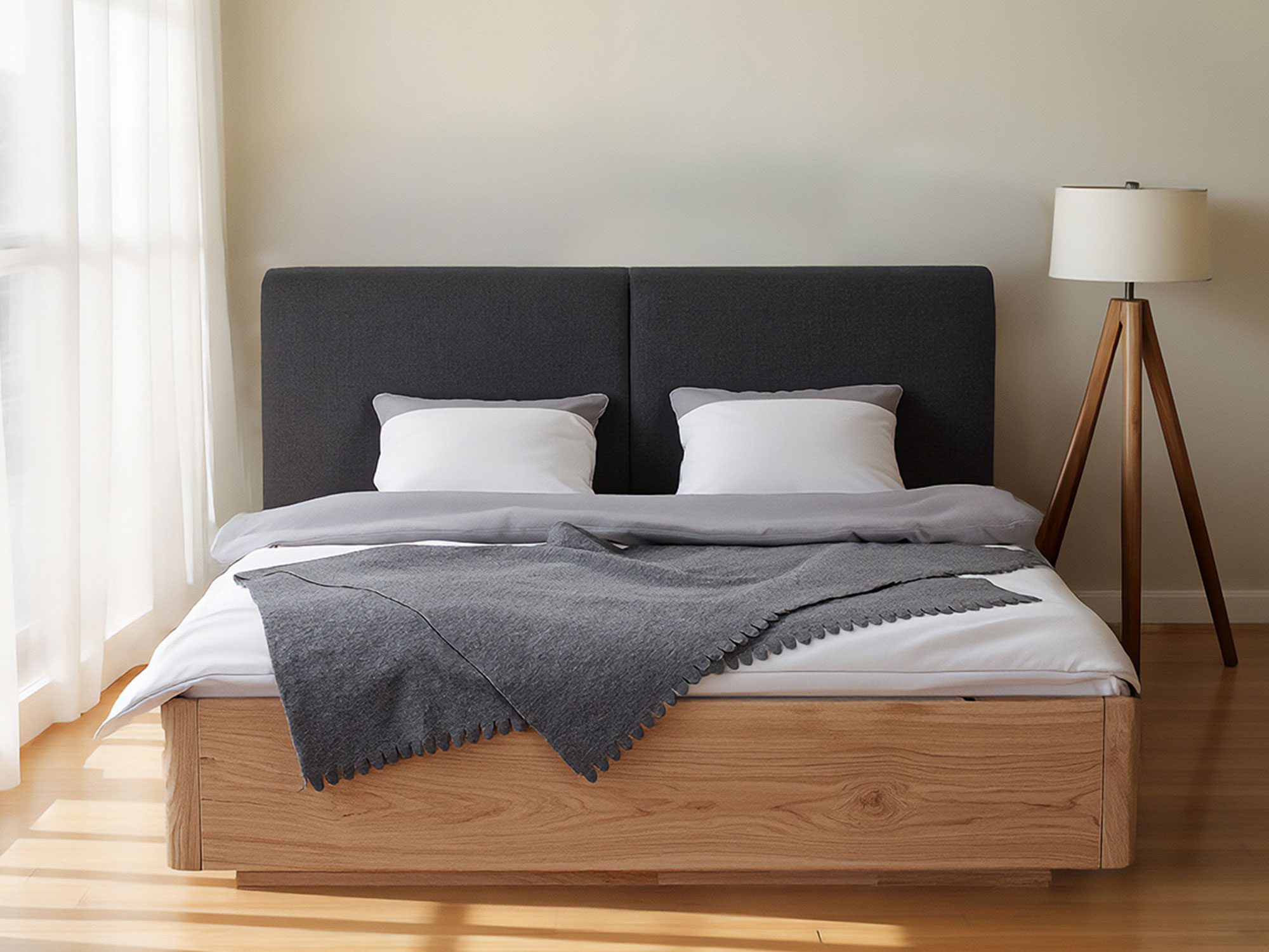 Duży, tapicerowany zagłówek pełni podwójną funkcję: estetyczną i użytkową. Jego miękka, wyściełana struktura daje wygodne oparcie podczas czytania, pracy z laptopem czy porannej kawy, a możliwość wyboru koloru pozwala dopasować łóżko do tekstyliów i barw zastosowanych w sypialni. To osobisty akcent, który udomawia nowoczesną formę.