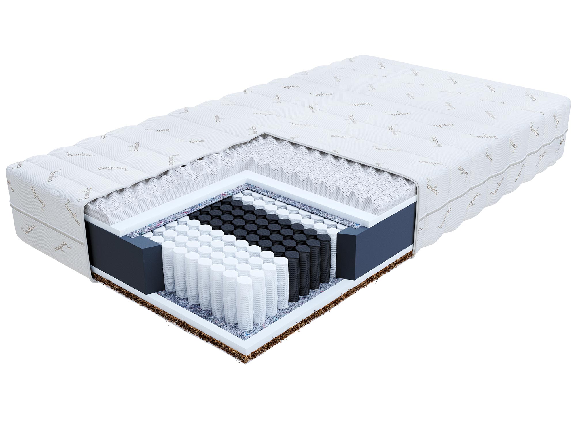 - Wkład Kokosowy: Poprawia cyrkulację powietrza, zapobiega nadmiernemu poceniu się, ma właściwości antyalergiczne, trwały i elastyczny.