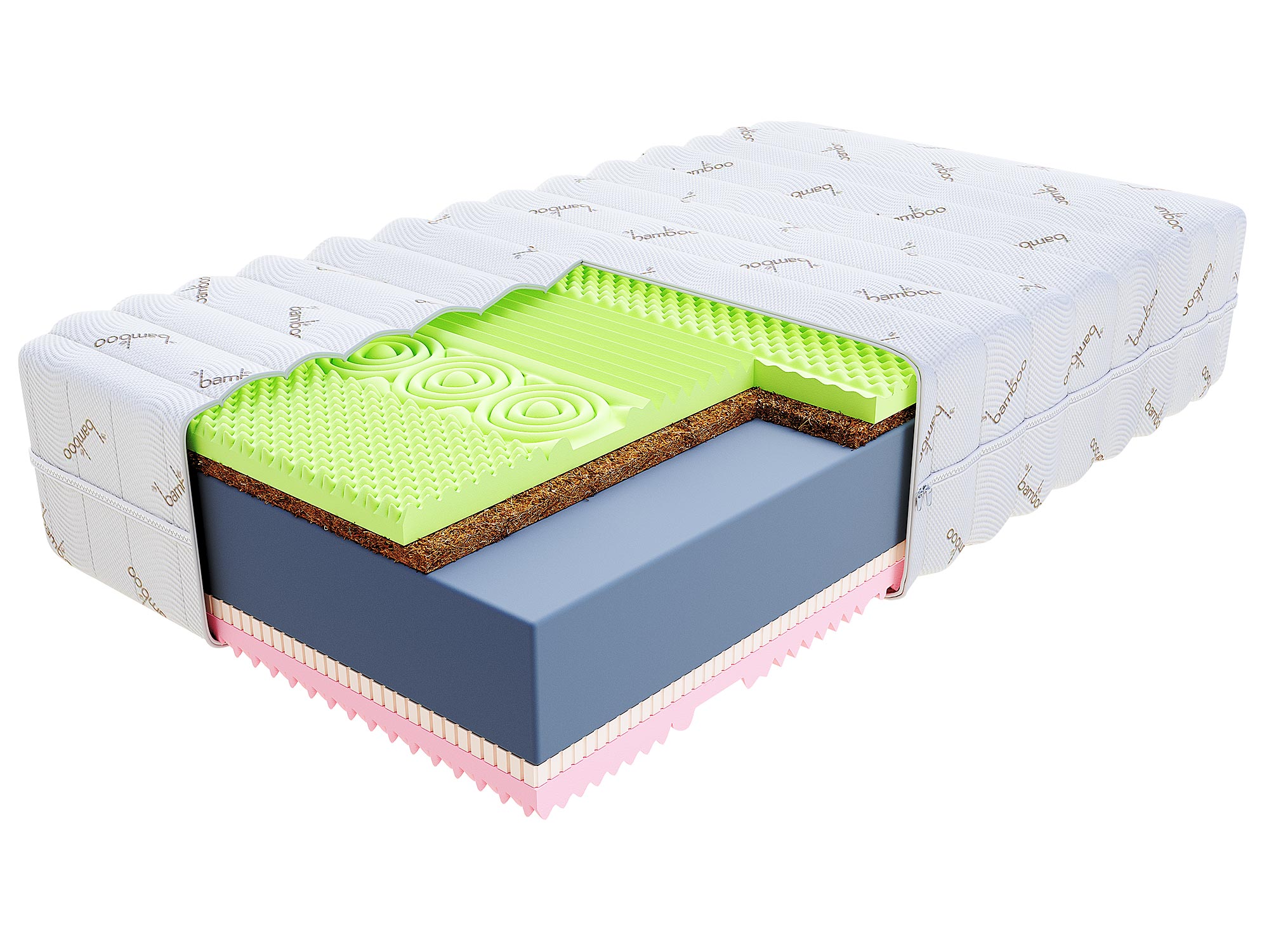 Twardość: H4 twardy, H3 średnio twardy | Grubość: 22cm | Wkład kokosowy: 1cm | Perforowany lateks: 2cm | Pianka poliuretanowa T25: 14cm | Pianka profilowana VISCO: 2cm | Pianka profilowana HR R44: 2cm | Pokrowiec: 1cm |