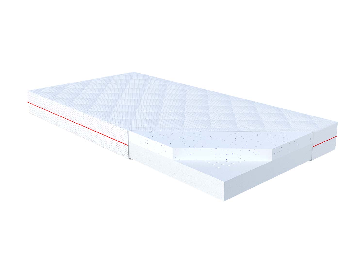 Materac KASAI dostępny  w wielu rozmiarach wykonano z lateksu ocean blue o znamionach termo regulujących i wysokiego gatunku pianki poliuretanowej. Pianka ta cechuje się lekkością, trwałością i odpornością na uszkodzenia.