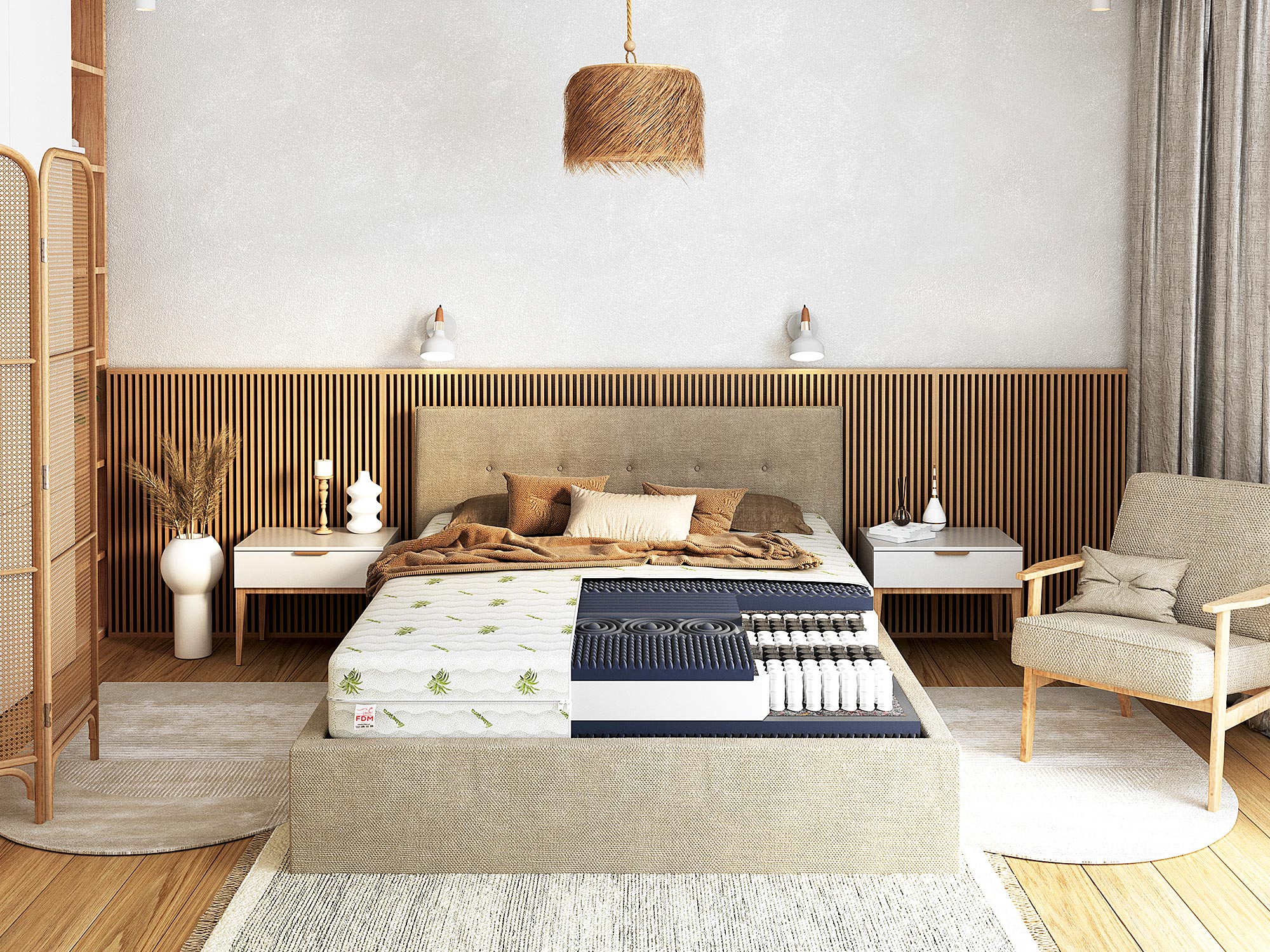 - Przekładka tapicerska – odseparowuje wkład piankowy od sprężynowego, a ponadto wydłuża wytrzymałość materaca.
