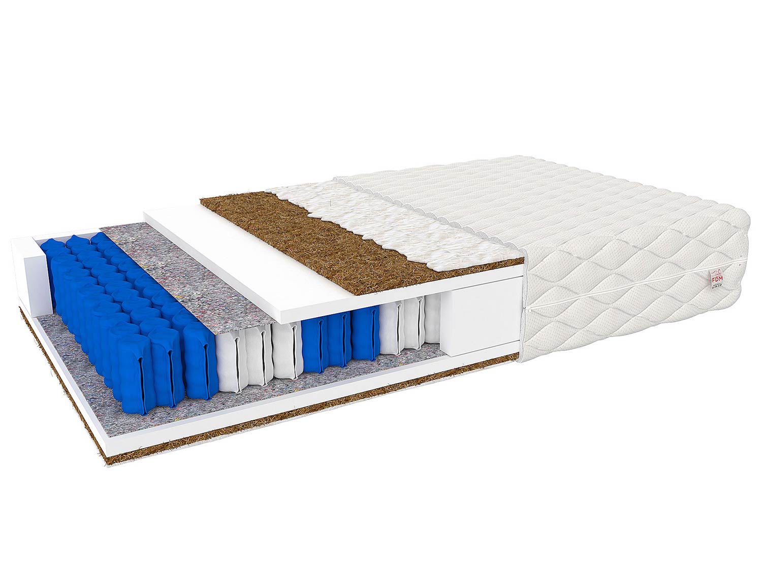 9. Wkładka Kokosowa – 100% ekologiczny, pochodzący ze skorup orzecha kokosu. Włókna kokosowe są lekkie i przewiewne, a także bardzo trwałe i elastyczne, odporne na wilgoć i odkształcenia. Zapobiega nadmiernemu poceniu się. Kokos posiada również właściwości antyalergiczne, zapobiega rozwojowi grzybów i roztoczy. Polecany klientom preferującym twardsze materace.
