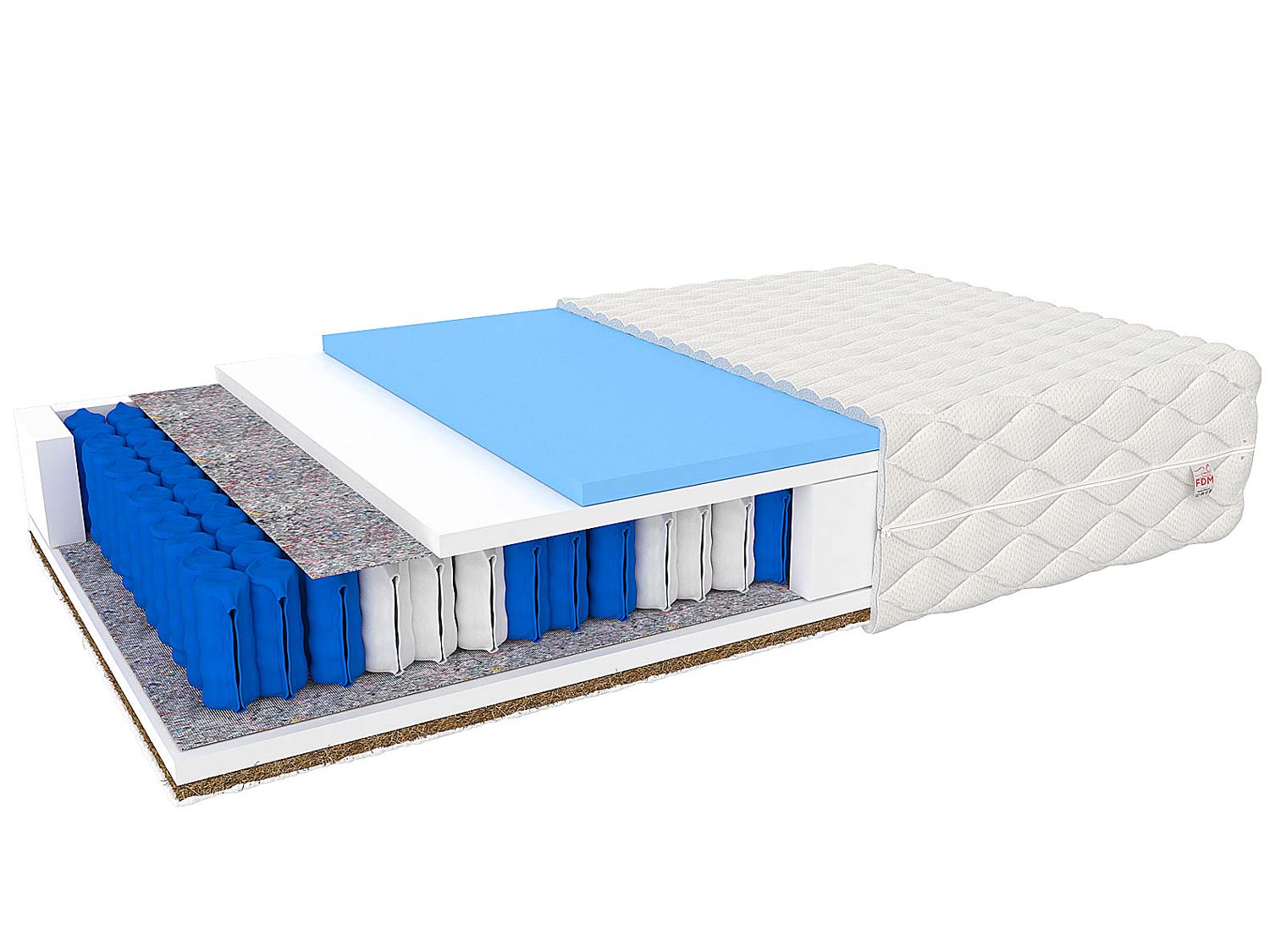 Wysokość: 26 cm | Pokrowiec: Tak, zdejmowany | Budowa: włókno klimatyzujące,  pianka HR 2 cm, wkład kokosowy 1 cm, pianka poliuretanowa 2 cm, sprężyny kieszeniowe 18 cm, pianka poliuretanowa  2 cm | Materac dwustronny: tak | Twardość: H2/H4 | Produkt: polski