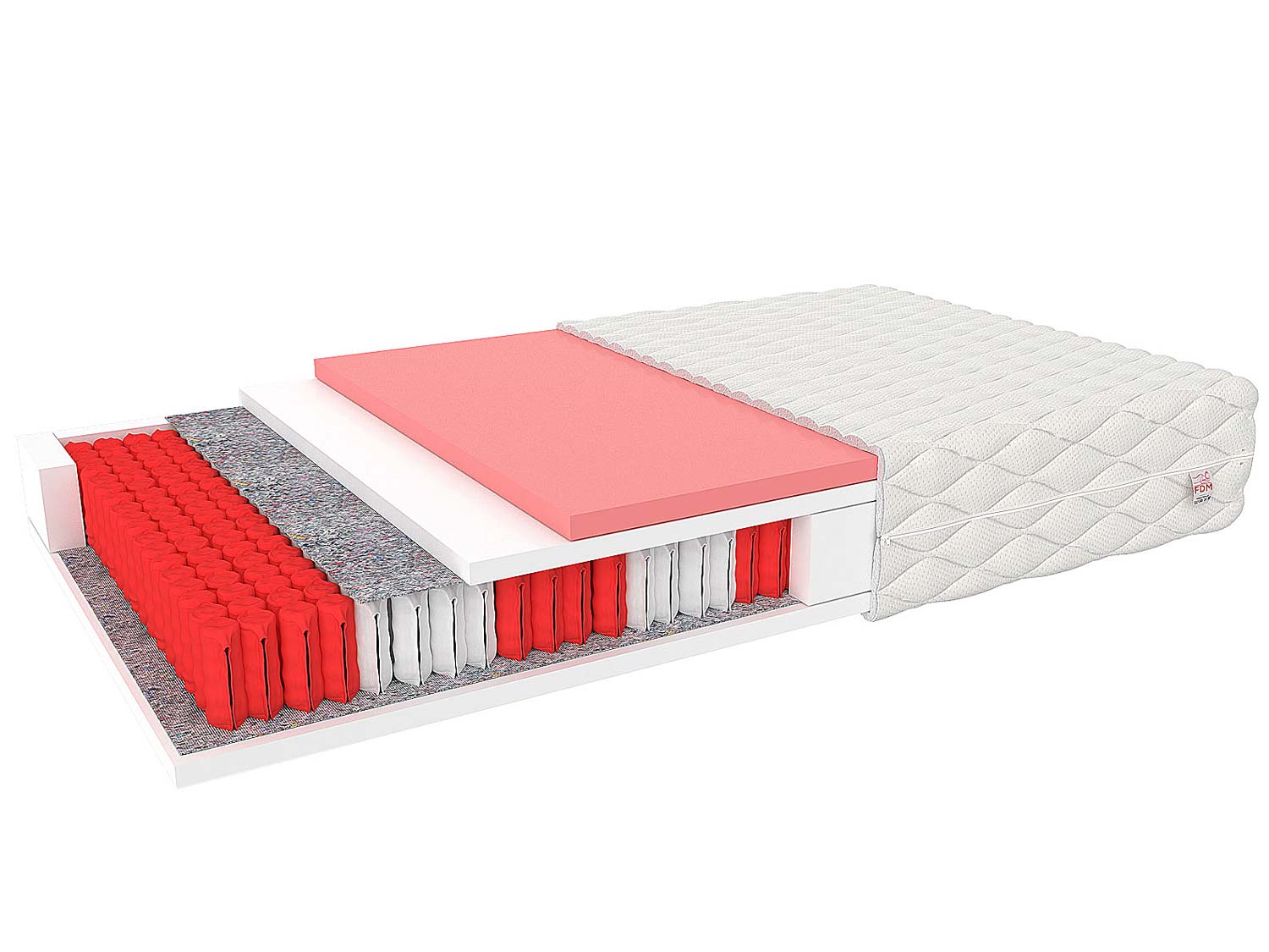 - Przekładka tapicerska – odseparowuje wkład piankowy od sprężynowego, a ponadto wydłuża wytrzymałość materaca.