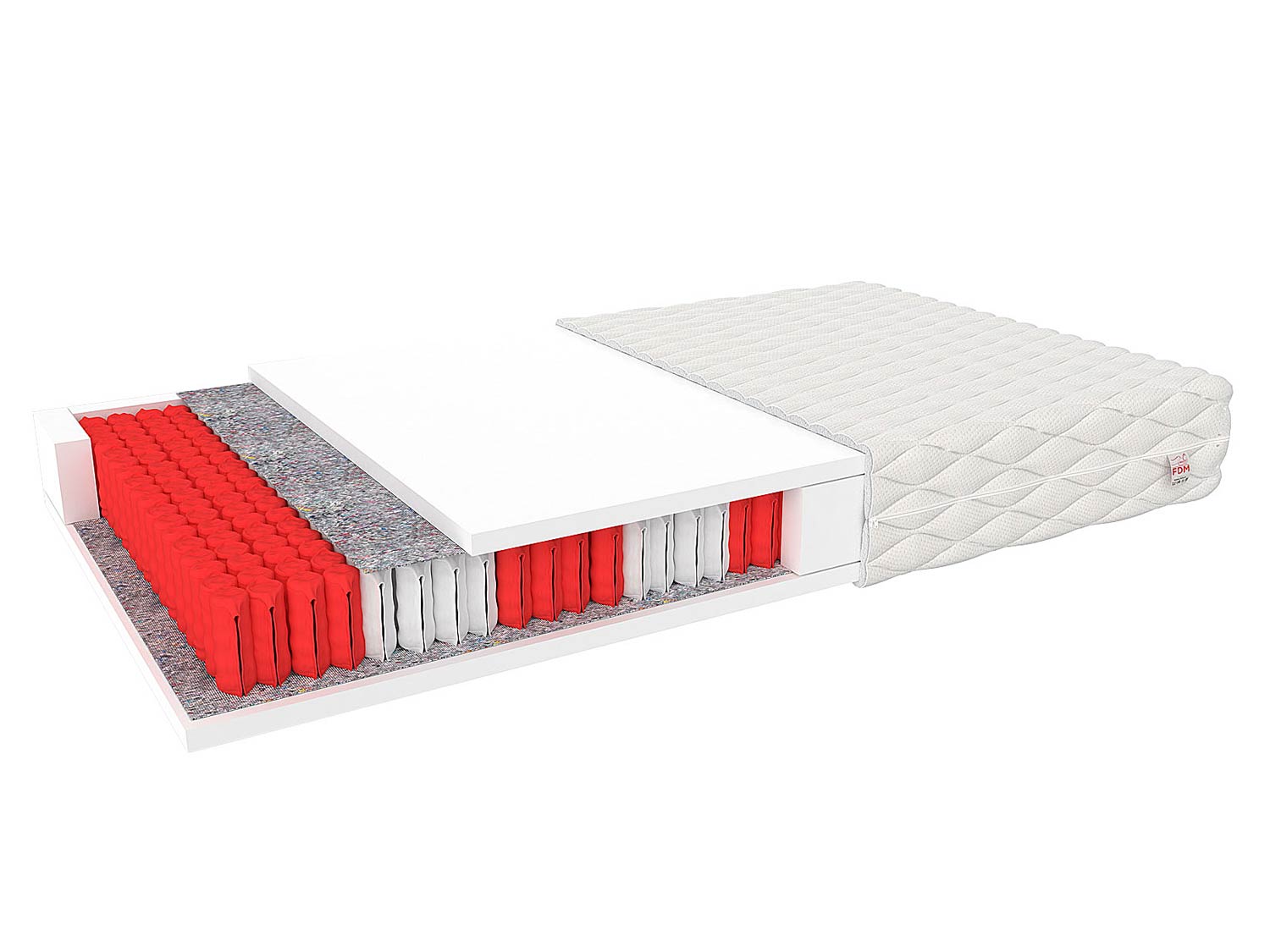 4. 7-Strefowe Sprężyny Multipocketowe – Sprężyny dzielą materac na 7 stref, każda o odpowiednim podparciu dla danej części ciała. Większa ilość sprężyn pracuje niezależnie od siebie, dzięki czemu dwie osoby śpiące koło siebie nie odczuwają dyskomfortu z powodu wiercenia się drugiej osoby. Materac jest również znakomity dla osób o różnej wadze ciała, ponieważ materac nie ugina się w stronę drugiej osoby.
