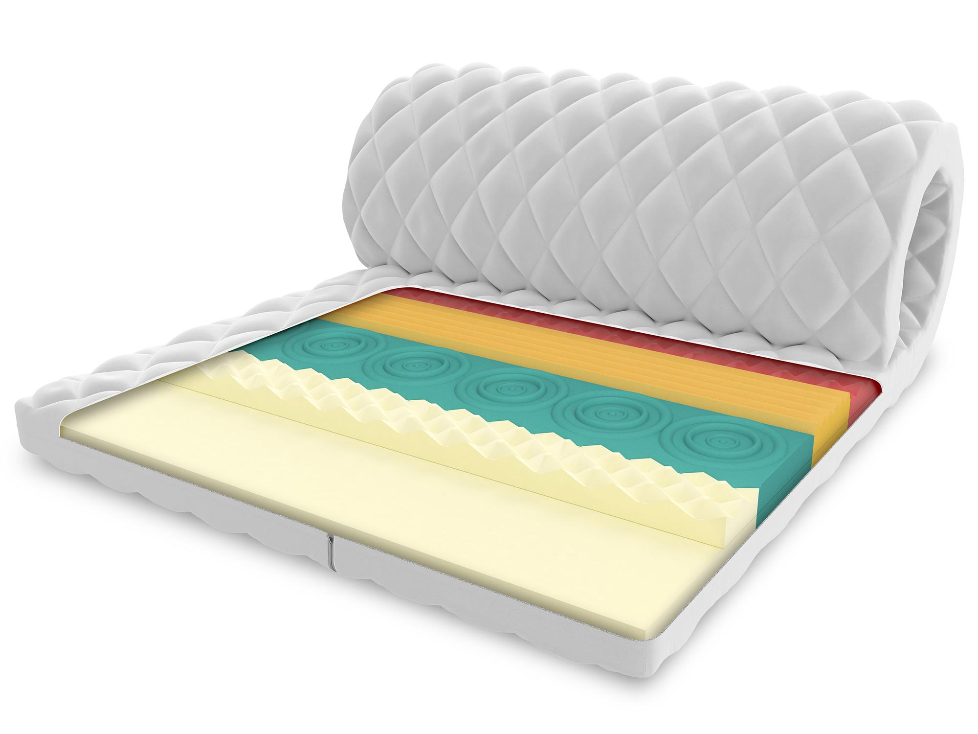 Przede wszystkim oferowana nakładka na materac to produkt, gdzie zastosowano podwójną piankę wysokoelastyczną HR 30. Z tego względu charakteryzuje się ona najwyższej klasy komfortem. Co więcej, pianka dzieli materac na siedem stref, co pozwala na równomierne rozłożenie wagi użytkownika. Ponadto przez swoją niejednolitą strukturę komórkową doskonale dopasowuje się do sylwetki, wypełniając jej naturalne krzywizny, co eliminuje problemy z bólami mięśni czy kręgosłupa. Dodatkowo jest to materiał bardzo wytrzymały, co oznacza iż z pewnością posłuży wiele lat.