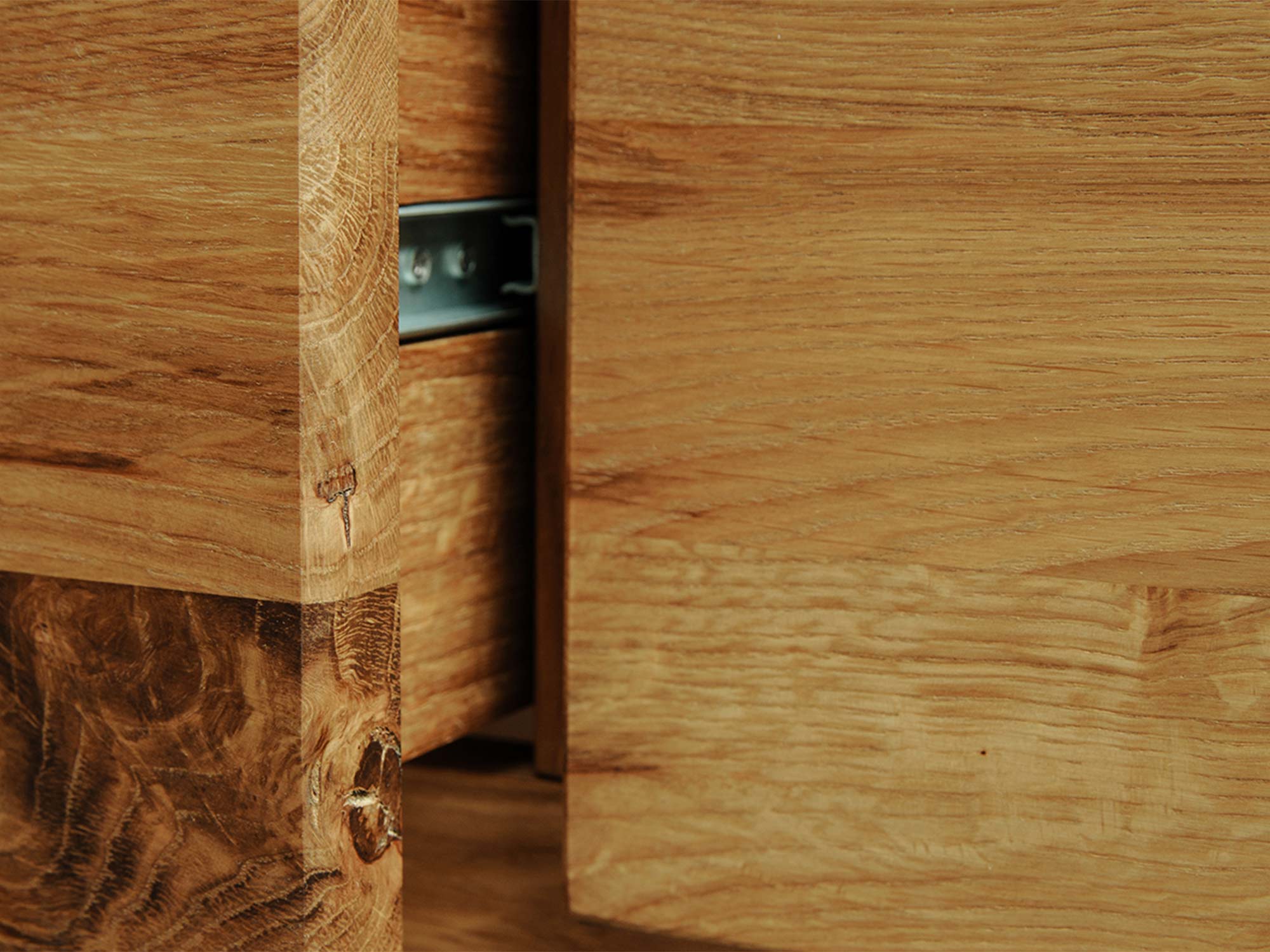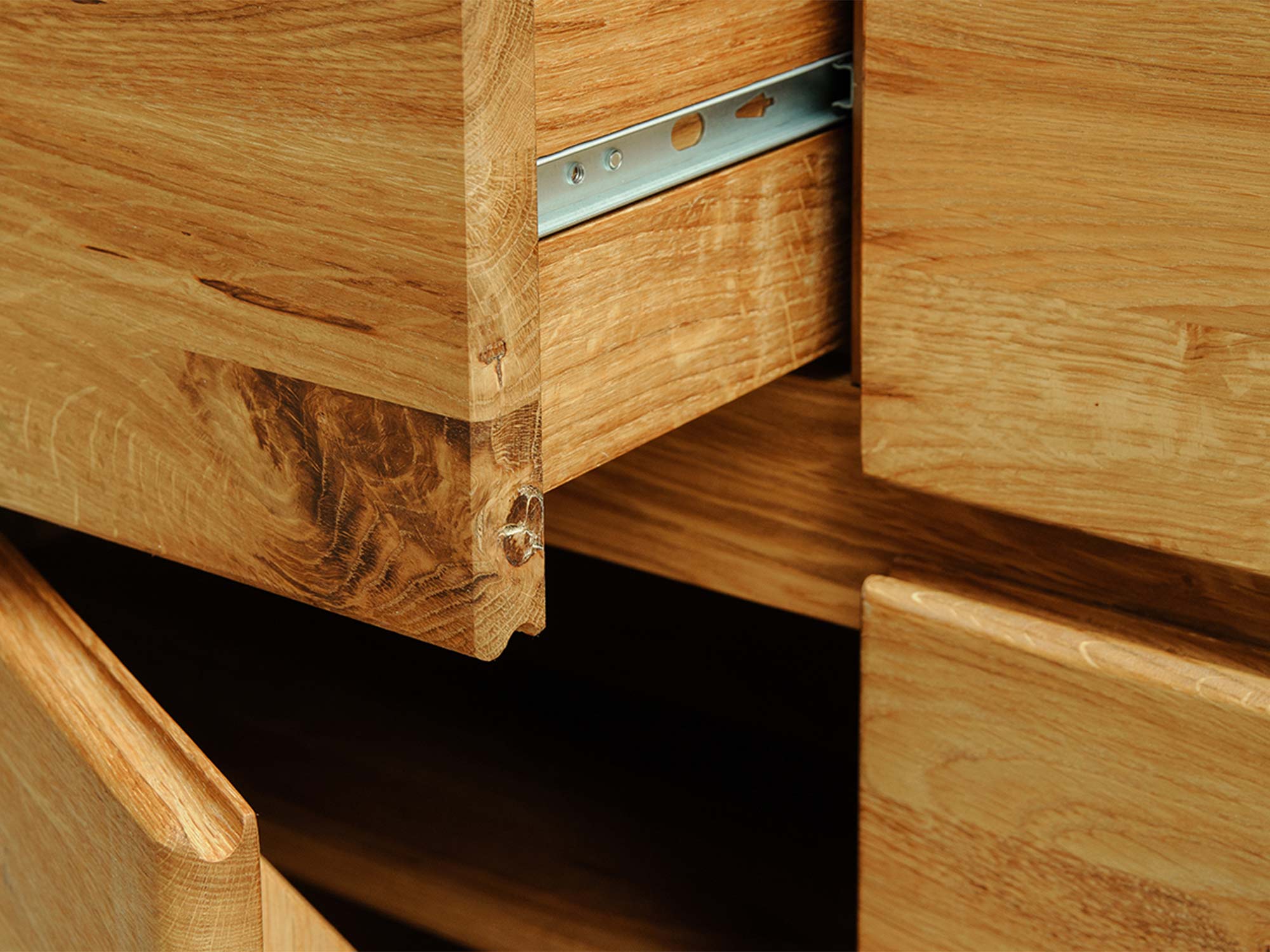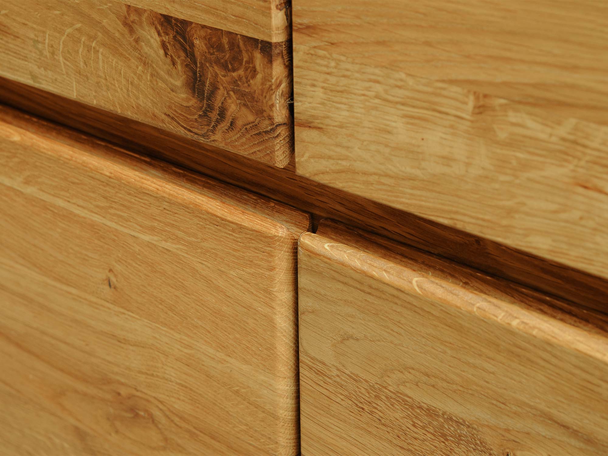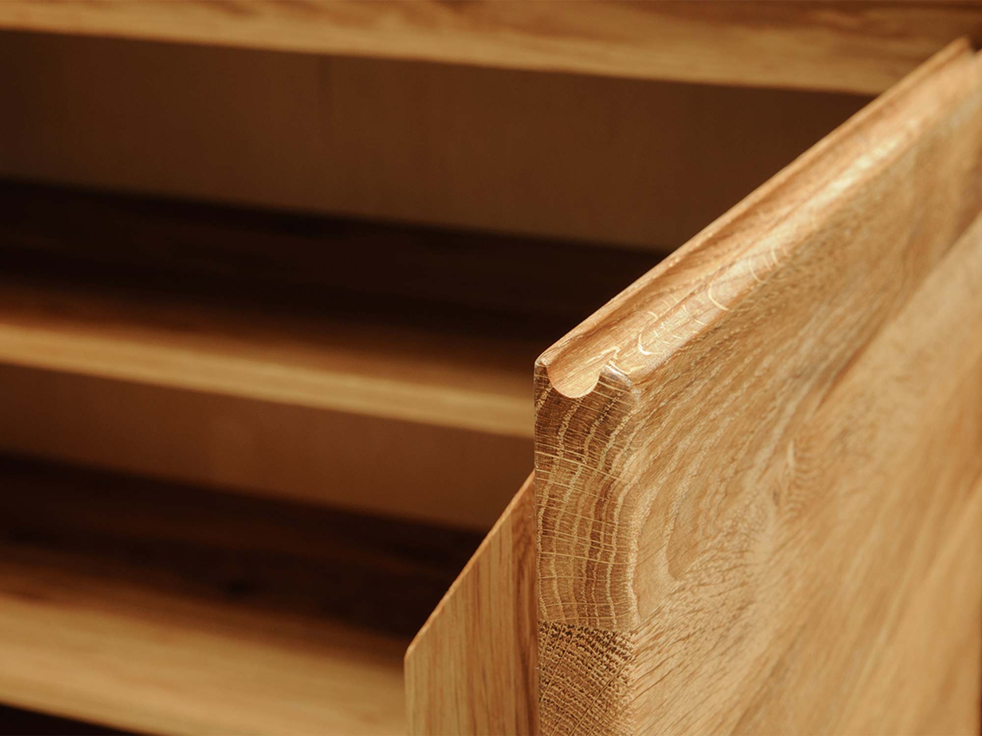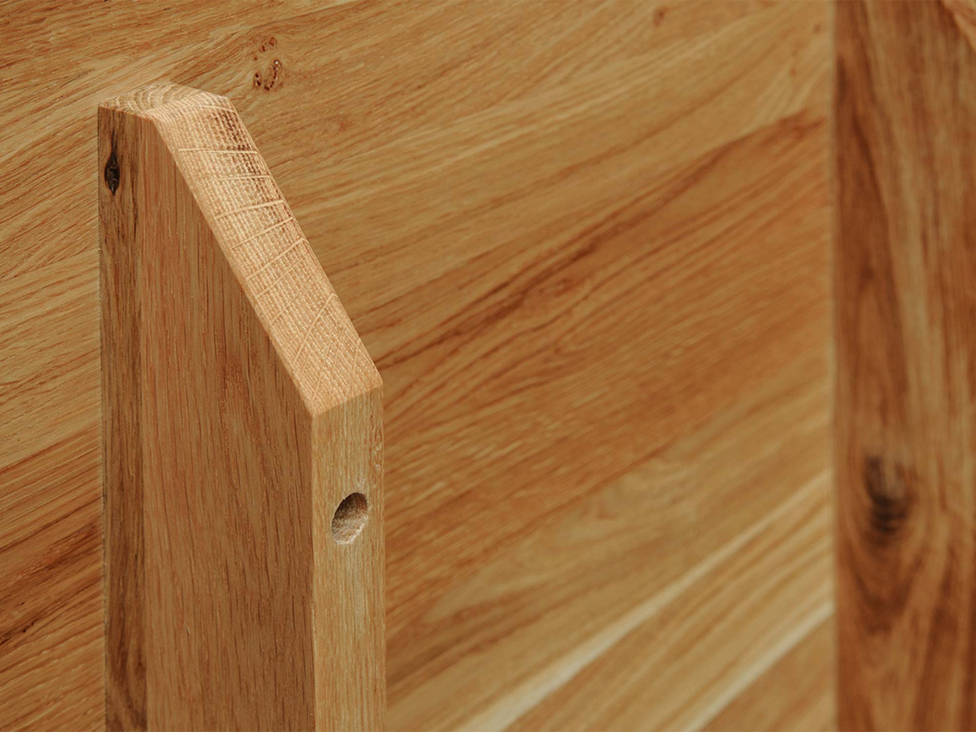Zaokrąglony narożnik szafki z naturalnego drewna dębowego
