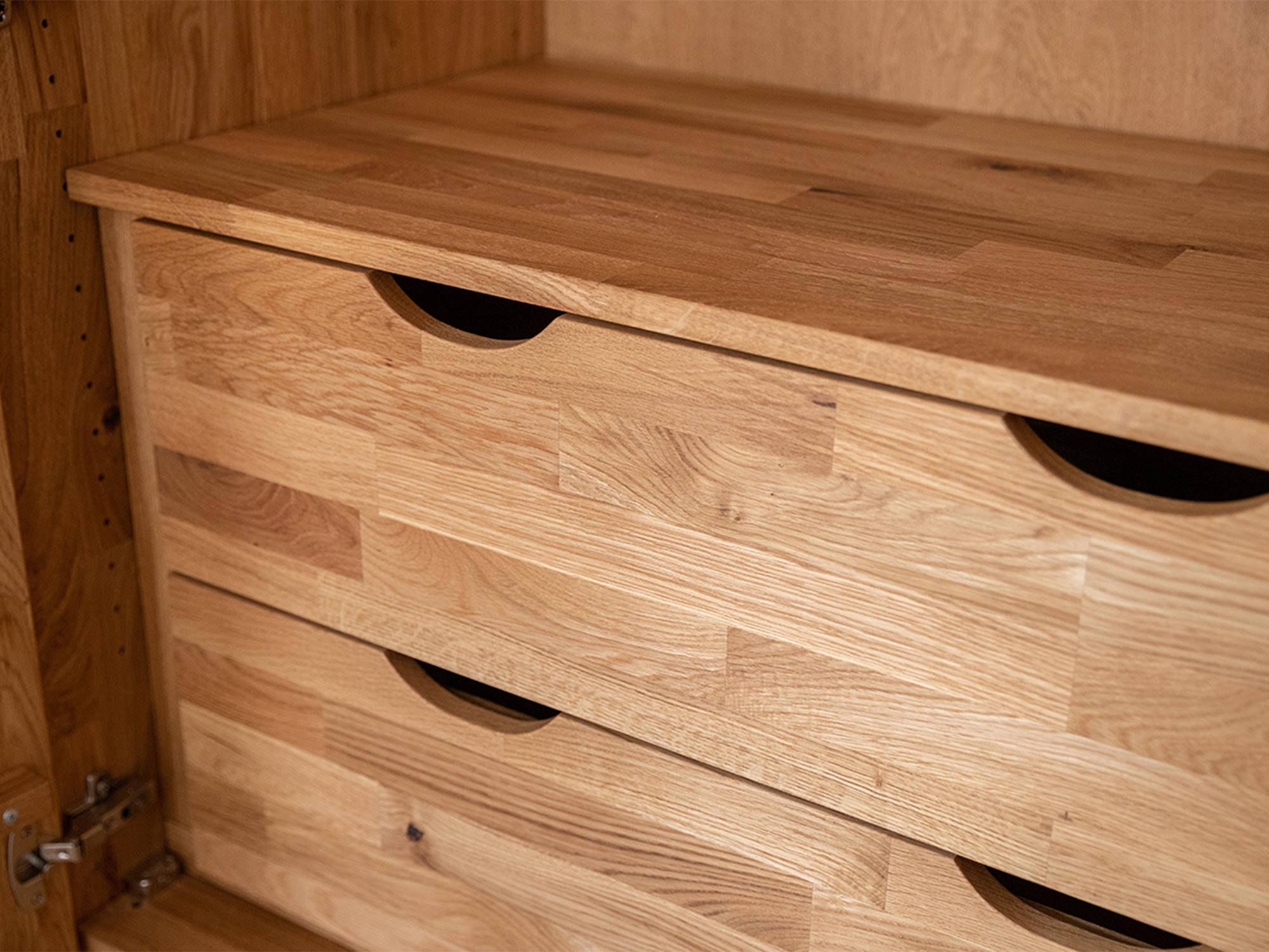 Odkryj moduł szafy z szufladami 100 cm z kolekcji Kopenhaga, doskonały sposób na organizację przestrzeni w Twojej szafie. Wykonany z wysokiej jakości naturalnego dębu, ten moduł jest nie tylko praktycznym, ale i stylowym dodatkiem do każdej szafy. Moduł szafy z szufladami 100 cm łączy w sobie nowoczesny design z naturalnym pięknem dębu.