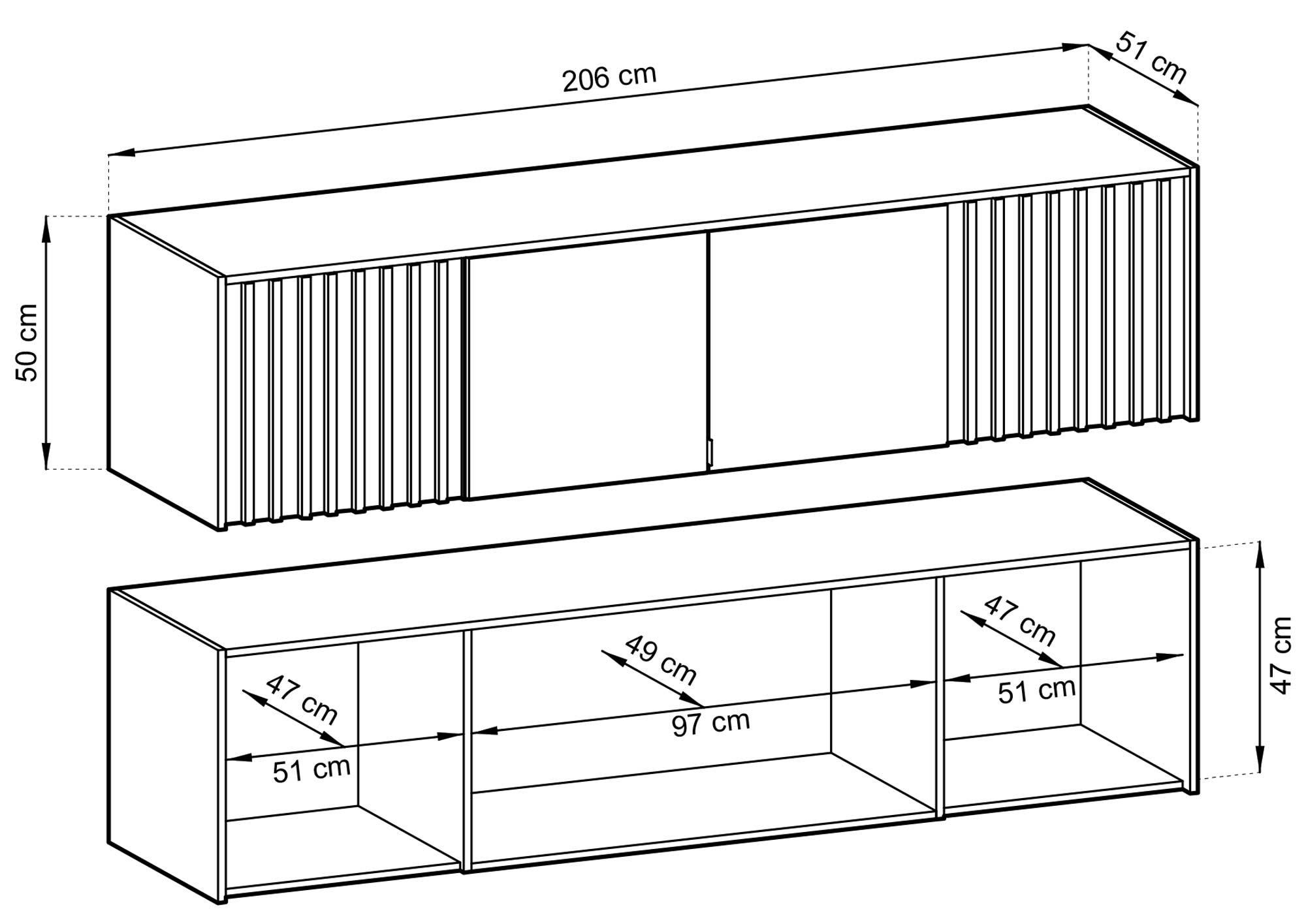 Szerokość: 205 cm / Wysokość: 50 cm / Głębokość: 51 cm