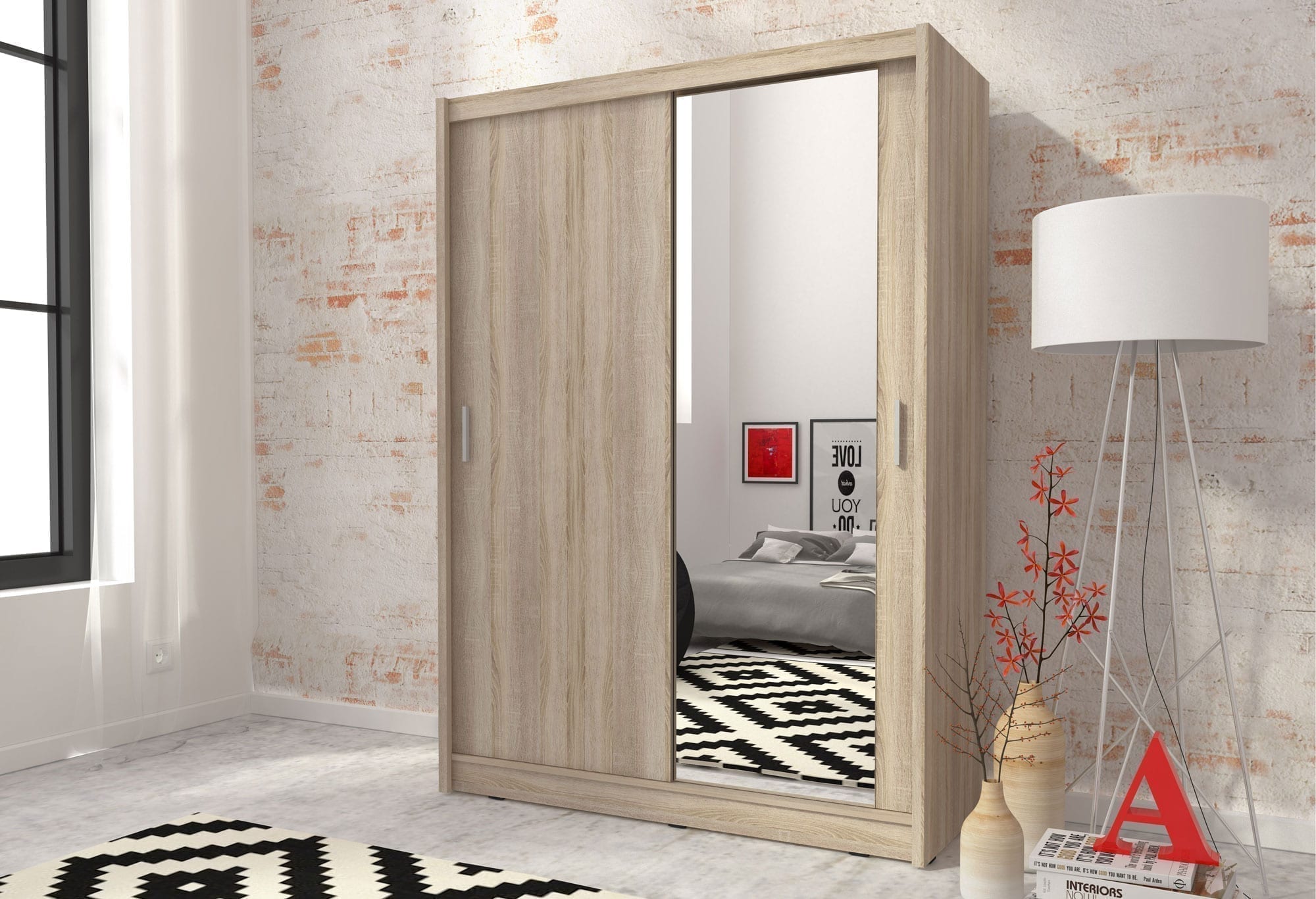 Dwudrzwiowa szafa przesuwna z lustrem ALVERA 130cm to świetne rozwiązanie do garderoby, sypialni czy przedpokoju. Co więcej zaprojektowana w taki sposób, iż ma nowoczesny wygląd, a przy tym jest jak najbardziej funkcjonalna w użytkowaniu. Lustro na frontowej części jest bardzo użyteczne, ponieważ dzięki niemu szybko i łatwo skontrolujemy ostateczny wygląd przed wyjściem z domu. Ponadto, wnętrze szafy podzielono tak, by przechowywanie w nim rzeczy było łatwe i przyjemne. Bogate wzornictwo w połączeniu z ciekawymi kolorami daje fantastyczne produkty, które przypadną do gustu wielu klientom.