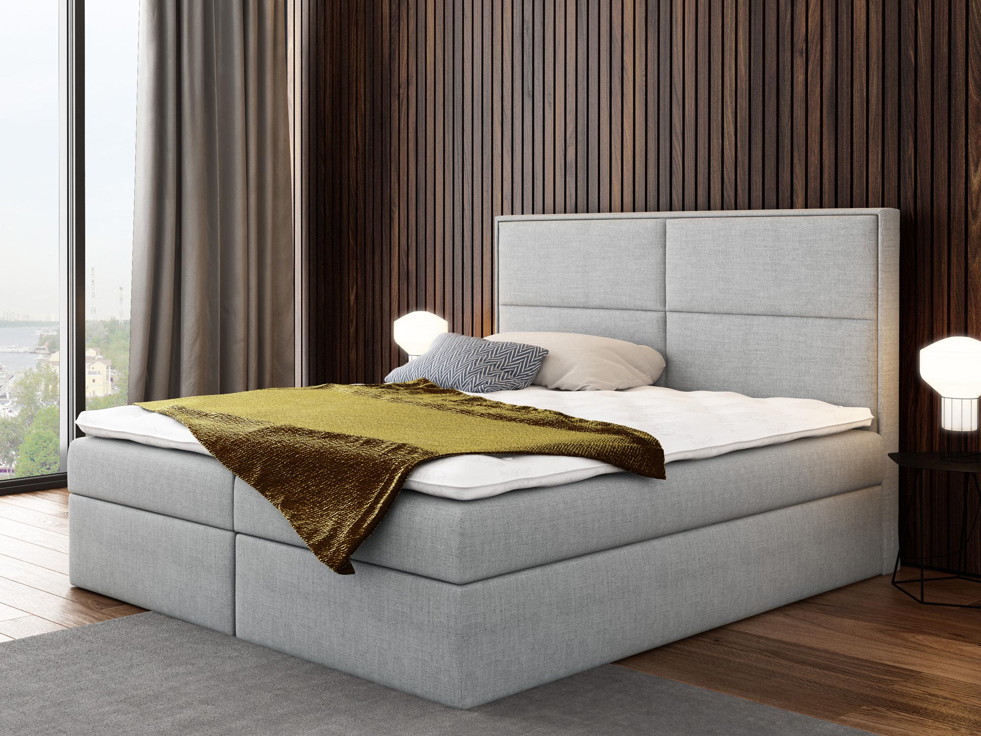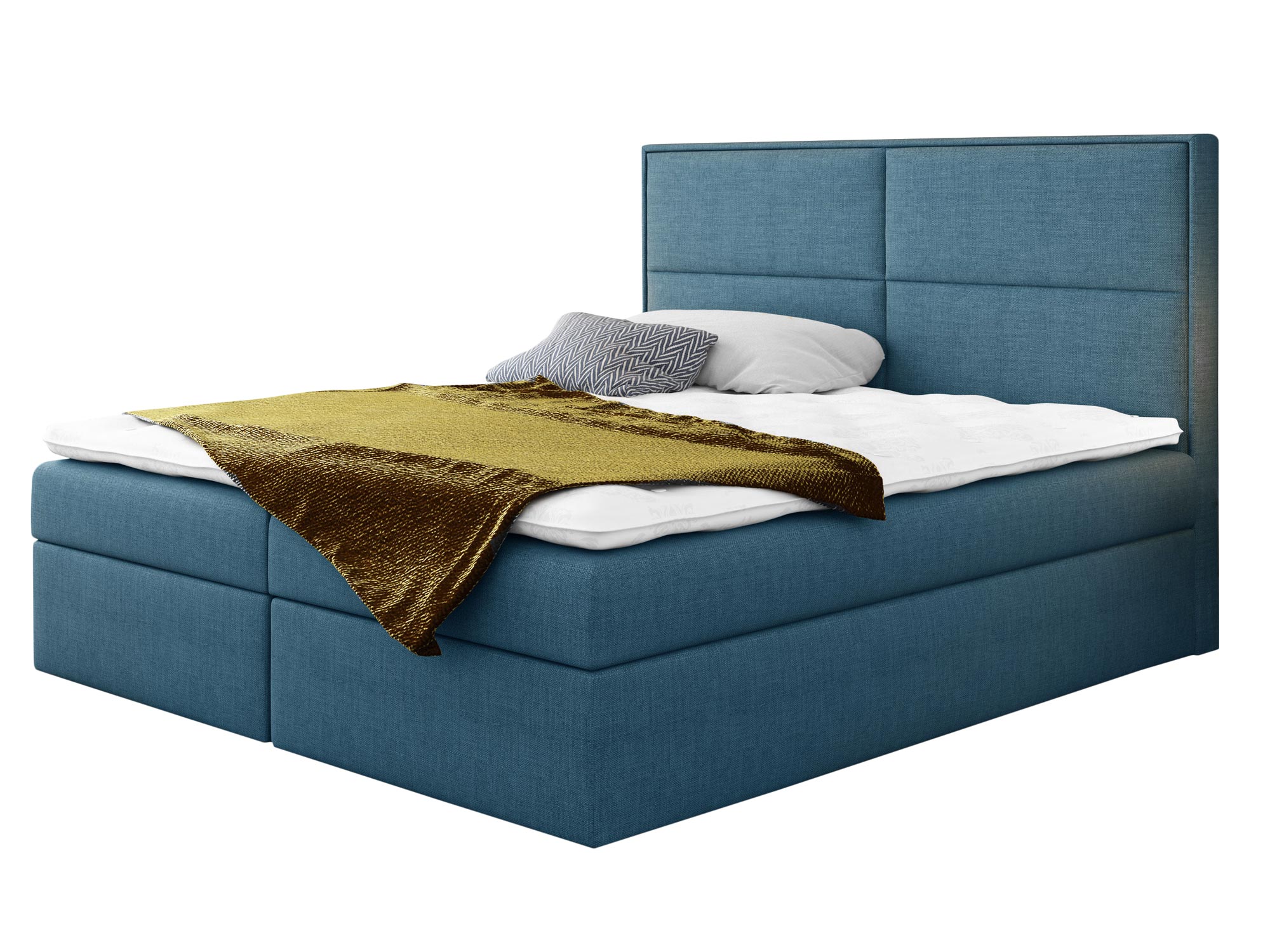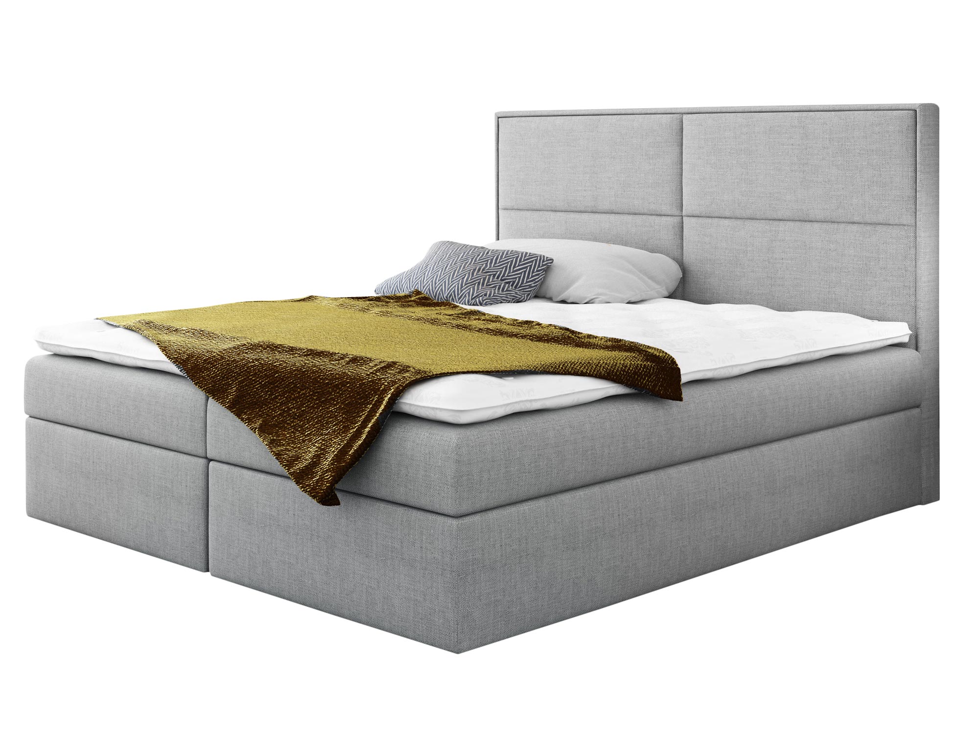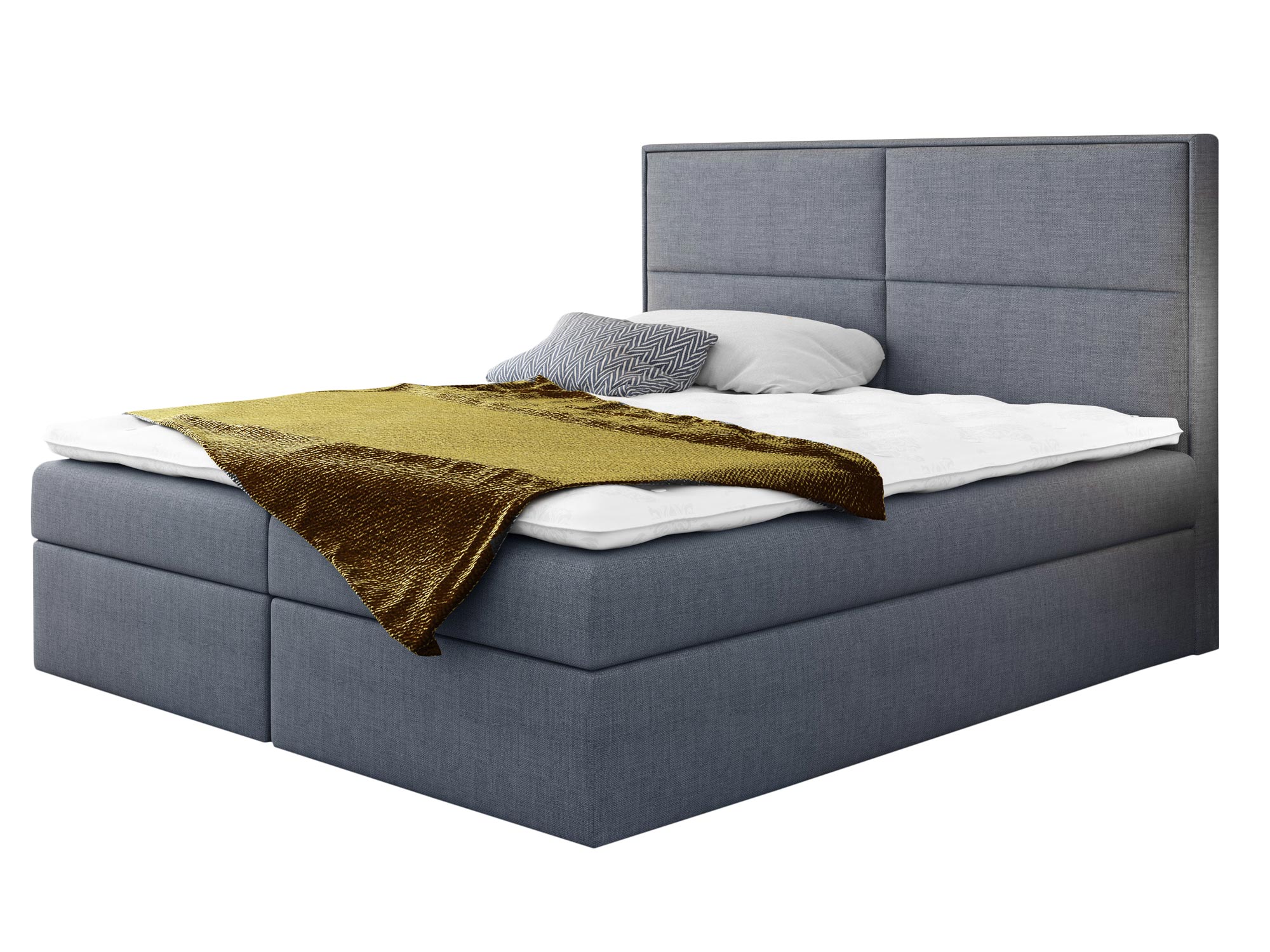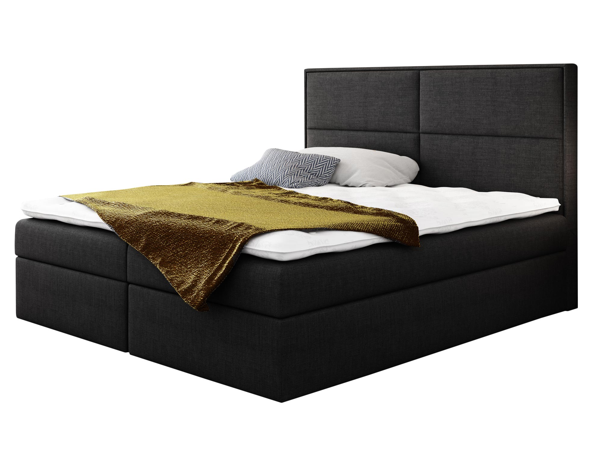 Prezentowane łóżko kontynentalne ROSALIE wyprodukowano z materiałów najwyższej jakości. Ponadto wyposażono go w dwie niezależne skrzynie na pościel, których otwieranie wspomagają specjalne automaty sprężynowe. Co więcej model ten posiada wbudowany materac stworzony ze sprężyn kieszeniowych, zapewniających komfortowy i wygodny sen przez całą noc.