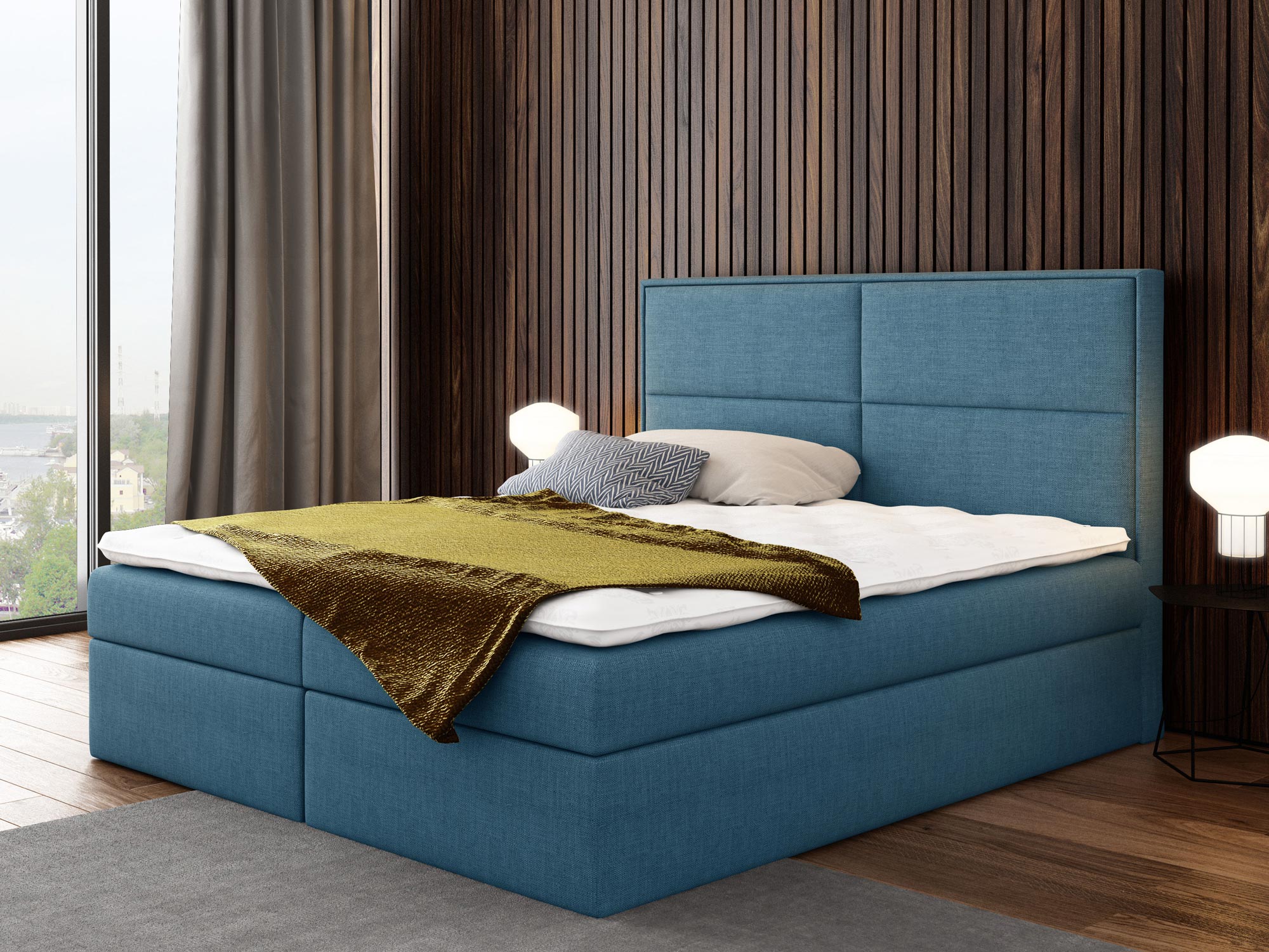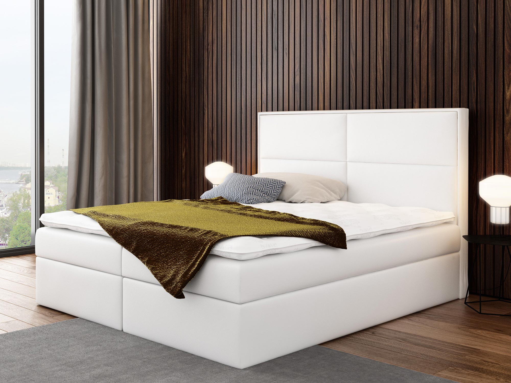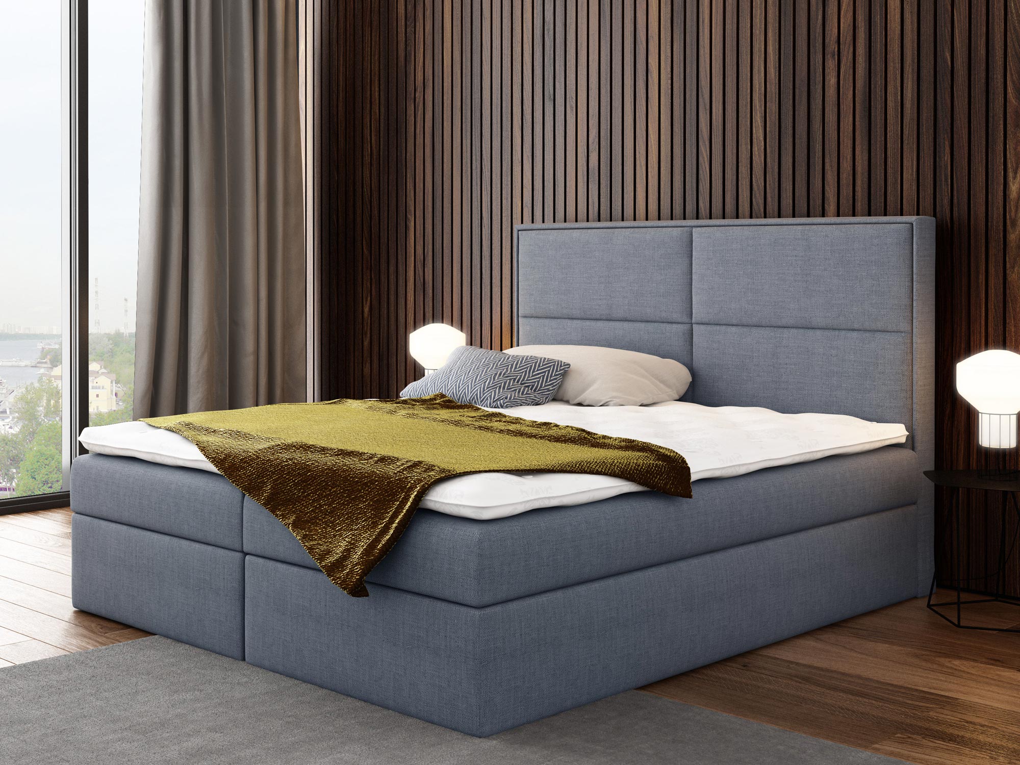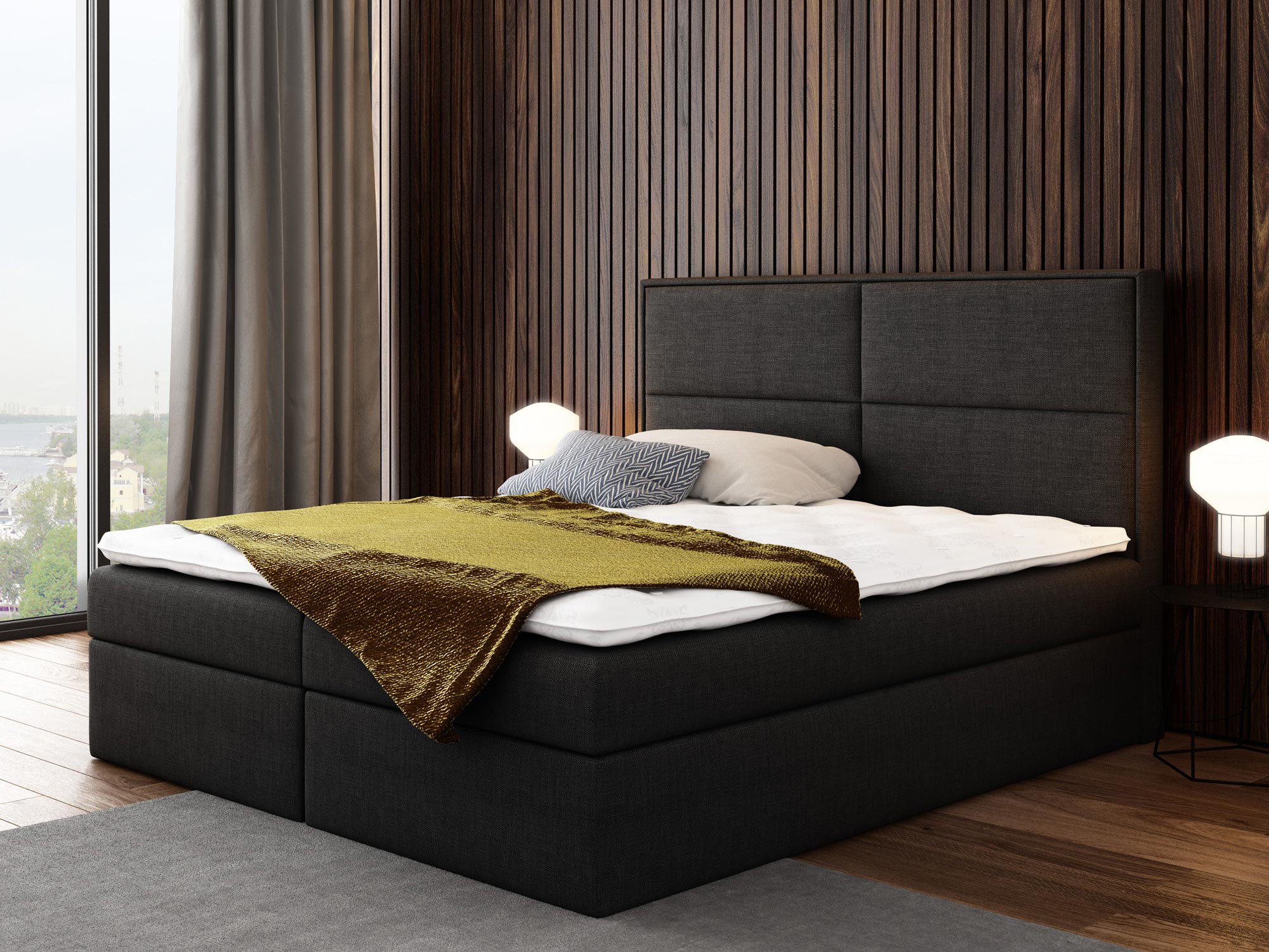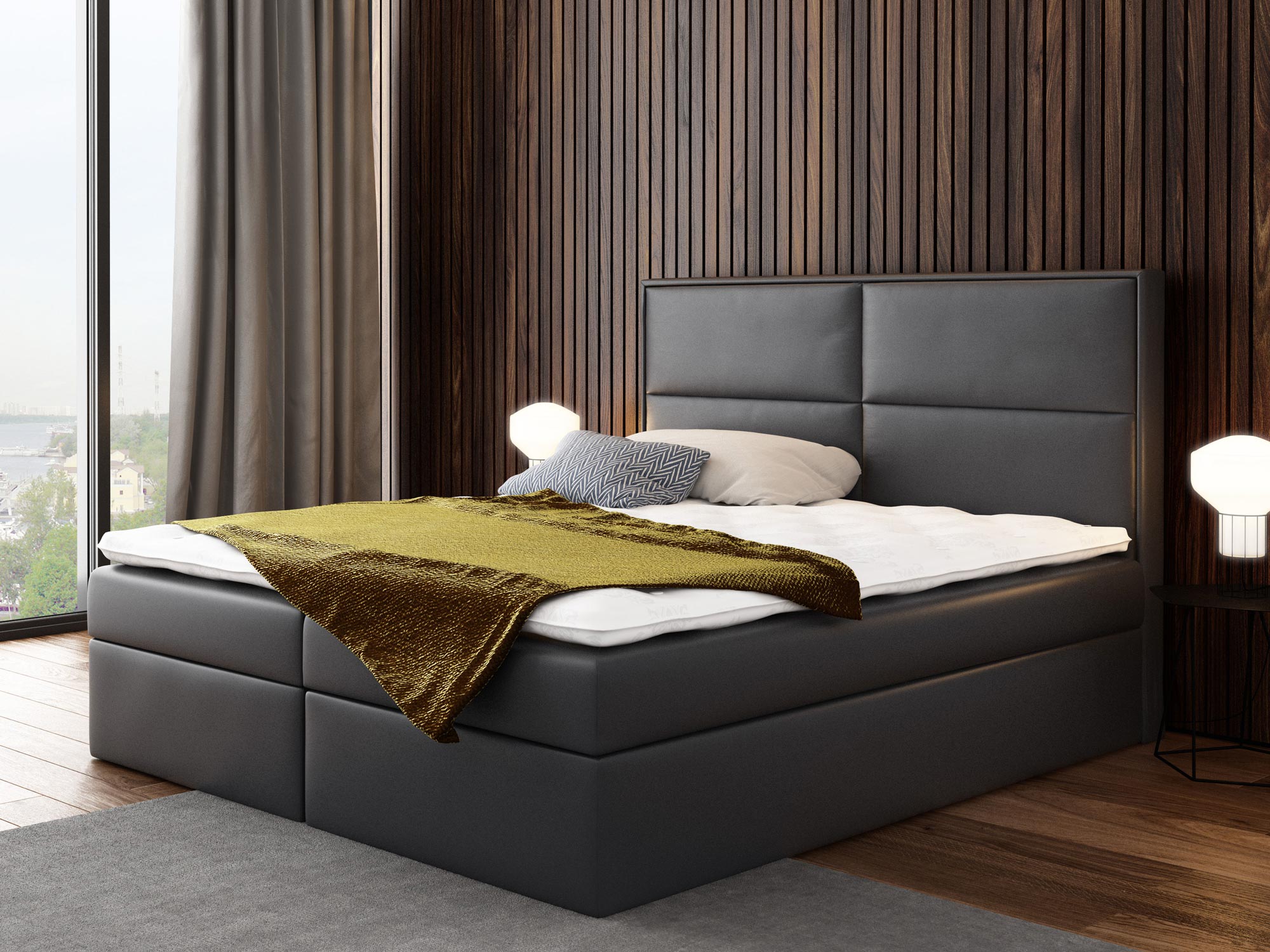 Prezentowane łóżko kontynentalne ROSALIE wyprodukowano z materiałów najwyższej jakości. Ponadto wyposażono go w dwie niezależne skrzynie na pościel, których otwieranie wspomagają specjalne automaty sprężynowe. Co więcej model ten posiada wbudowany materac stworzony ze sprężyn kieszeniowych, zapewniających komfortowy i wygodny sen przez całą noc.