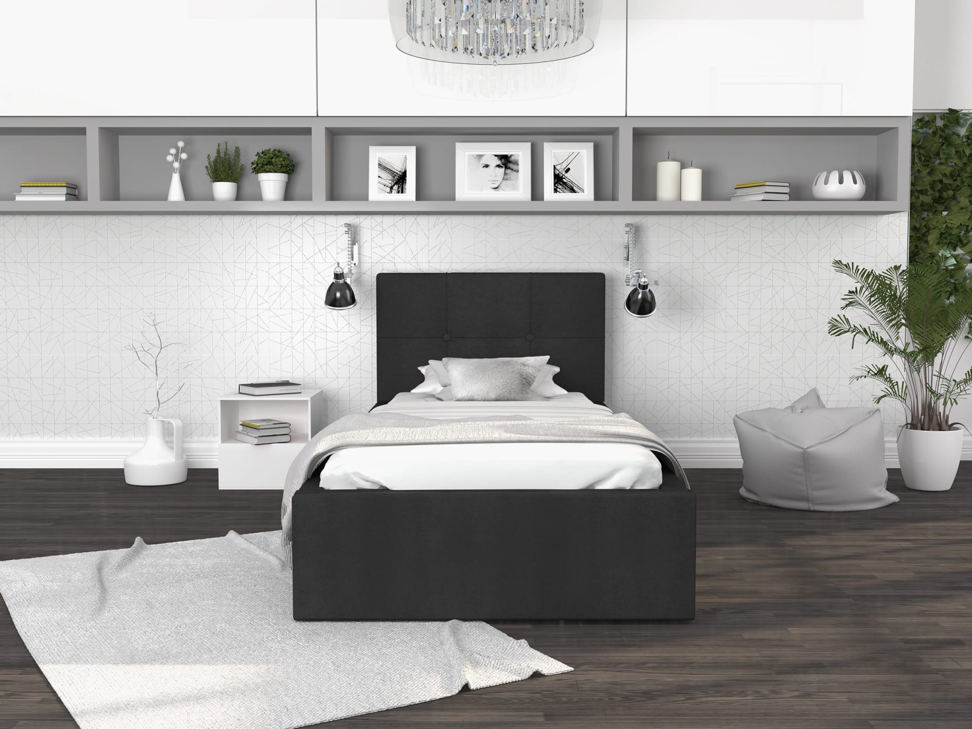 - Łóżko posiada schowek na pościel.