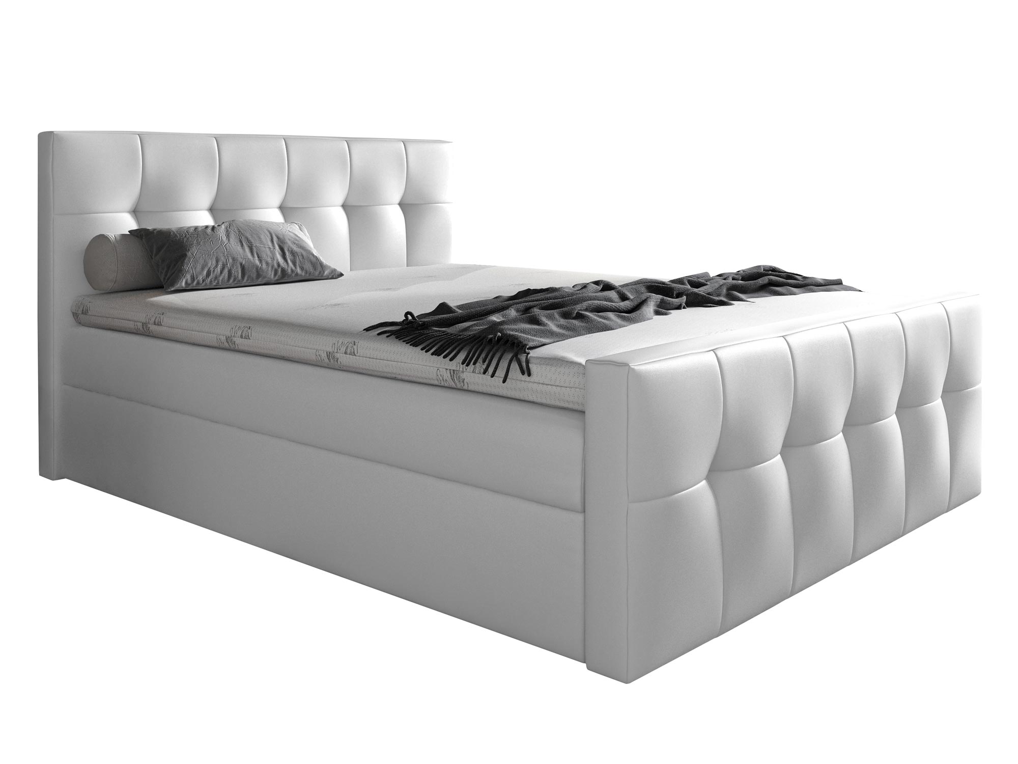 Co najważniejsze łóżko sypialniane tapicerowane CRISTIANO to połączenie nienagannej estetyki połączonej z wysoką jakością wykonania. Ponadto model ten będzie prezentować się znakomicie, a przy tym sen na nim będzie niebywałą przyjemnością dzięki zapewnionemu wysokiemu komfortowi. Co więcej jego niebanalny zagłówek i przód z przeszyciami dają znakomity i efekt i dodają stylu. Dodatkowo prezentowane łóżko posiada 2 pojemniki na pościel otwierane z obu stron, jak również wbudowany materac oraz topper, które zapewniają wstawanie wypoczętym każdego dnia.