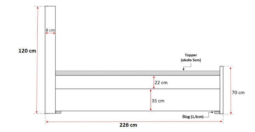 - Topper z pianki T23 – wykonany z wytrzymałej, sprężystej pianki wysokoelastycznej, zapewnia dodatkową sprężystość i miękkość, co gwarantuje w pełni komfortowy sen. Ponadto idealnie dopasowuje się do kształtu ciała.