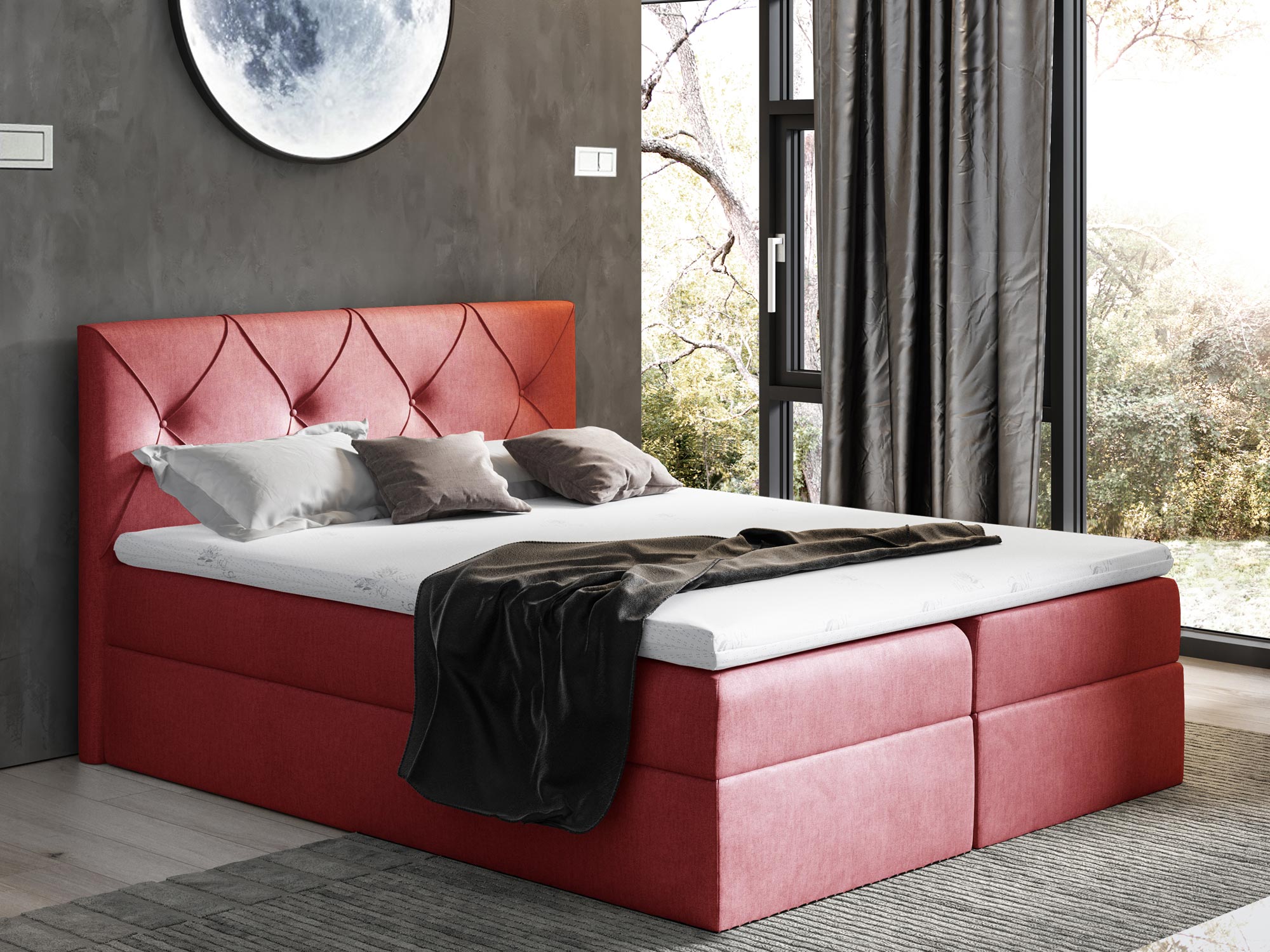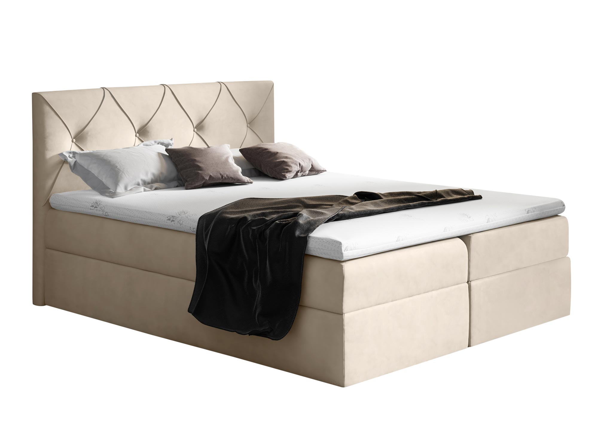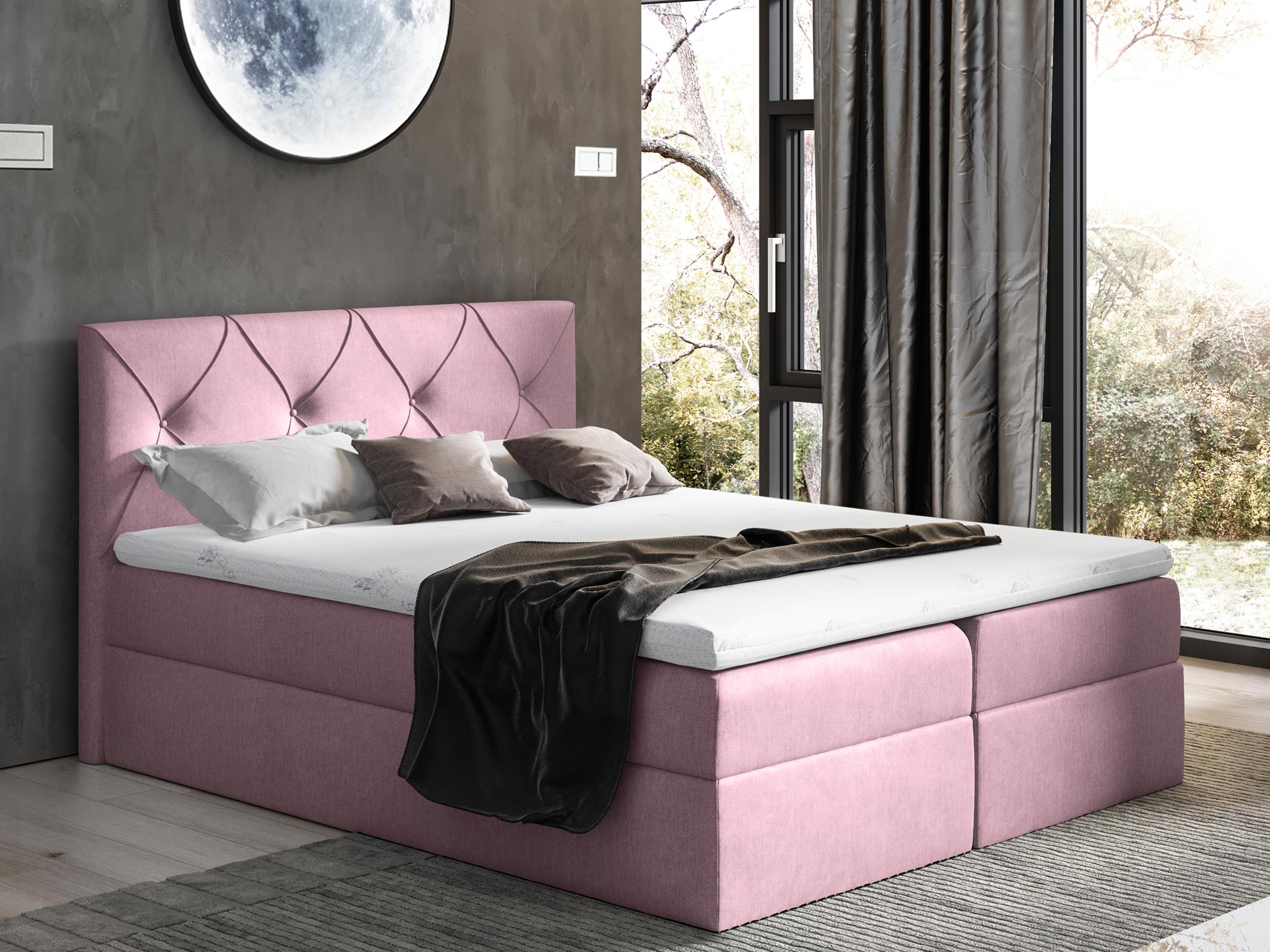 Przede wszystkim przedstawione łóżko CASEY wyposażono w dwa osobne pojemniki na pościel otwierane z obydwu stron na automatach sprężynowych. Ponadto mebel ten posiada wbudowany materac sprężynowy oraz dodatkowy topper z pianki wysoko elastycznej, dzięki nim zagwarantowany zostaje doskonały komfort odpoczynku.