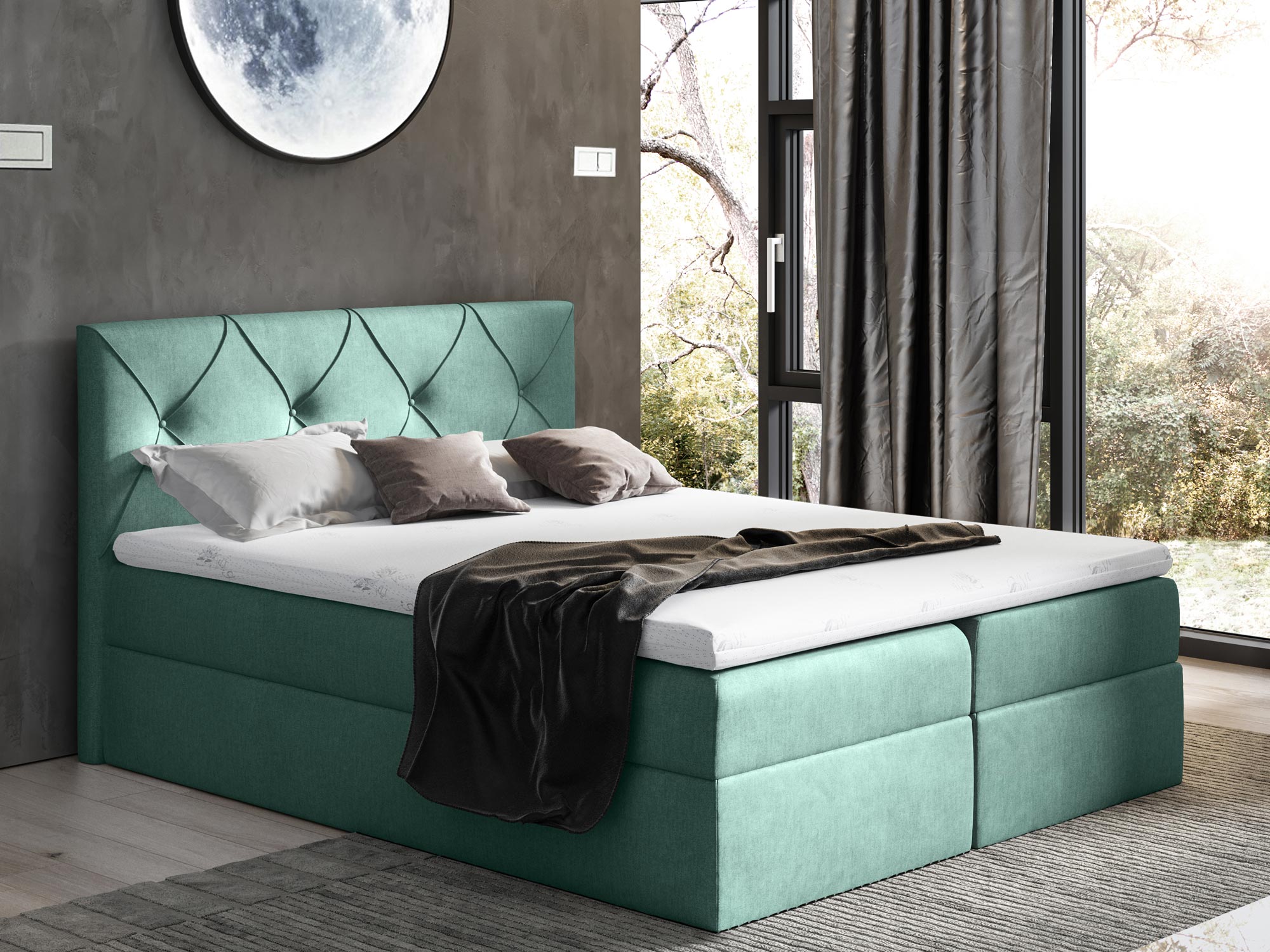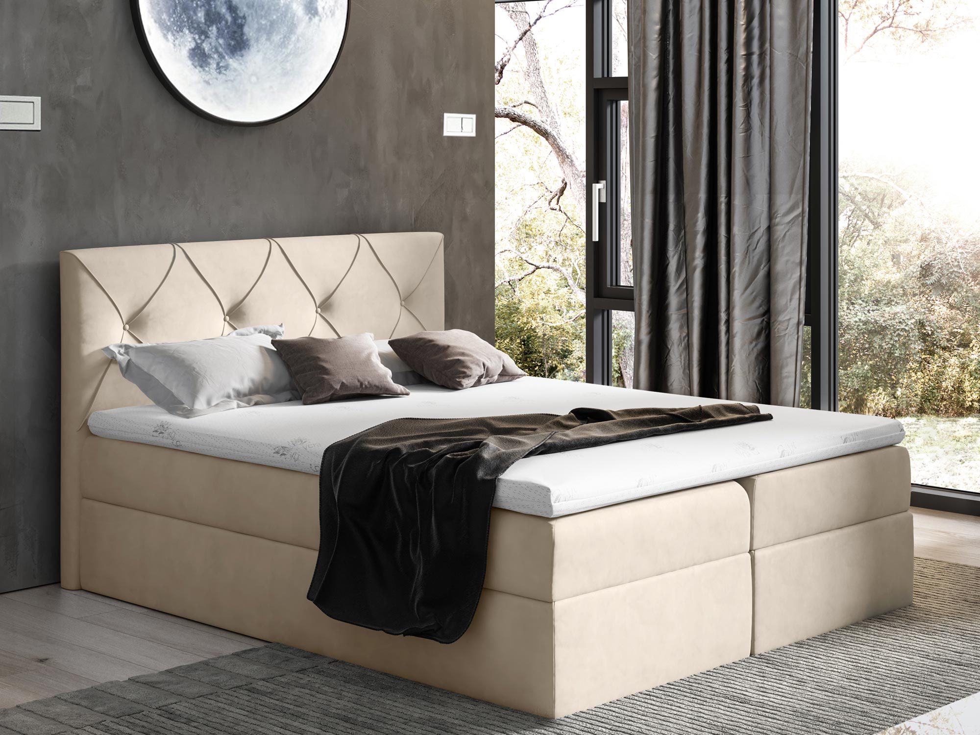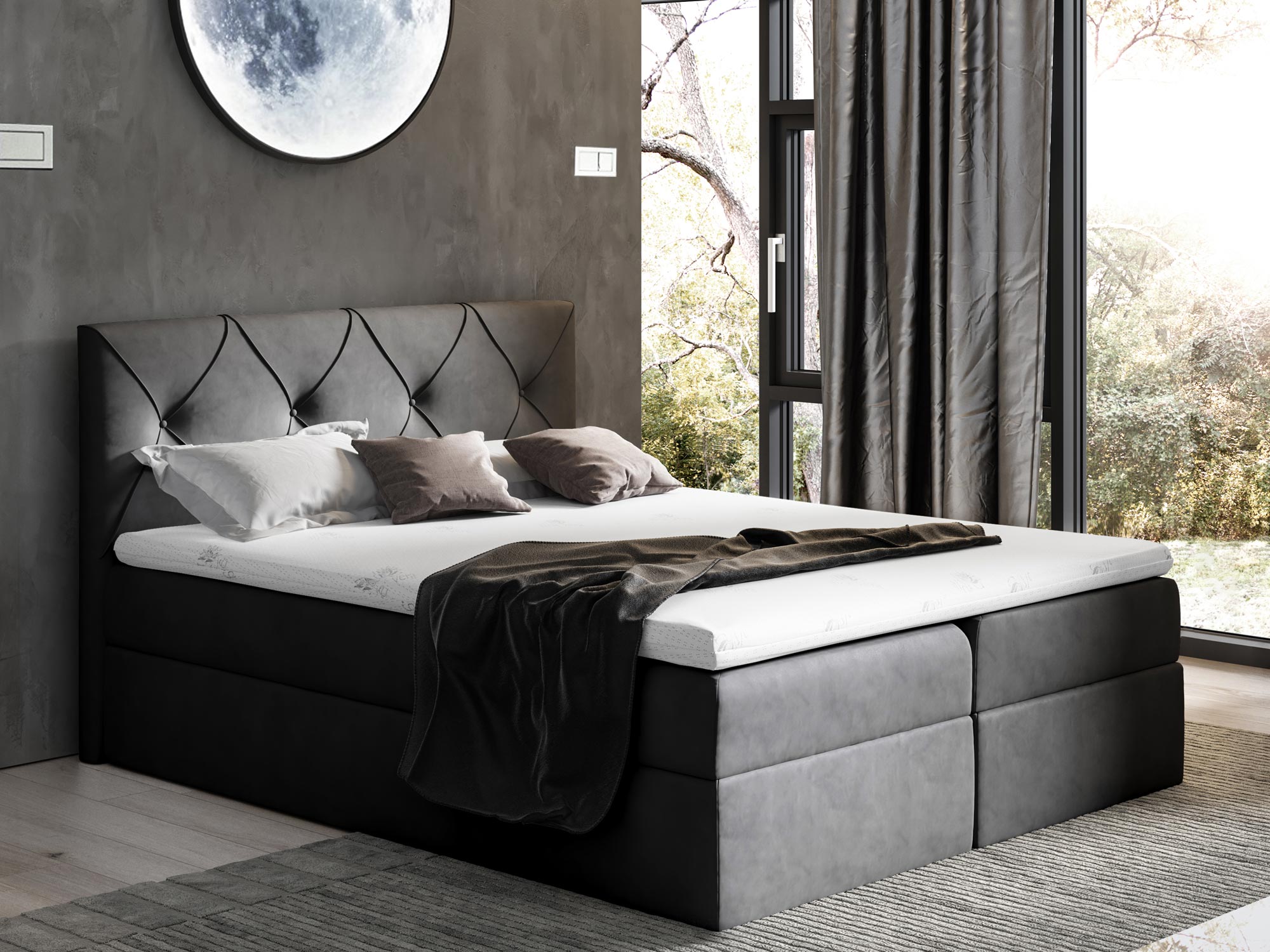 Łóżko kontynentalne szare aranżacja CASEY