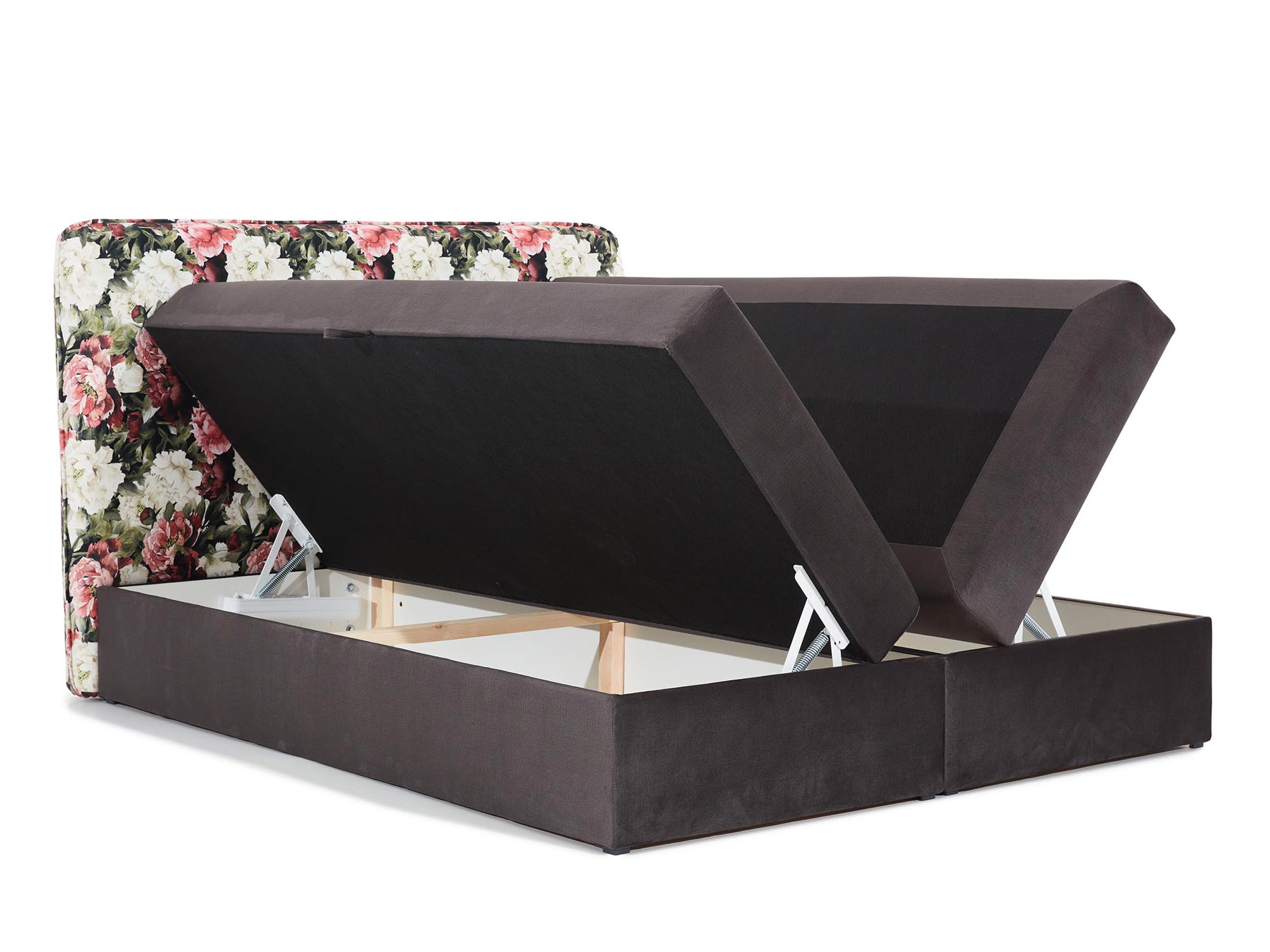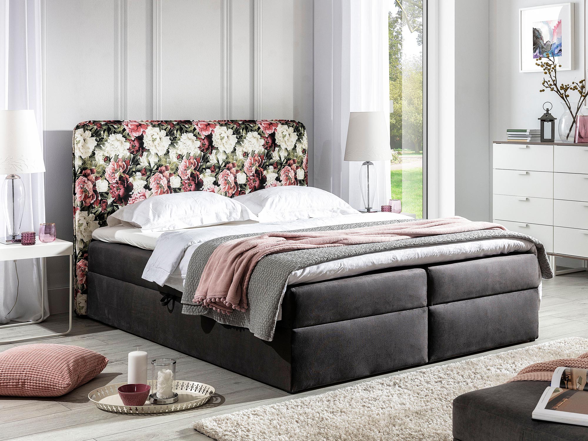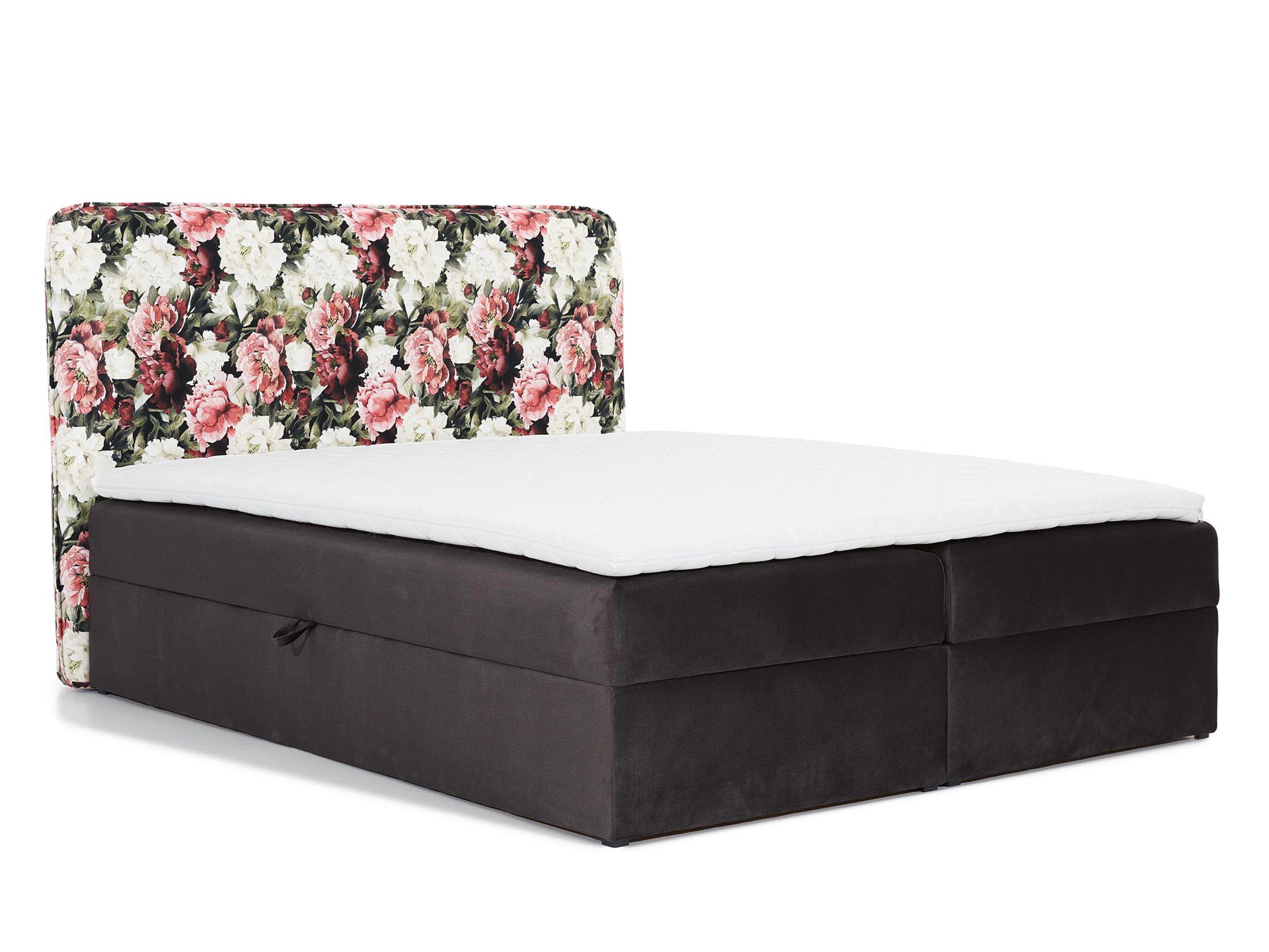 Co najważniejsze łóżko w kwiaty tapicerowane HARRIS wyróżnią się stylową kwiatową grafiką, która dodaje wnętrzu przytulnego charakteru. Ponadto mebel ten wyposażono w dwa pojemniki na pościel otwierane z obu stron z automatem sprężynowym ułatwiającym otwieranie skrzyni. Zobacz również naszą ofertę innych modeli łóżek kontynentalnych.