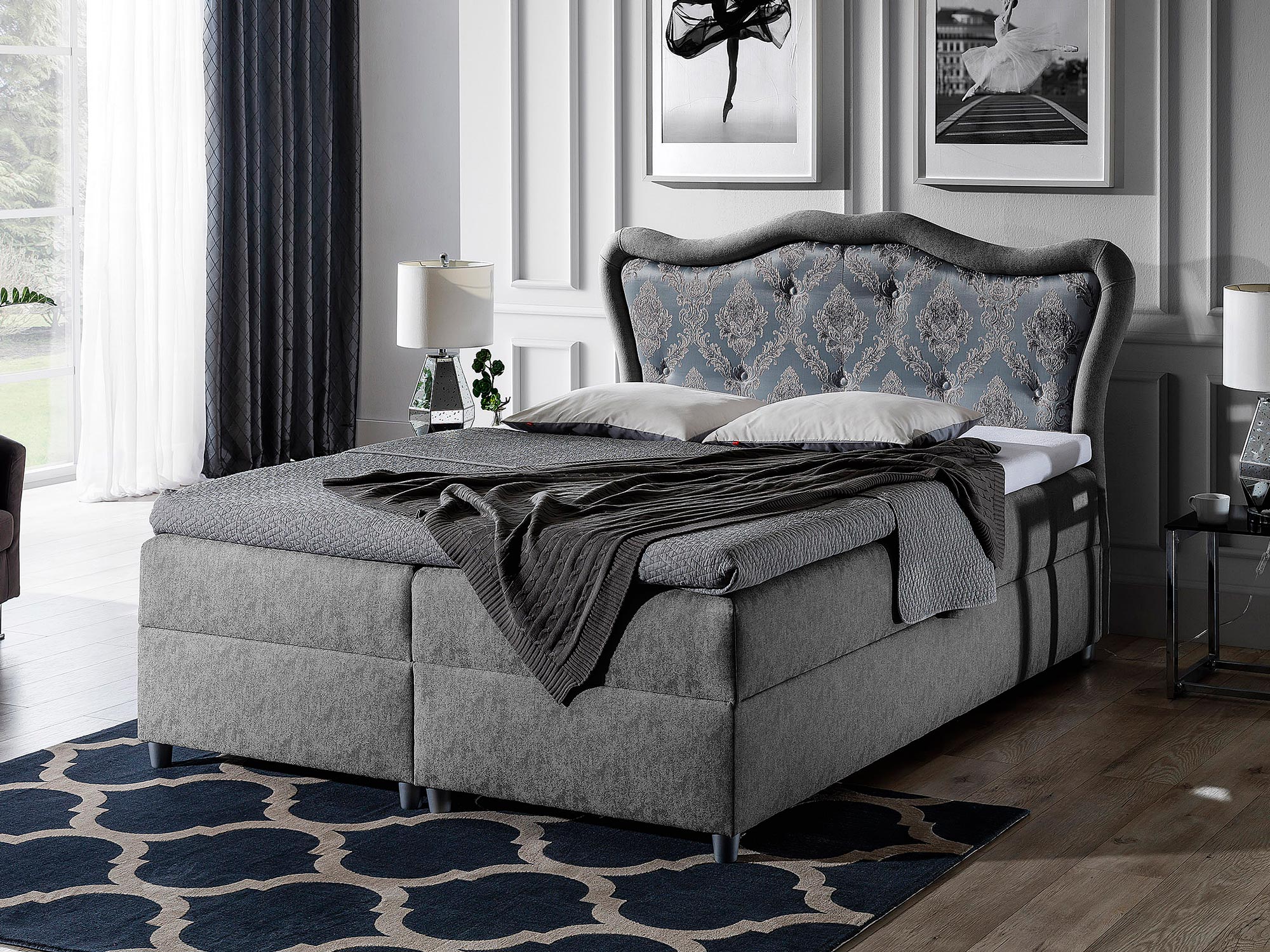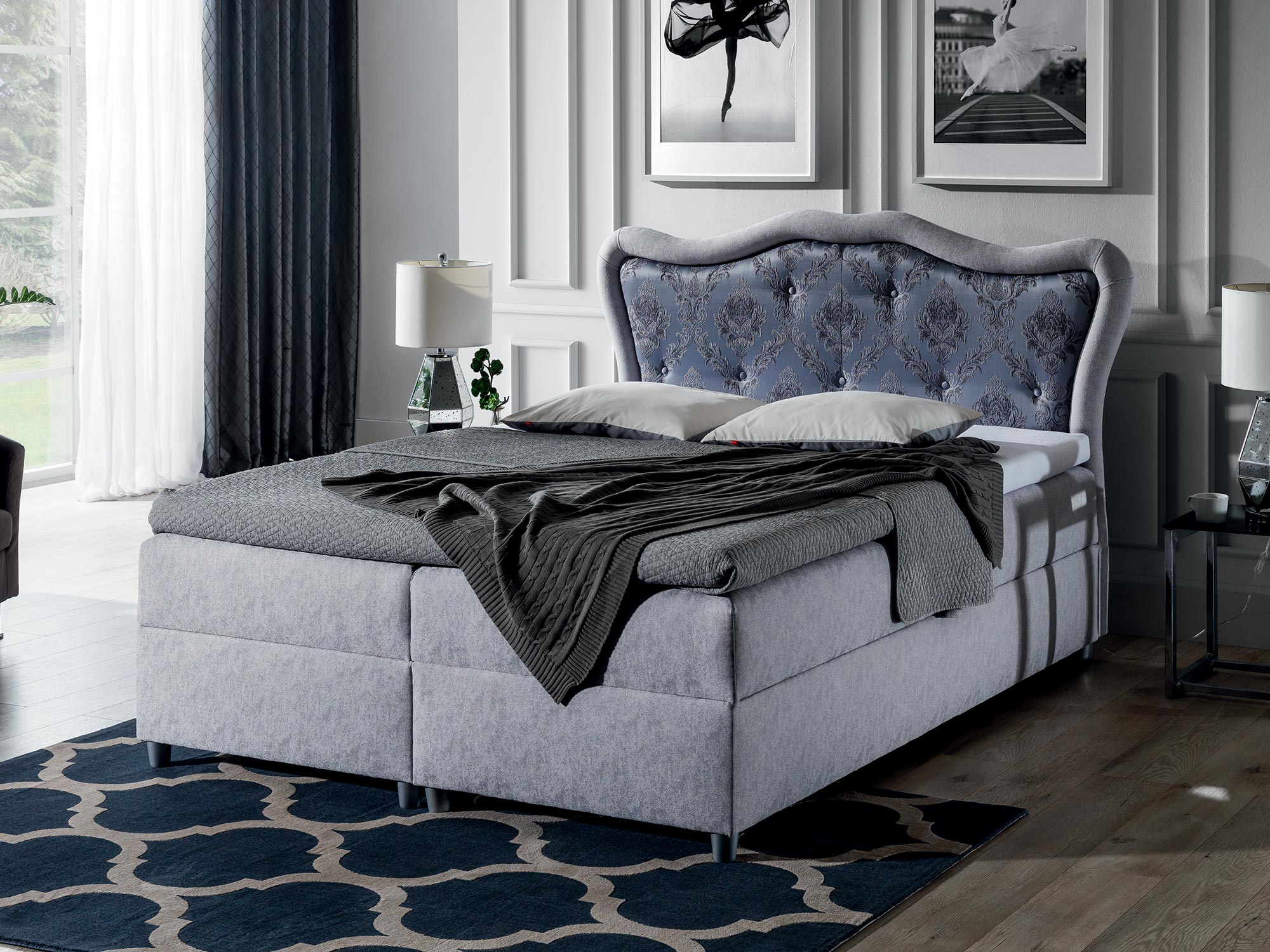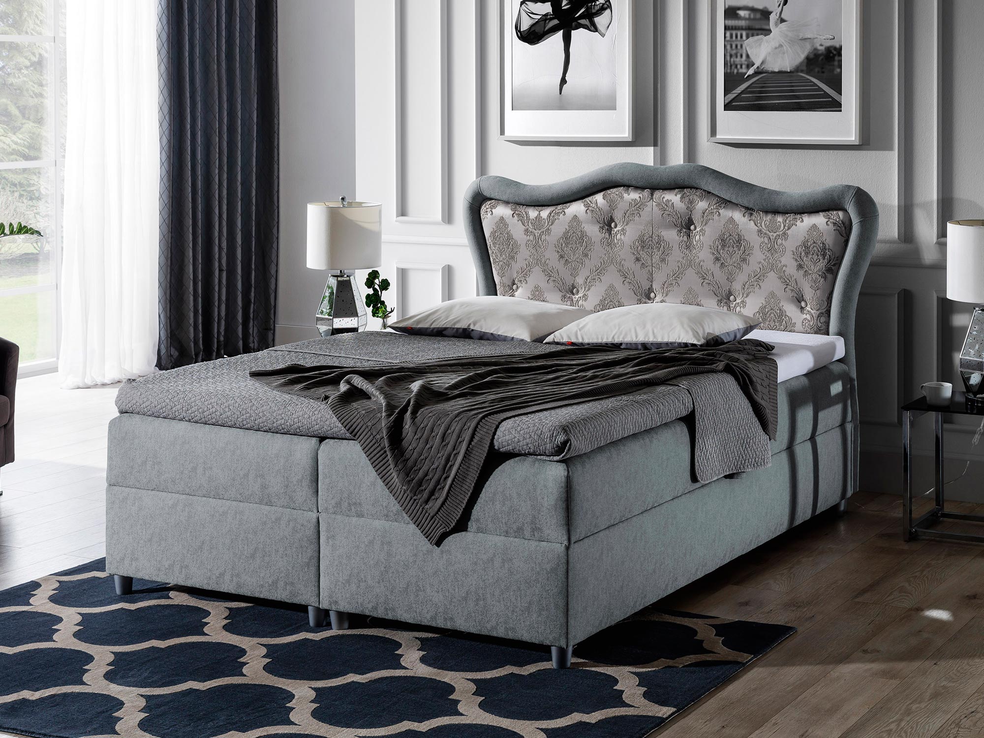 Co najważniejsze łóżko w stylu prowansalskim EMILIO wyróżnia się wysokim zaokrąglonym wezgłowiem, na którym umieszczona została elegancka grafika. Mebel ten doskonale wzbogaci wnętrze i nada mu oryginalnego charakteru. Ponadto łóżko posiada dwa pojemniki na pościel otwierane z obu stron z automatami sprężynowym ułatwiającymi otwieranie skrzyni. Oferujemy również inne modele łóżek kontynentalnych z naszego sklepu.