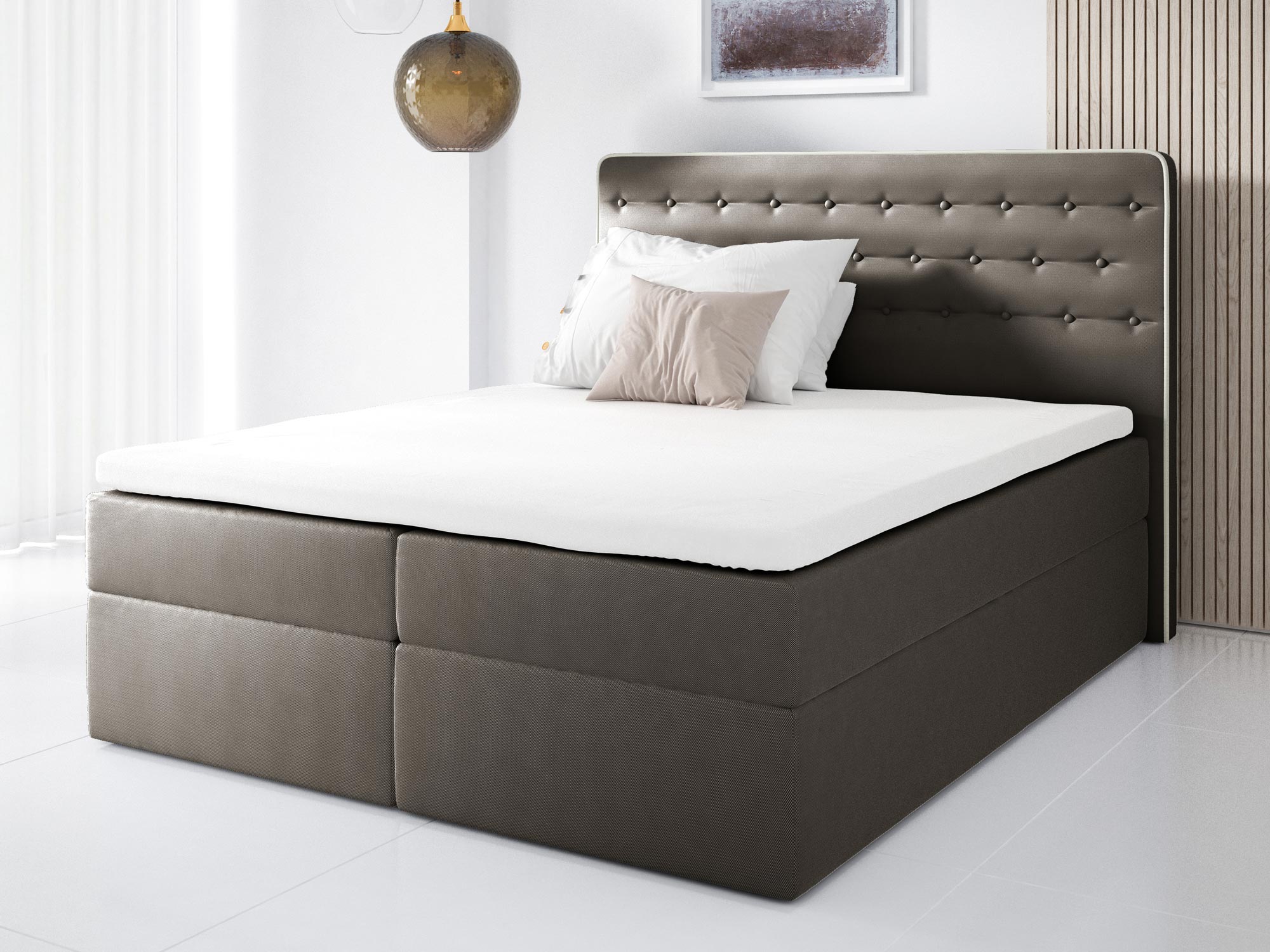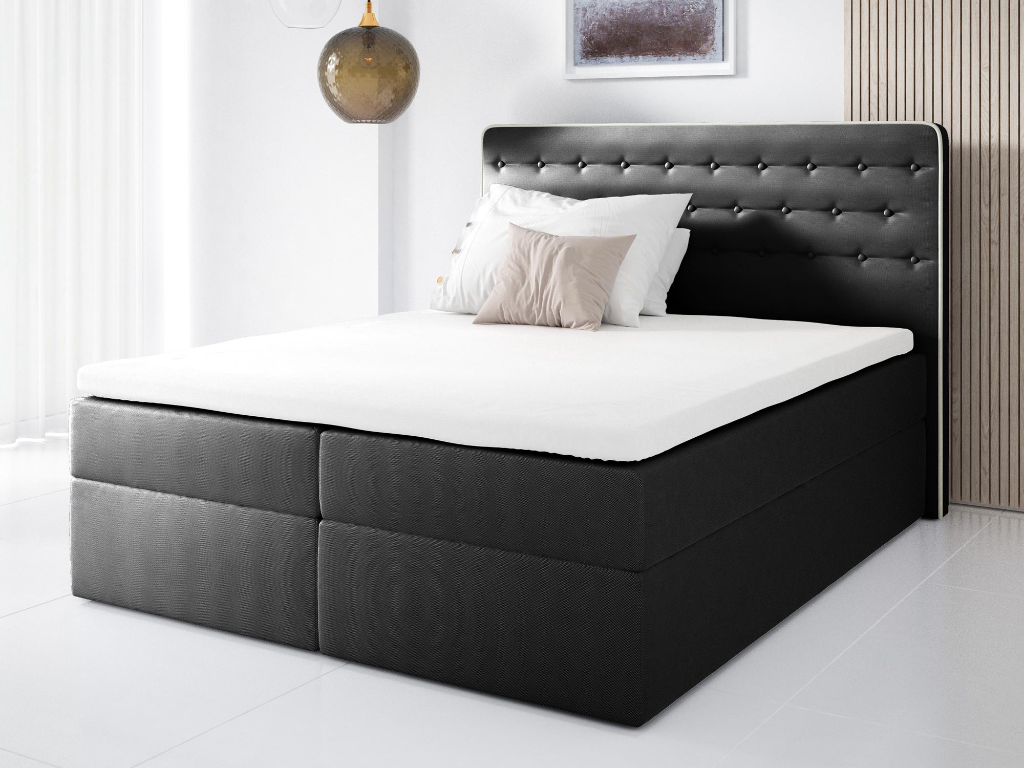 Co najważniejsze prezentowane łóżko kontynentalne IKAR charakteryzuje się prostym stylem wykończenia, a zarazem posiada pikowanie wezgłowie, które czyni sypialnię przytulną i elegancką. Ponadto mebel ten posiada wbudowany materac sprężynowy oraz dodatkowy materac nawierzchniowy, które zapewniają maksymalny komfort wypoczynku.