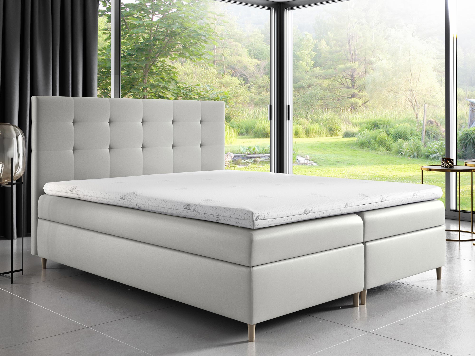 Przede wszystkim prezentowany model łóżka ENDO dostępny jest w bogatej gamie kolorystycznej i wielu rozmiarach do wyboru. Co więcej mebel ten posiada wbudowany materac sprężynowy oraz topper nawierzchniowy, dzięki czemu zapewnia wypoczynek na wysokim poziomie. Dodatkowo mebel posiada dwa osobne pojemniki na pościel na automatach sprężynowych ułatwiających ich otwarcie.