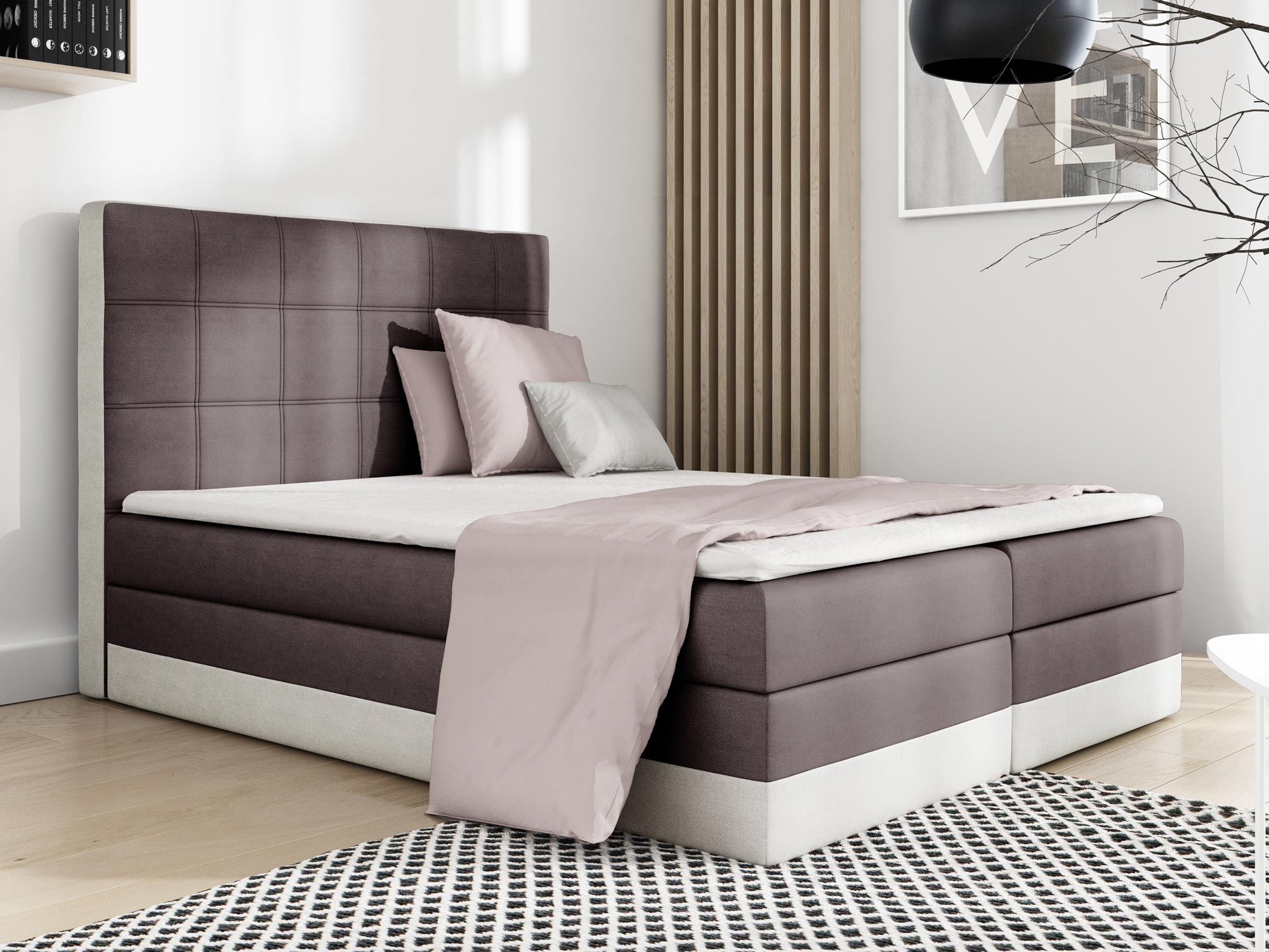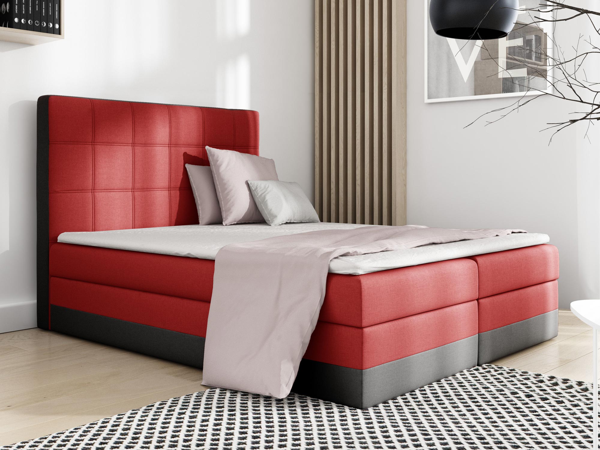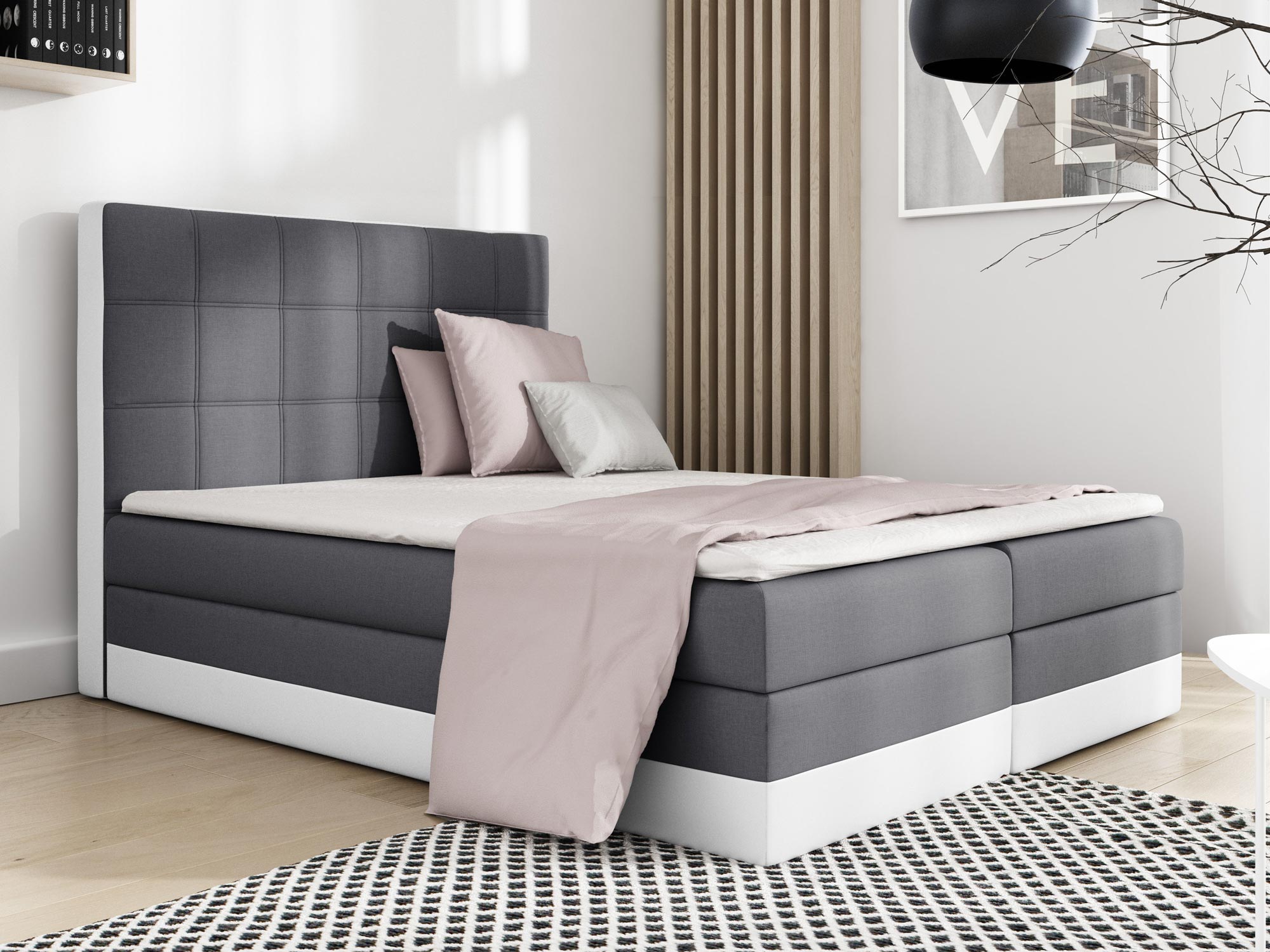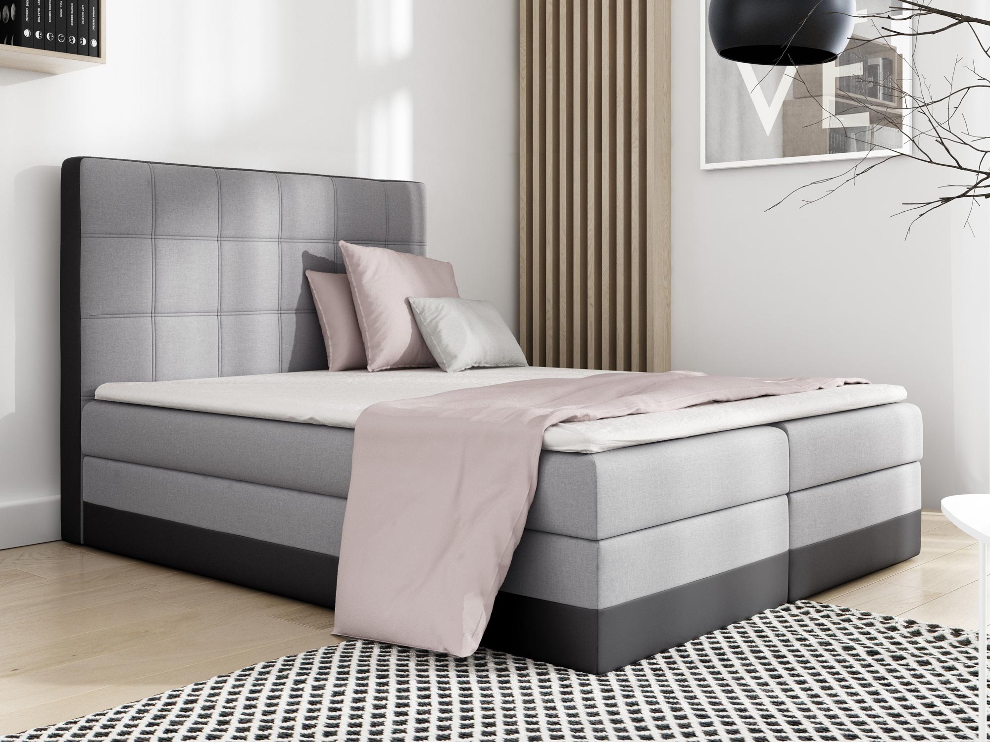 Co najważniejsze prezentowany model RAMOS wyróżnia ciekawe podwójne zestawienie kolorystyczne. Ponadto mebel ten posiada wysokie wezgłowie z przeszytym wzorem kratki, który prezentuje się niezwykle oryginalnie. Co więcej łóżko posiada 2 pojemniki otwierane na obie strony z automatami sprężynowymi, które ułatwiają otwieranie skrzyni.