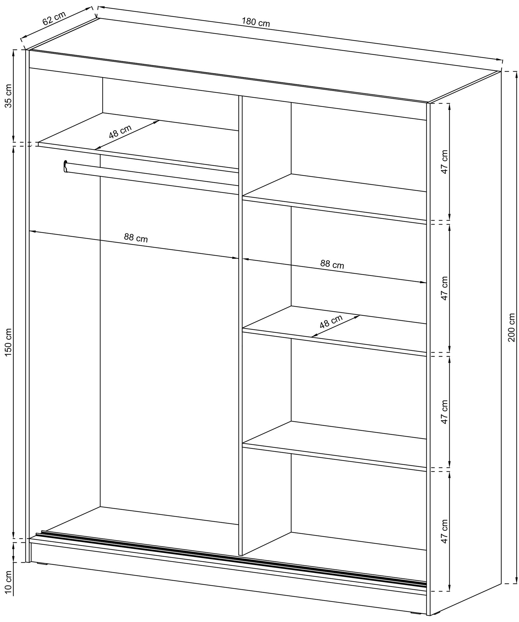 Szerokość: 180 cm / Wysokość: 200 cm / Głębokość: 62 cm