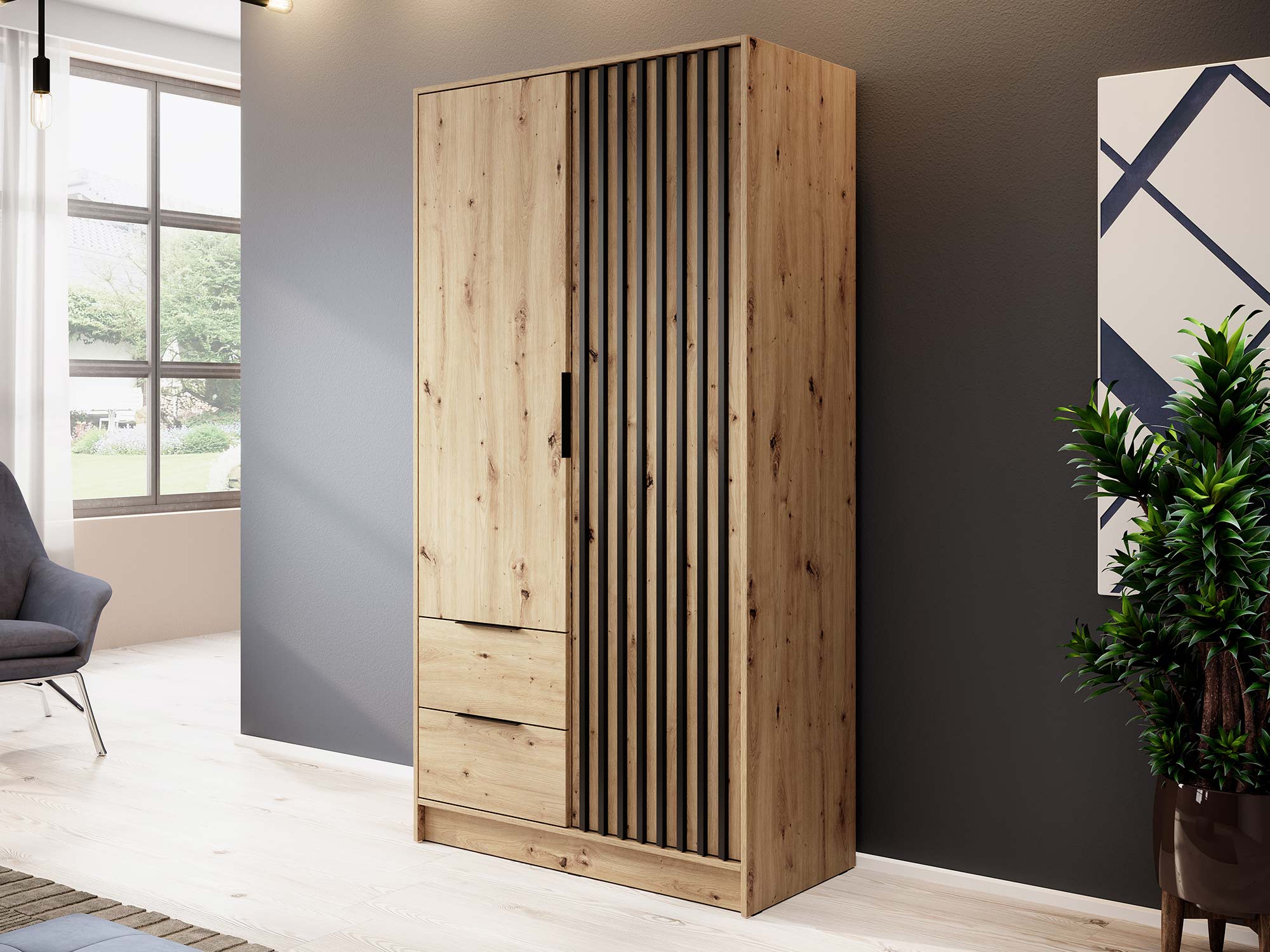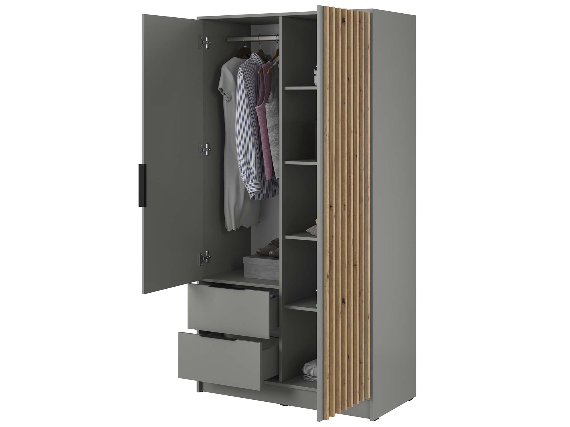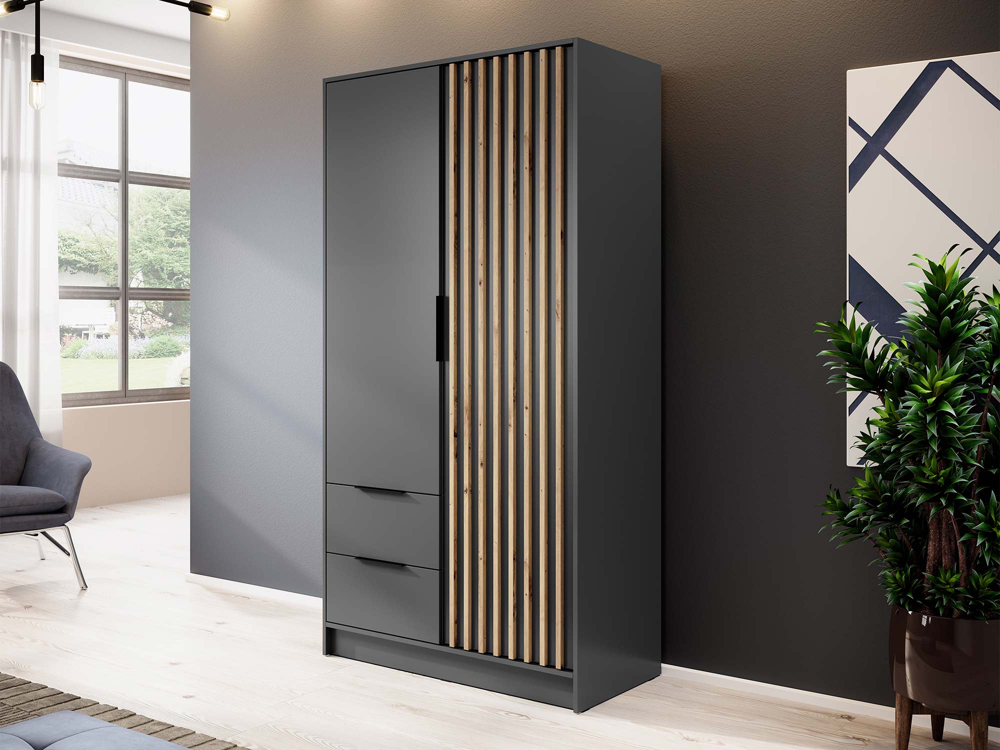 Nowoczesna Szafa DELY 105cm – Dąb, Grafit, Szary Artisan