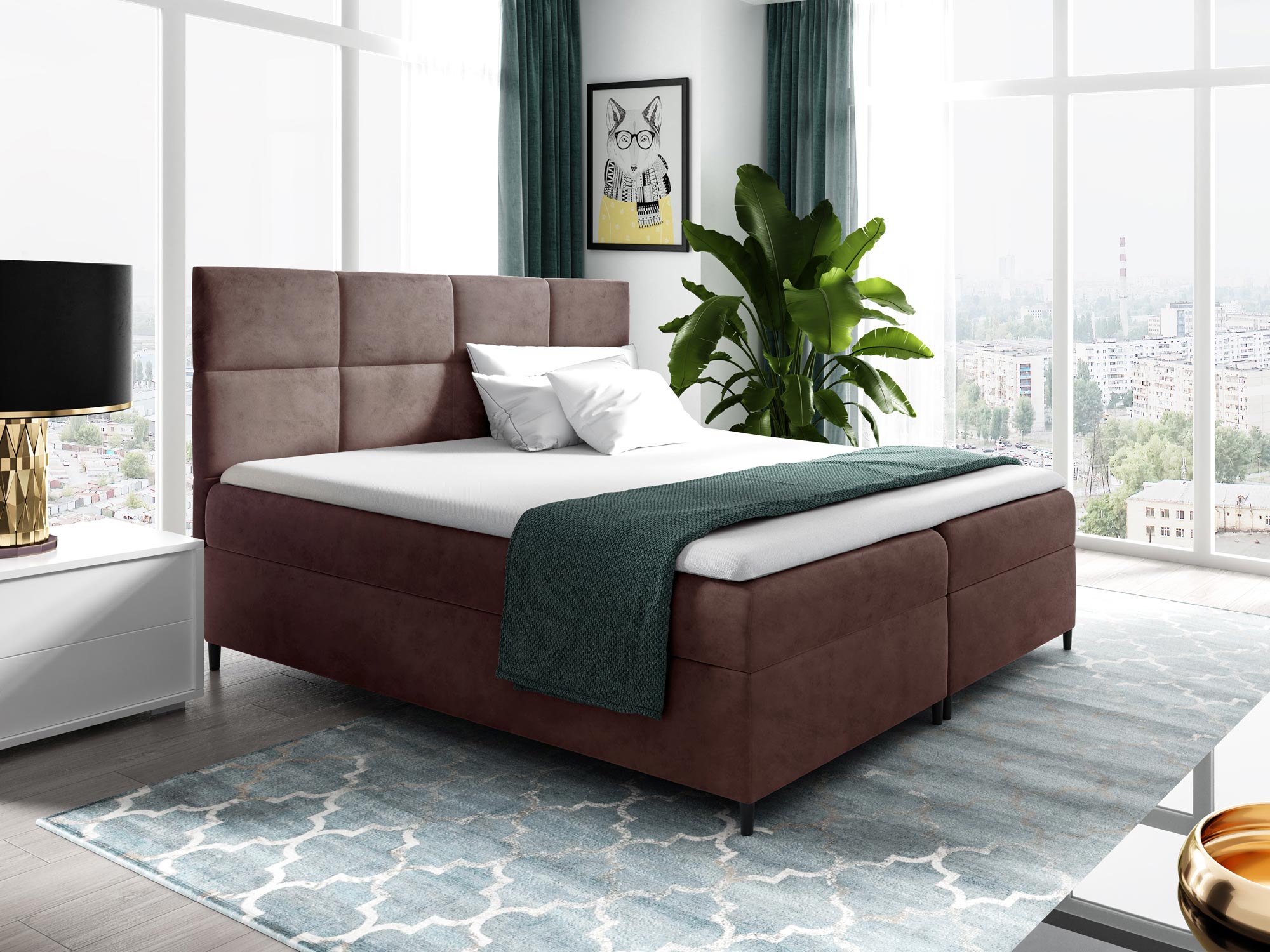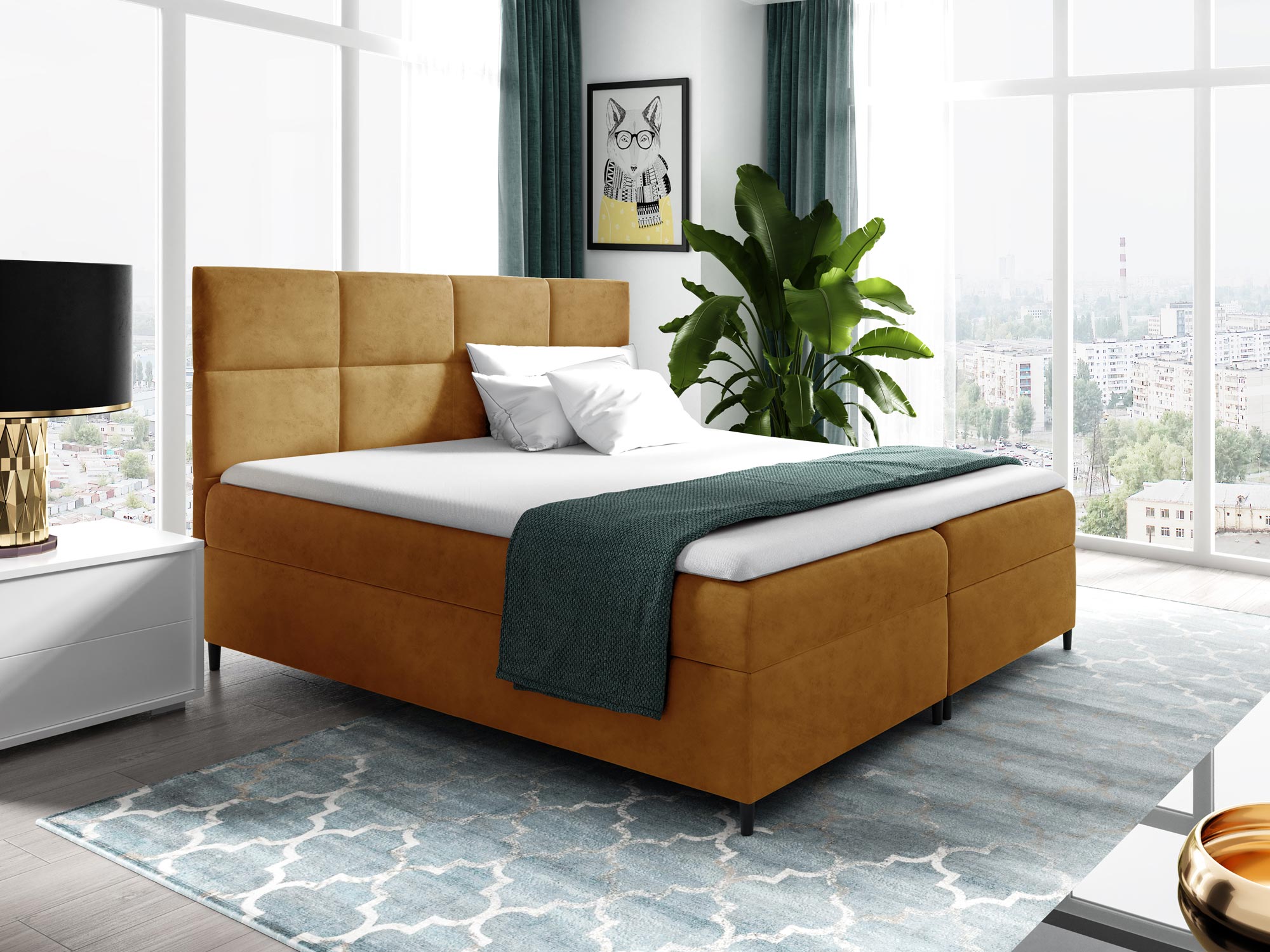 Prezentowane łóżko kontynentalne CALROTA charakteryzuje się unikalnym deginem niesamowicie wpasowującym się w nowoczesne aranżacje oraz funkcjonalnością, gdyż dwa duże pojemniki na pościel pozwalają na zaoszczędzenie sporo przestrzeni oraz zdecydowanie ułatwiają organizację. Co więcej dzięki szerokiej gamie dostępnych odcieni tapicerki bez trudu znajdziesz odpowiednią barwę do swojej sypialni. Dodatkowo, miękkie wezgłowie będzie doskonale sprawdzać się nie tylko do swobodnego oparcia, ale również czytania książki. Bezsprzecznie zastosowanie materaca sprężynowego oraz toppera z pianki zapewnia wysoki komfort wypoczynku i dobrą regenerację organizmu.