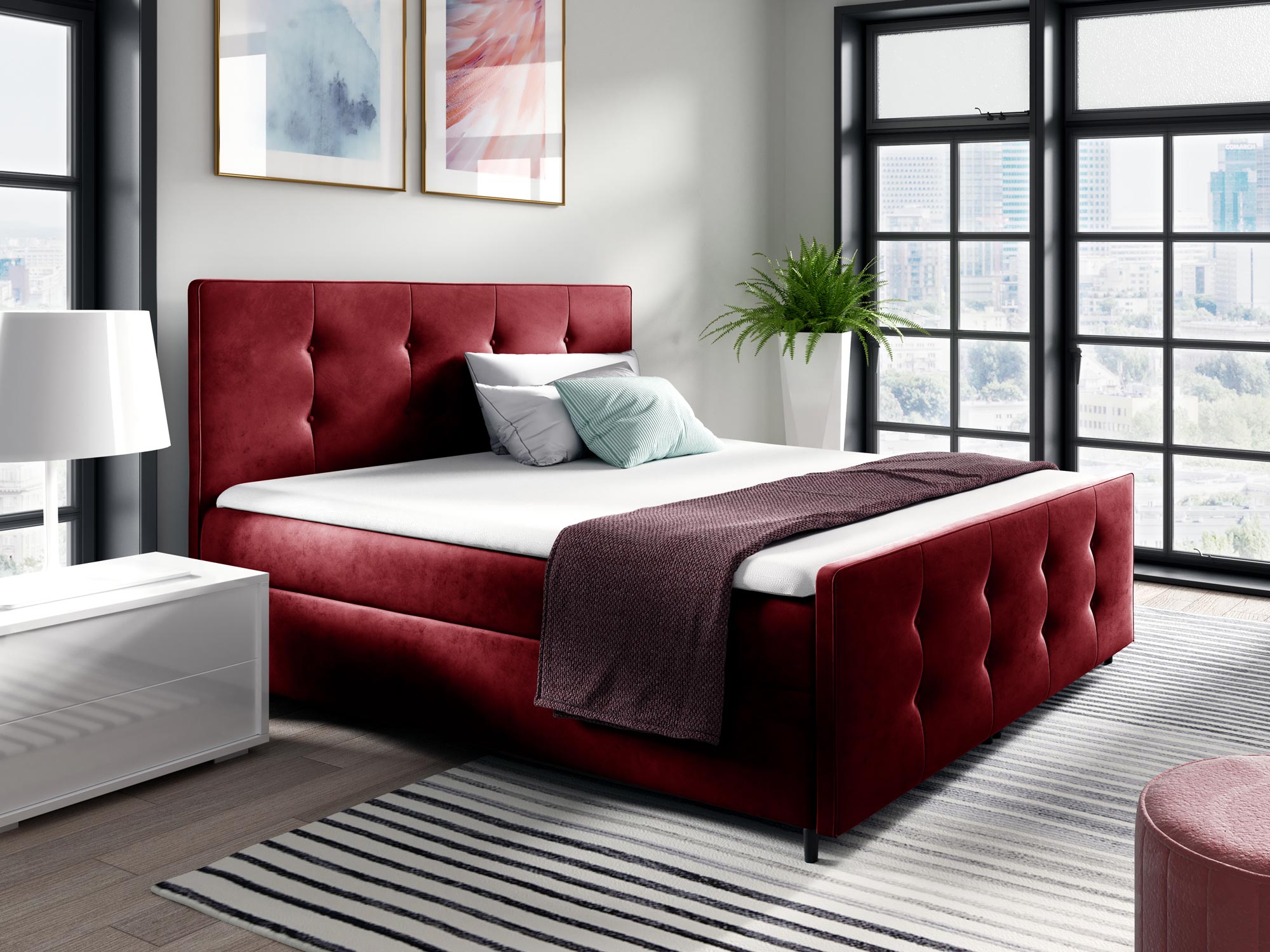 Pikowane łóżko kontynentalne czerwone YONI