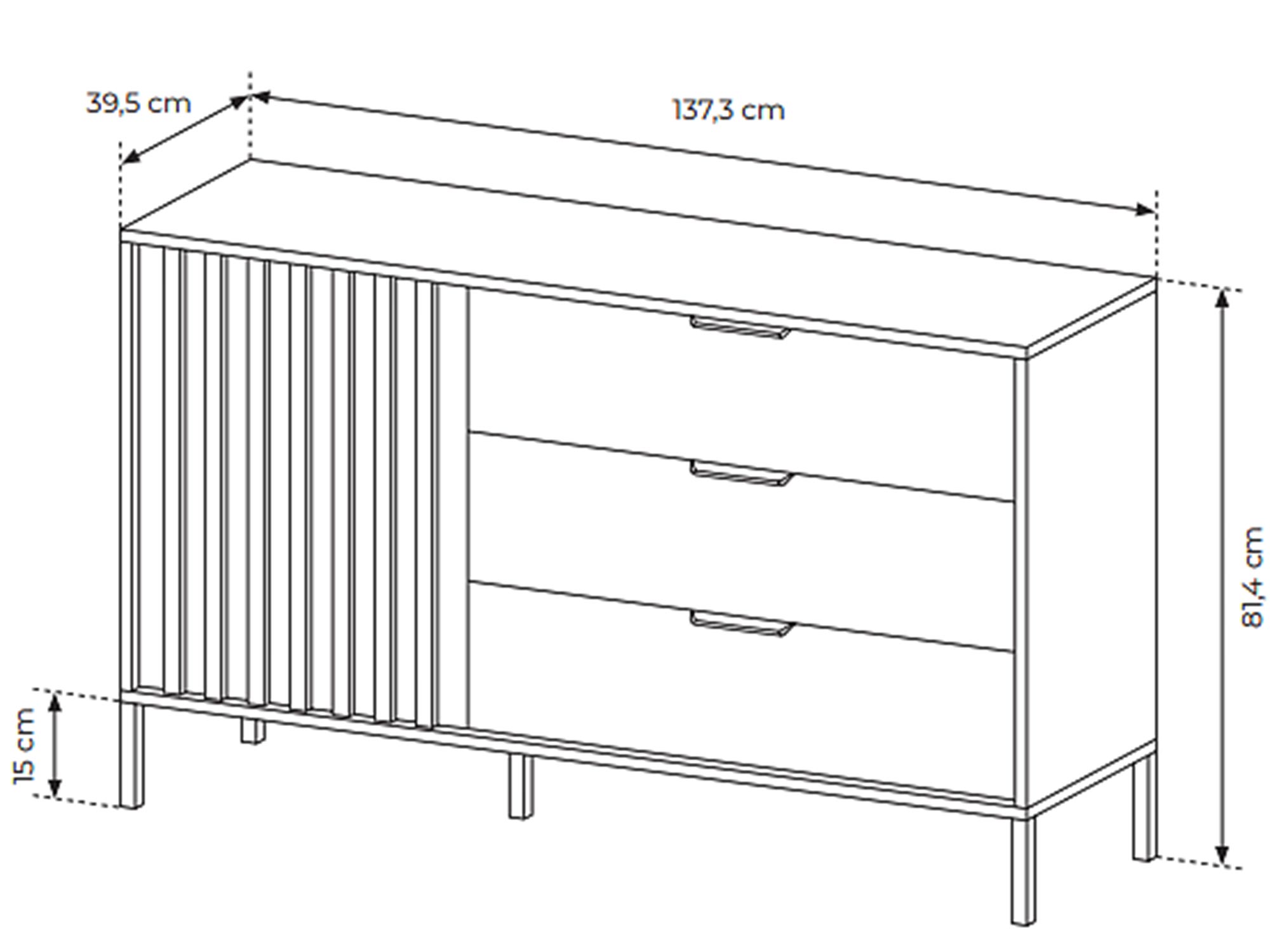 Drewniana komoda z czarnymi detalami i pionowymi listwami