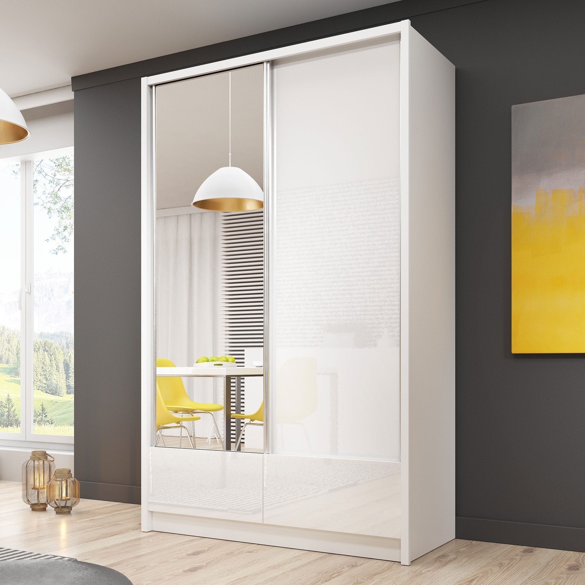 Pojemna przesuwna szafa MORIS I 130cm występująca w białej kolorystyce z lustrem na froncie. Dodatkowo mebel ten posiada prostą bryłę i klasyczny design. Ponadto jej wnętrze jest praktyczne i bardzo funkcjonalne. Przede wszystkim szafa z łatwością dopasuje się do każdego rodzaju wnętrza. Z pewnością przypadnie ona do gustu osobom, ceniącym sobie funkcjonalność i wygodę użytkowania.