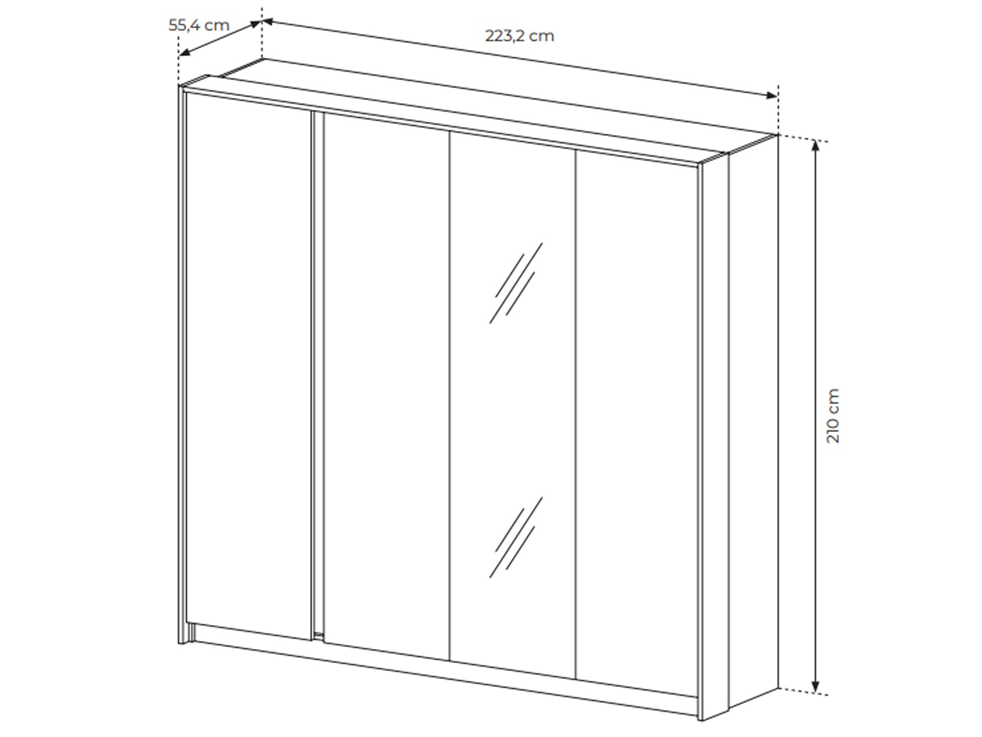 Szerokość: 223,2 cm / Wysokość: 210 cm / Głębokość: 55,4 cm