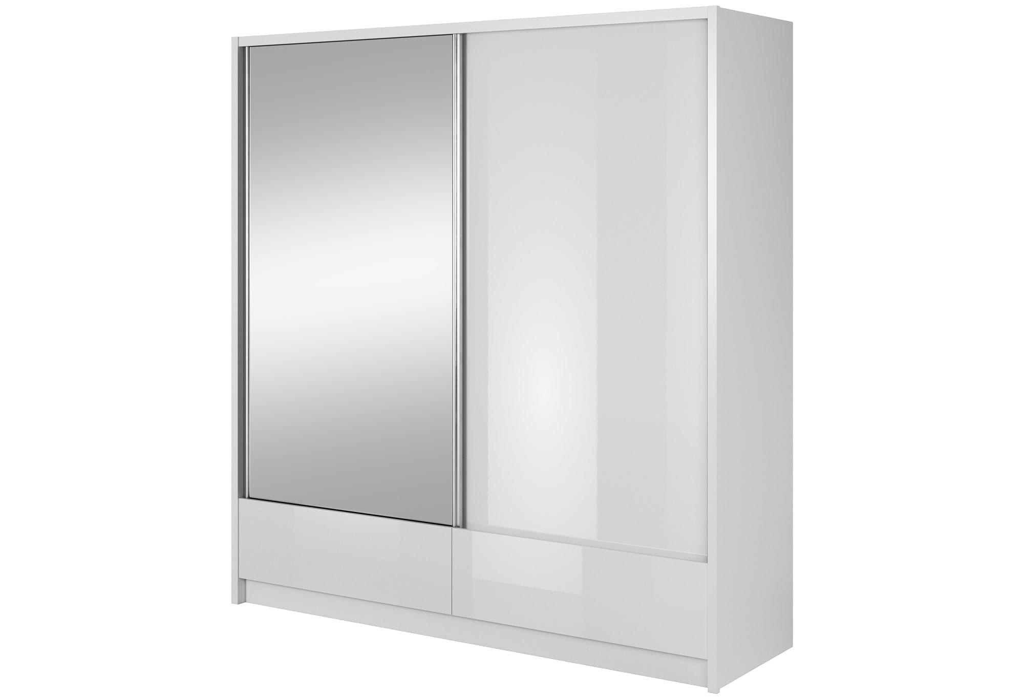 Korpus szafy wykonany został z wysokiej jakości płyty laminowanej, odpornej zarówno na zarysowania, wilgoć jak i wysoką temperaturę. Dodatkowo obrzeże ABS zapewnia trwałość, odporność na uderzenia oraz estetyczne wykończenie. Ponadto przesuwna szafa z lustrem MORIS I 200cm posiada uchwyty wykonane z aluminium na całej wysokości lustra. Mamy również do zaoferowania szafy drewniane – solidne i trwałe.