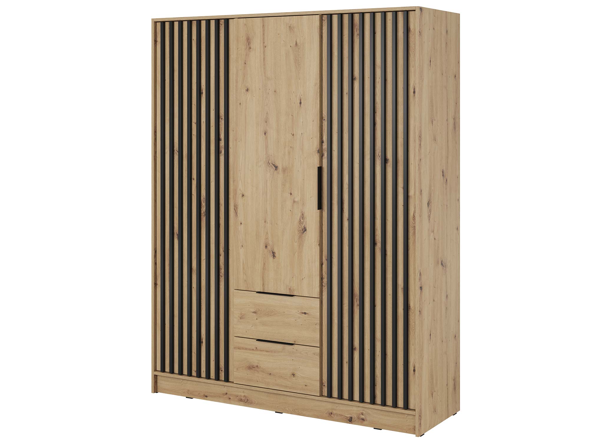 Odkryj Szafę DELY 3D 150cm Bez Lustra, która łączy w sobie nowoczesny design z niezrównaną funkcjonalnością, stanowiąc idealne rozwiązanie dla osób poszukujących mebla zarówno praktycznego, jak i estetycznego. Wykonana z wysokiej jakości płyty laminowanej o grubości 16 mm i wykończona obrzeżami ABS, szafa DELY 3D gwarantuje wytrzymałość, trwałość i odporność na codzienne wyzwania.