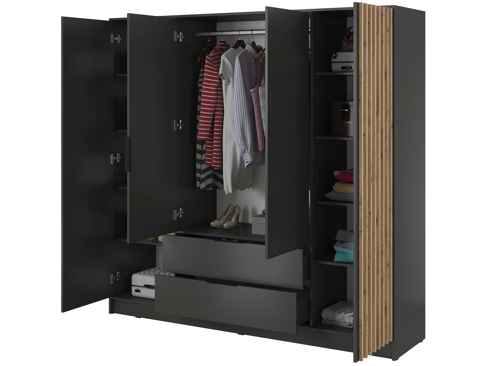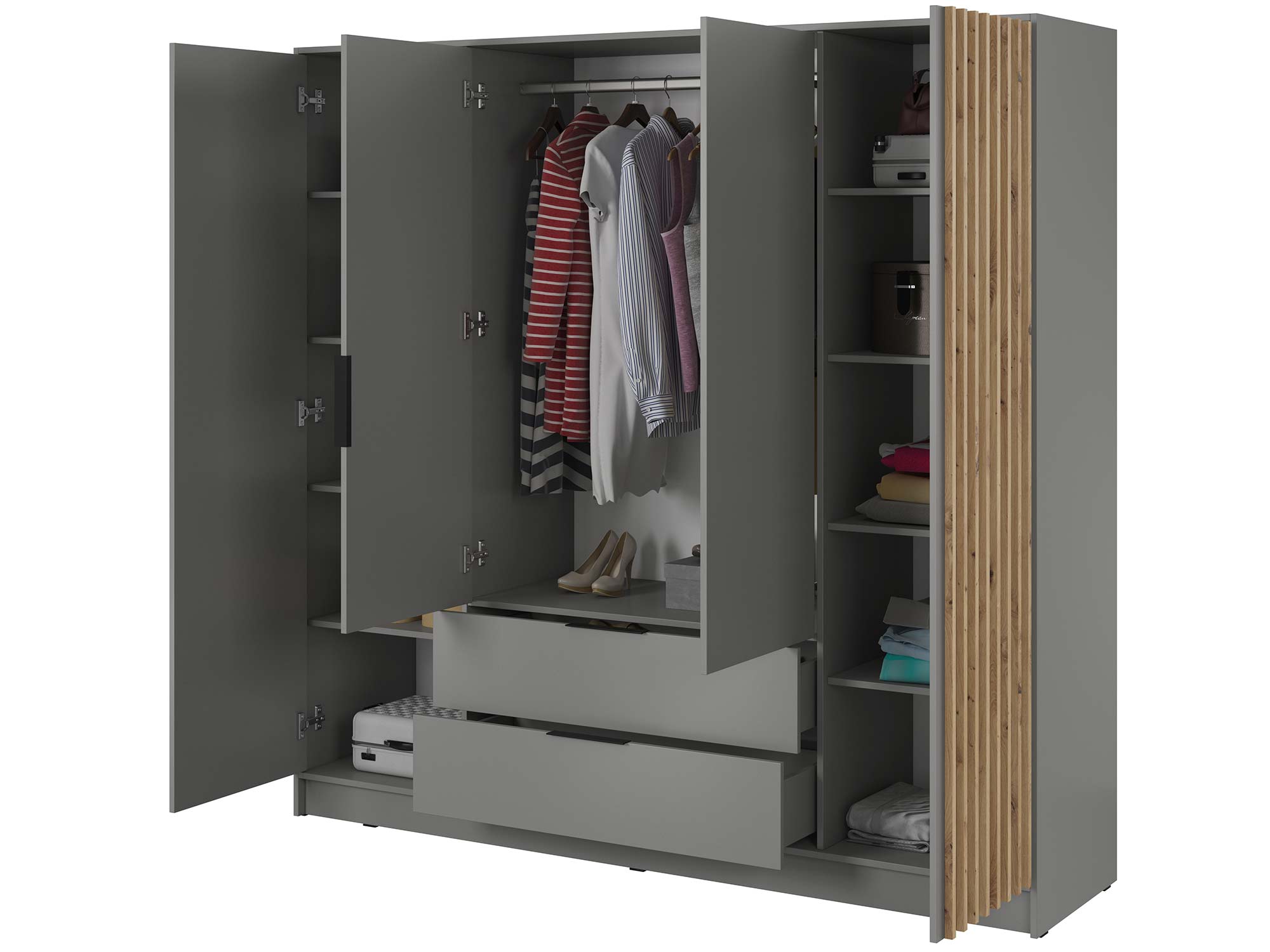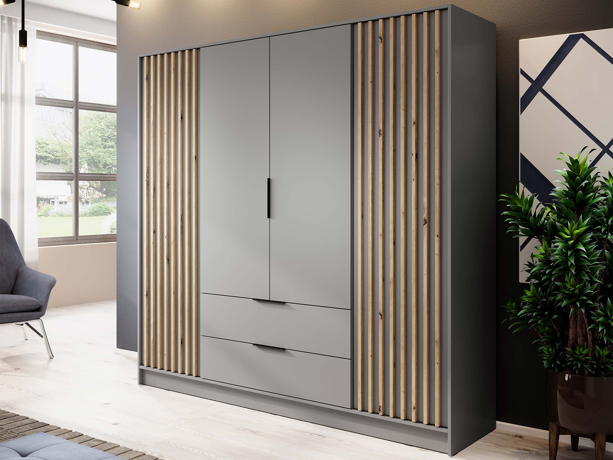 Szafa DELY 4D 200 cm Bez Lustra – Ozdobne Lamelowanie