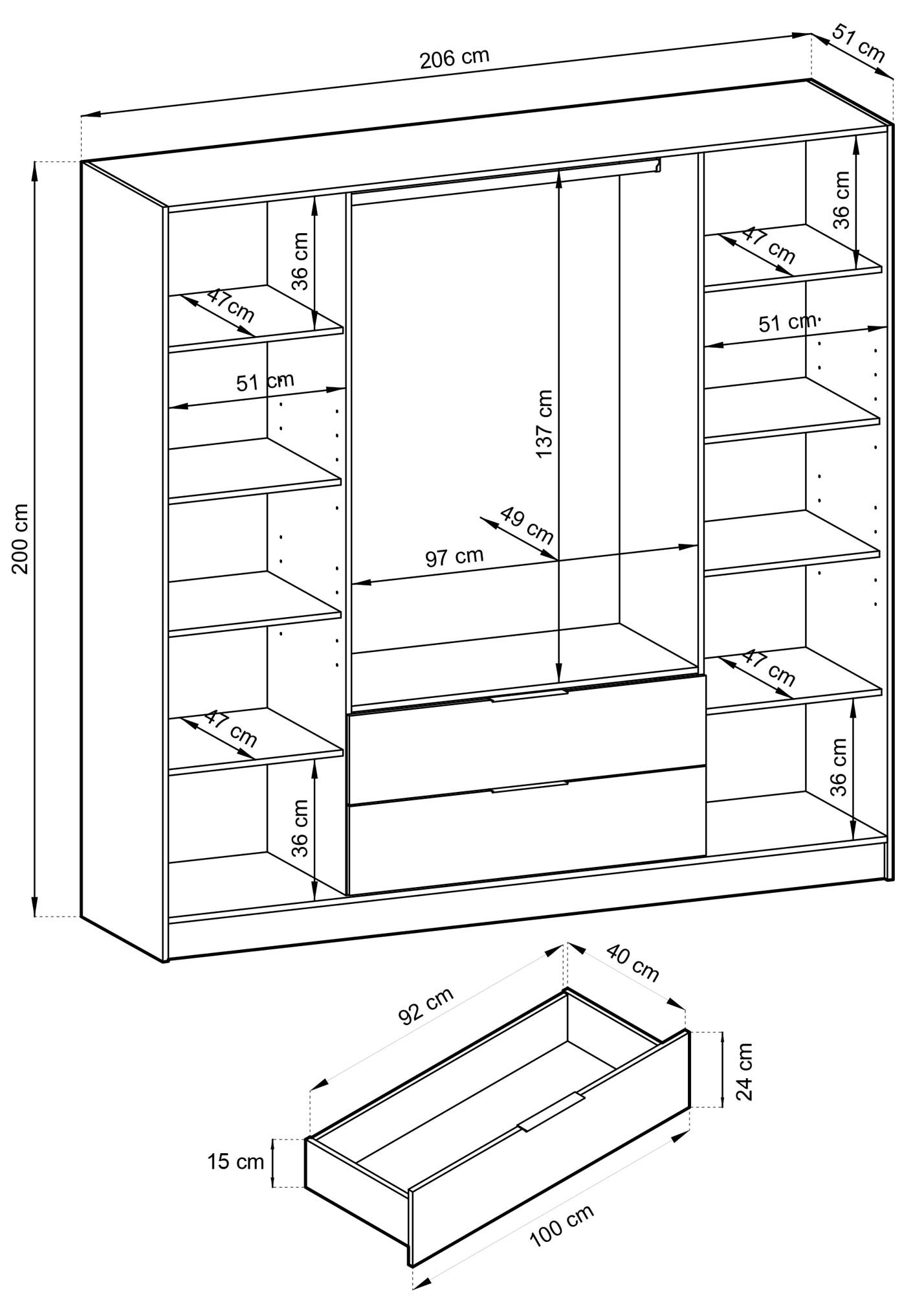 Szerokość: 206 cm / Wysokość: 200 cm / Głębokość: 51 cm
