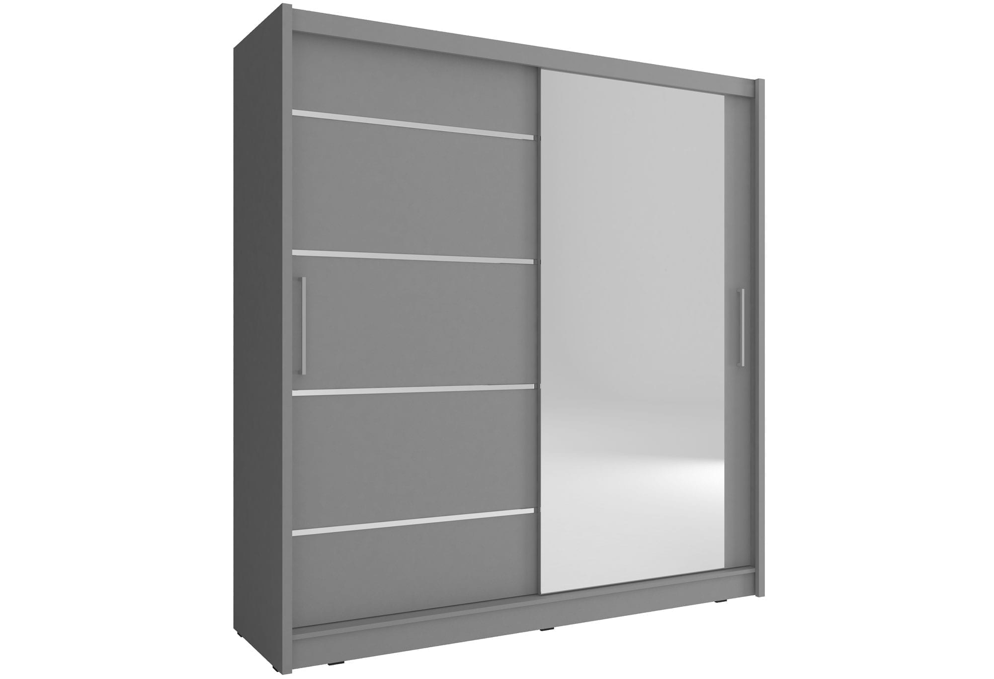 Wszyscy amatorzy nowoczesnej stylistyki z całą pewnością zachwycą się designem szafy ALVERA I ALU. Z pewnością w swej prostocie skrywa pełną funkcjonalność. Dostępna jest w trzech kolorach do wyboru dzięki czemu wpasuje się w każde nowocześnie urządzone wnętrze. Za dwojgiem drzwi przesuwnych skrywają się szerokie półki i drążek, który  stworzono z myślą o organizacji okryć wierzchnich lub ubrań, które łatwo się gniotą. Ciekawym dodatkiem są aluminiowe wstawki w postaci pasów na jednym z frontów szafy, nadające wyjątkowego stylu temu modelowi.