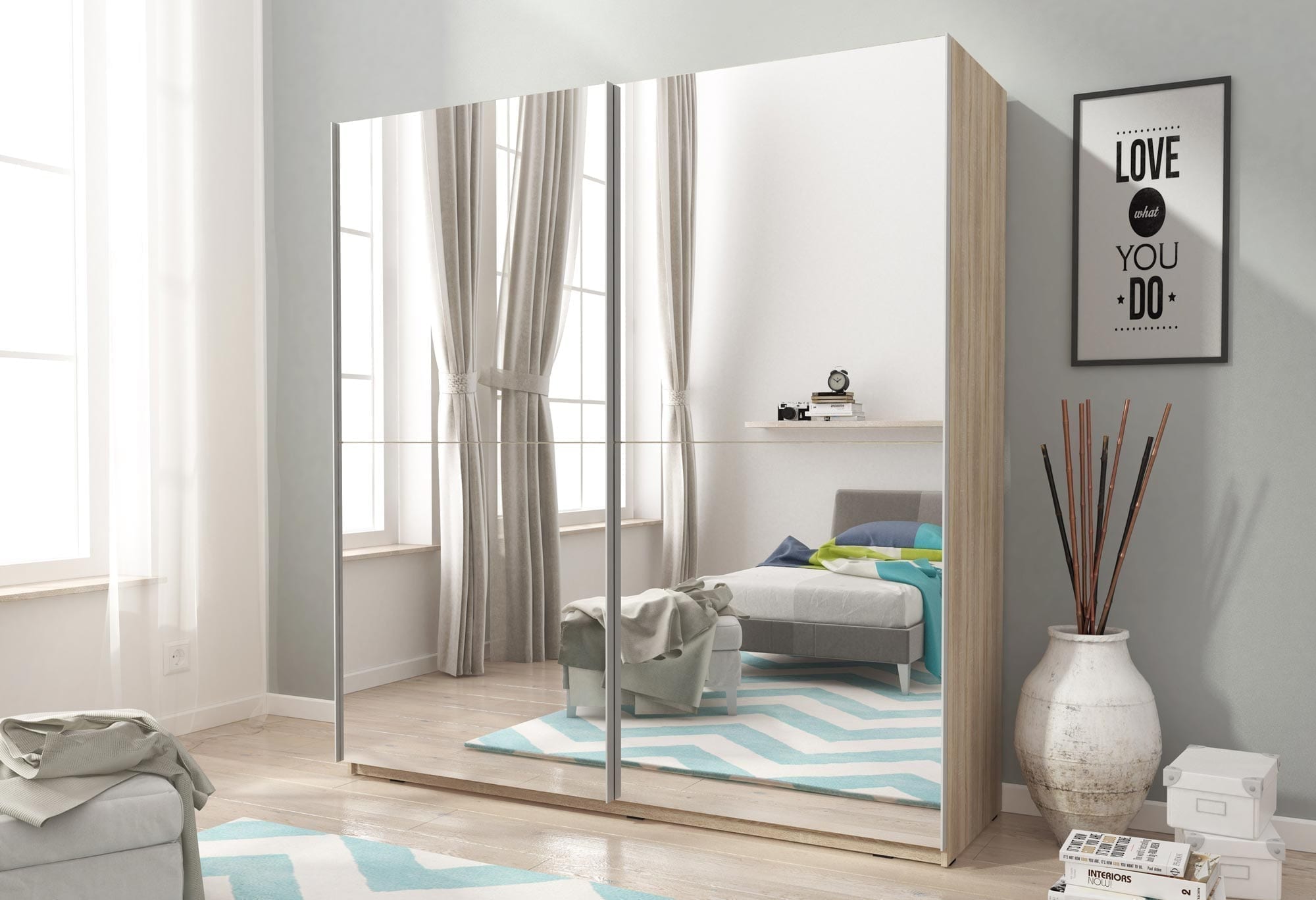 Szafa przesuwna z lustrzanymi frontami dąb sonoma aranżacja GAYA III 150cm