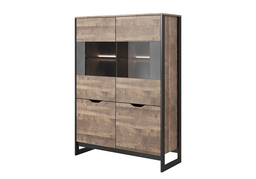 Komoda w stylu loft z przeszklonym frontem i czarną ramą