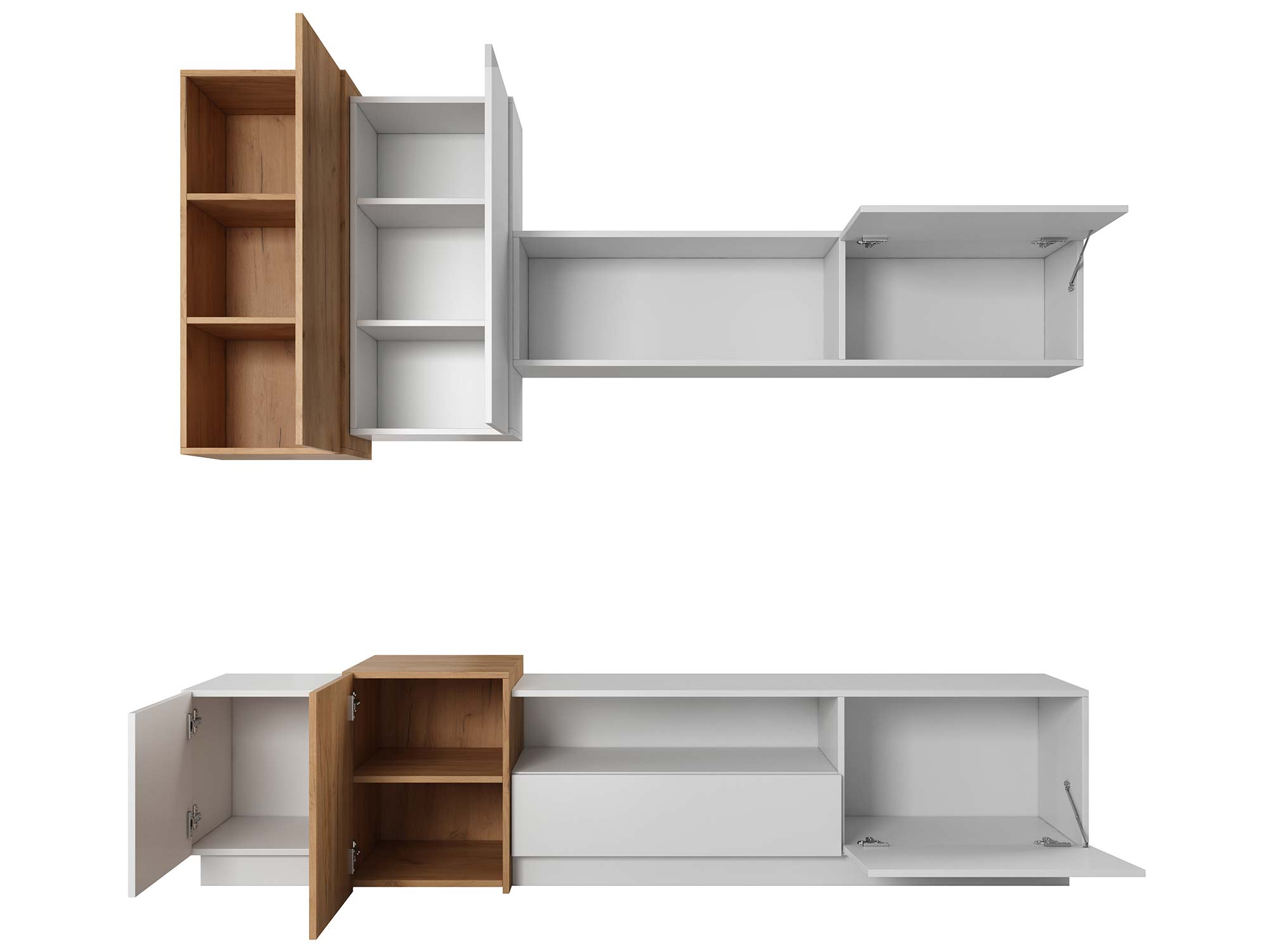 Nowoczesna meblościanka MAILS to nowy system mebli, który nada Twojemu pomieszczeniu niepowtarzalny i unikatowy charakter. Z pewnością biel przeplatająca się z kolorystyką dębu craft złotego pozwoli na ożywienie oraz kontrast w Twoim salonie. System 3Dto nowa linia mebli powstała z myślą o nowoczesnych wnętrzach. Dzięki meblom z serii MAILS stworzysz ciekawą aranżację swojego salonu. Meble wykonane z płyty laminowanej o grubości 16 mm o odporności na zarysowania oraz wilgoć. Zawiasy z prowadnicami systemu z domkiem.