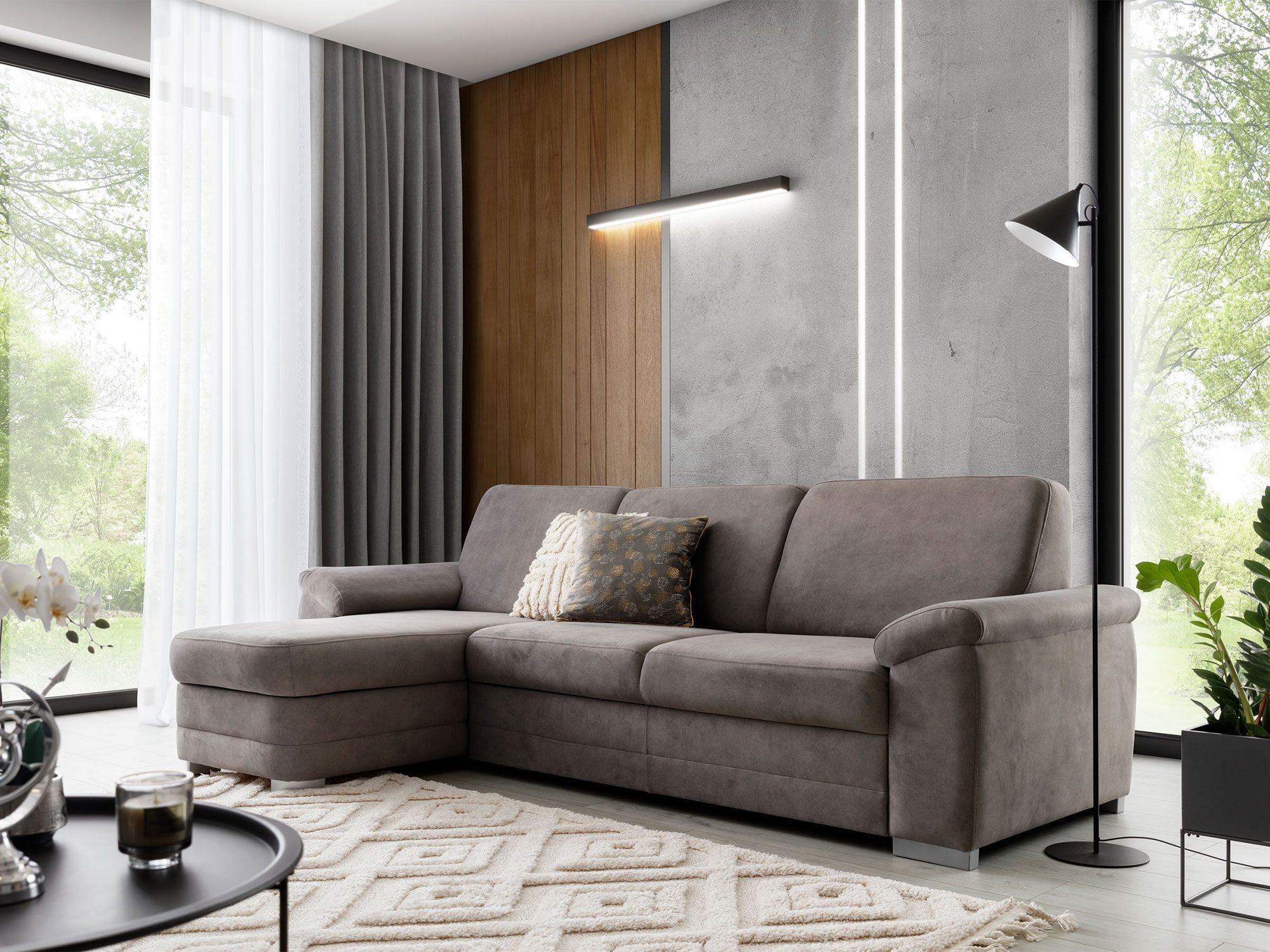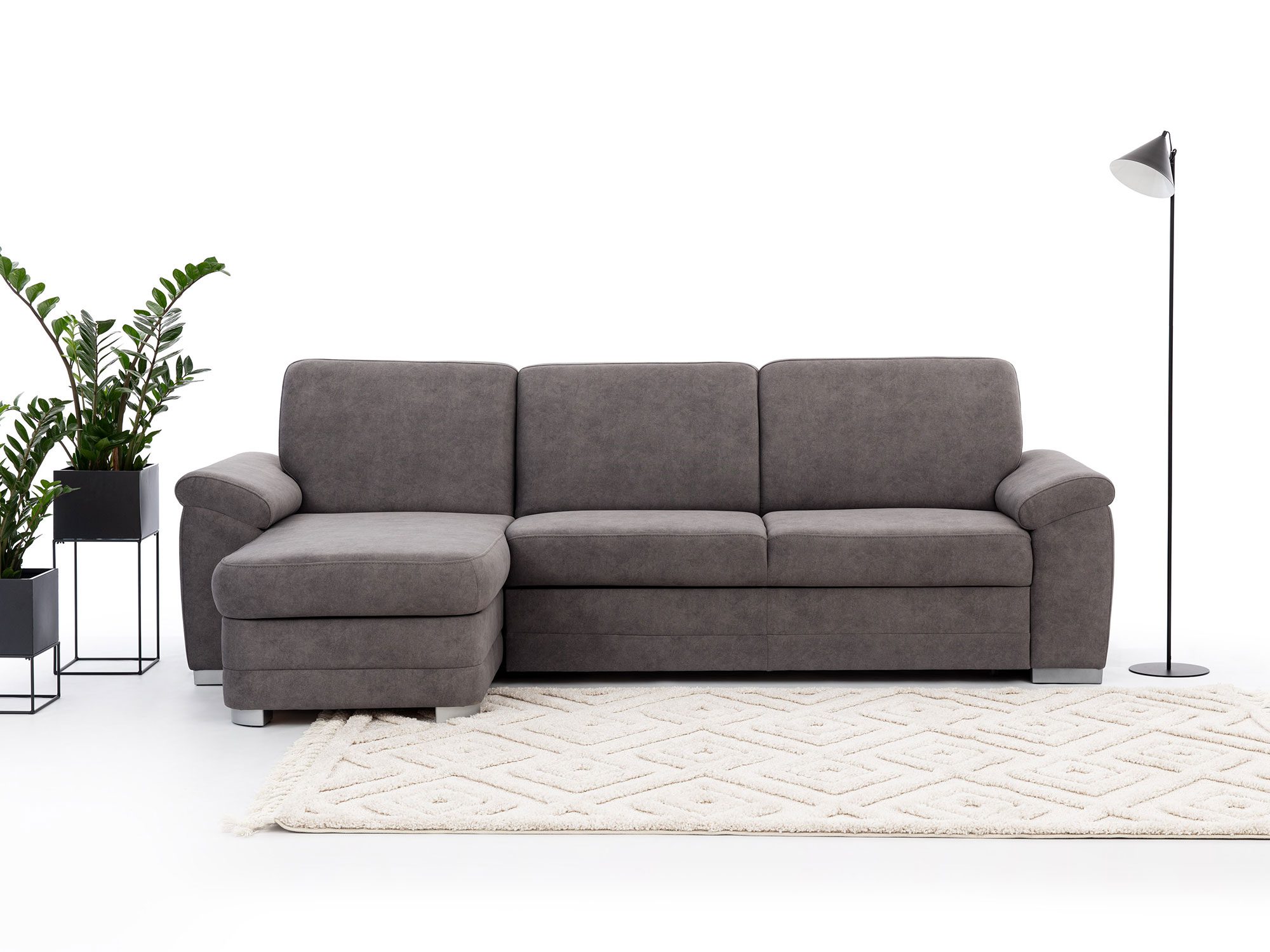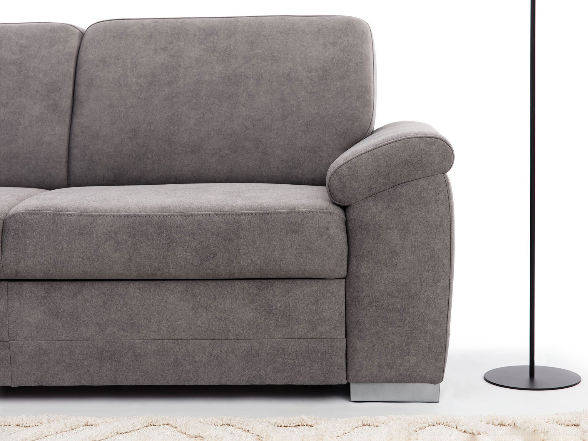 Nowoczesny narożnik z funkcją spania, szara tapicerka