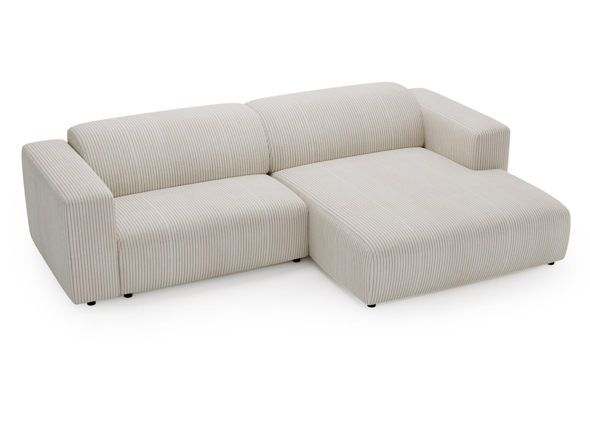Beżowy narożnik sztruksowy z szezlongiem po prawej stronie