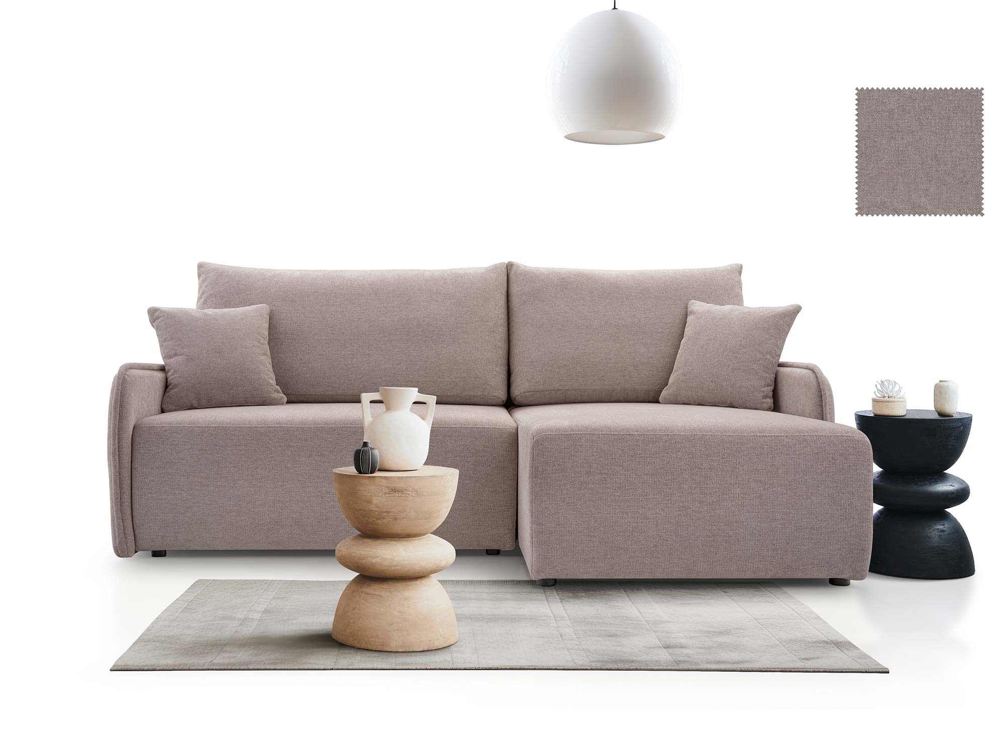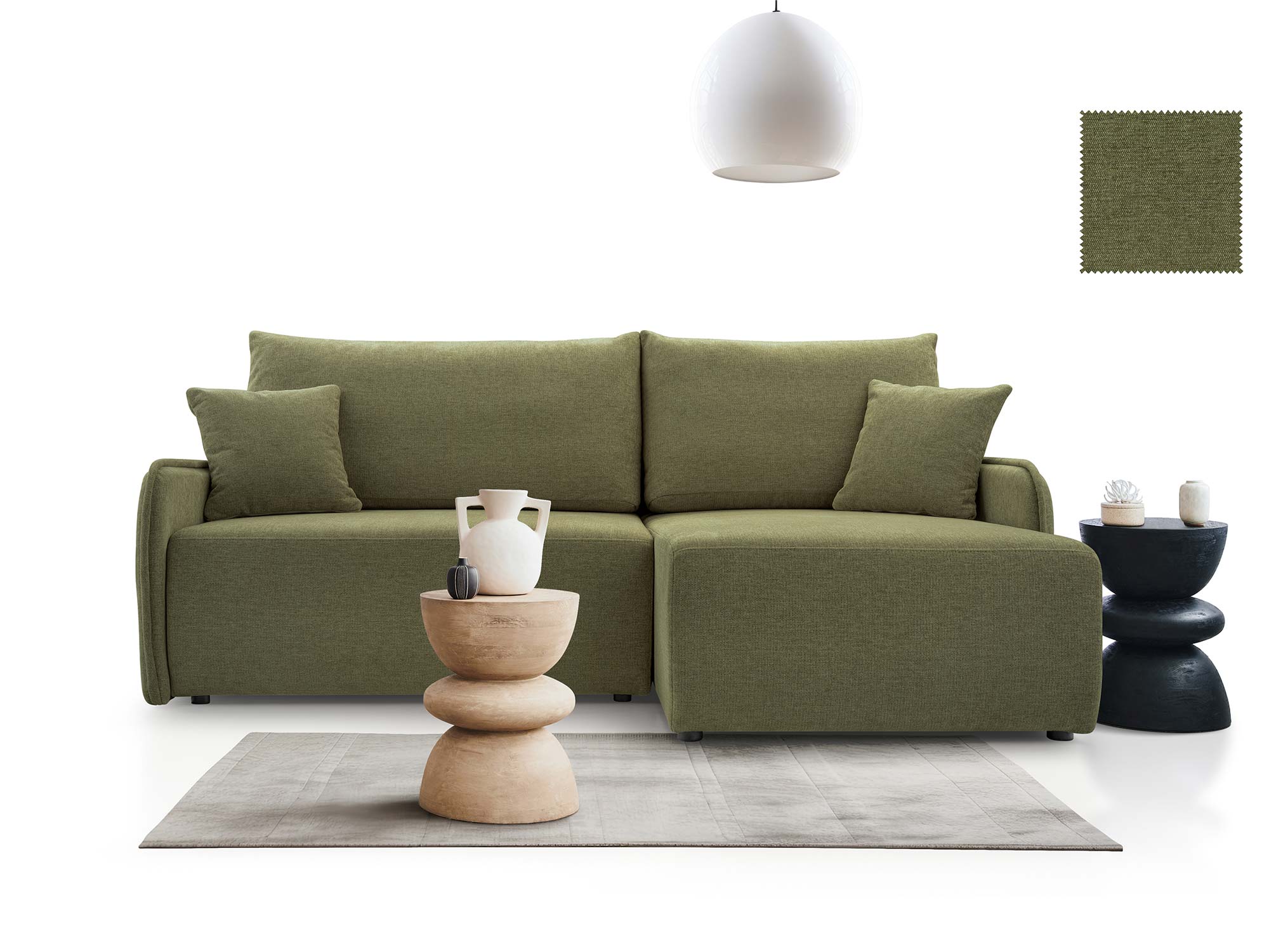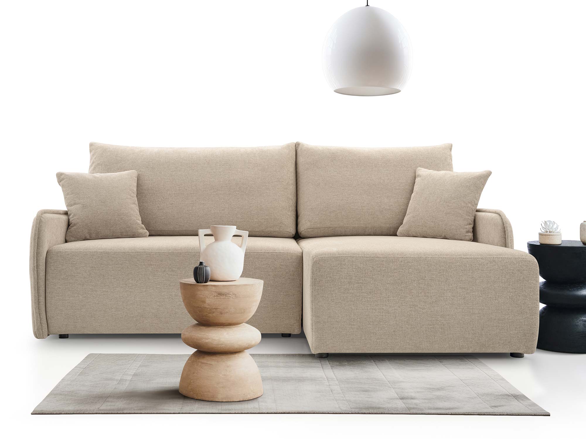 - Nowoczesny design – elegancka bryła, uzupełniona o ozdobne poduszki.