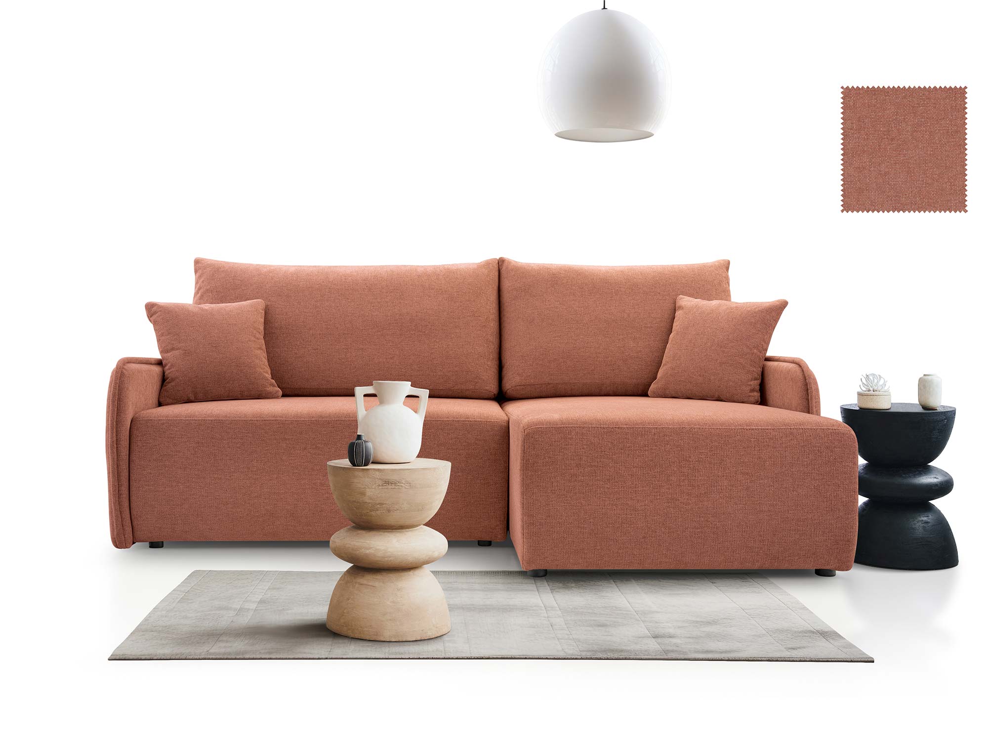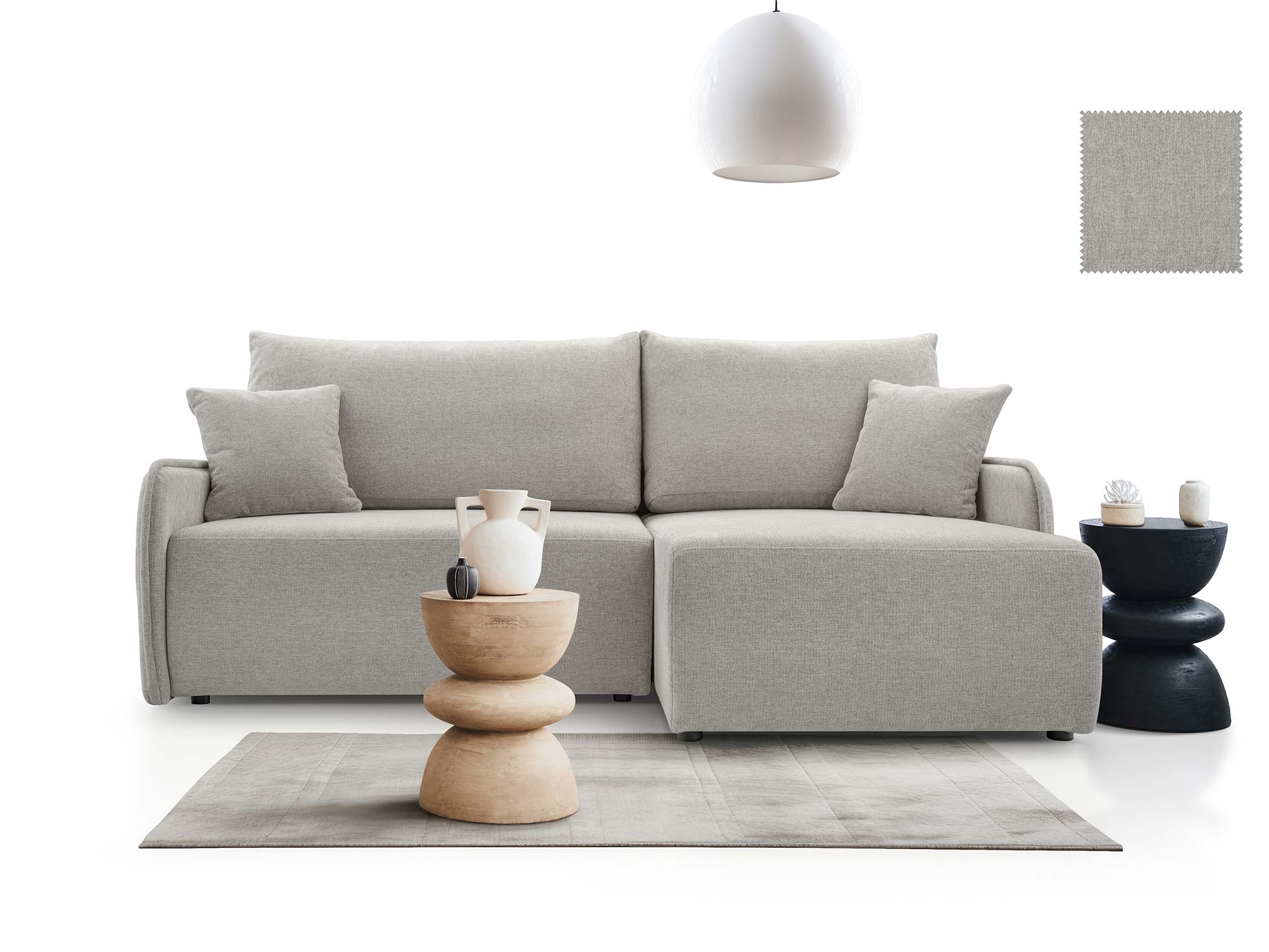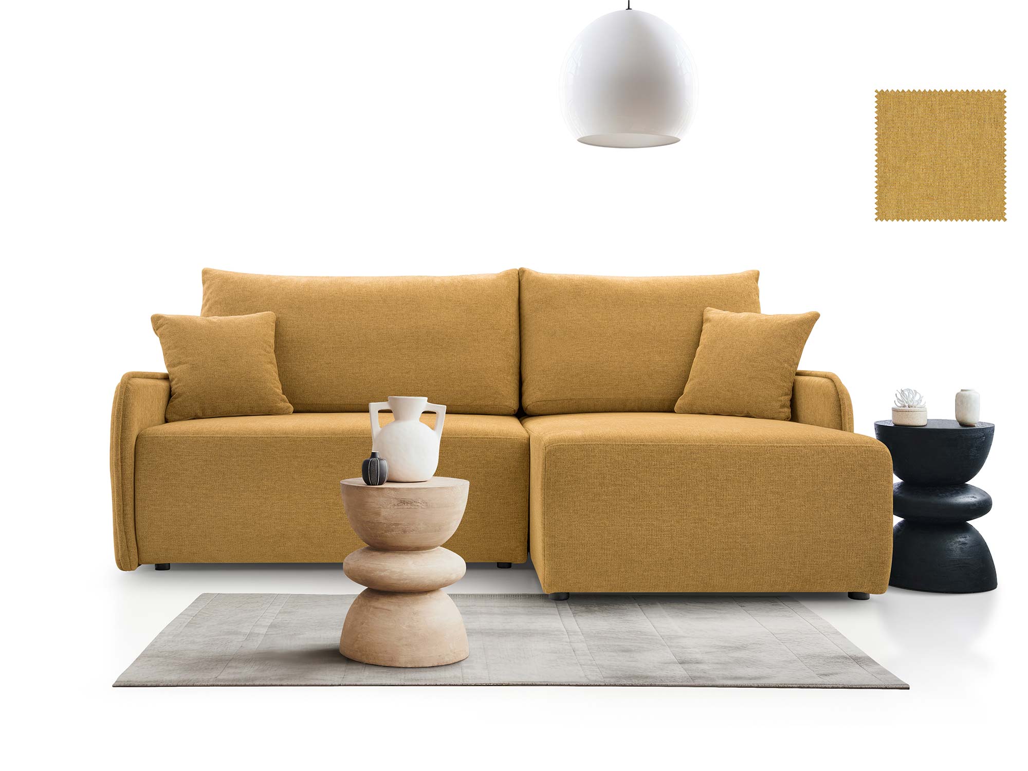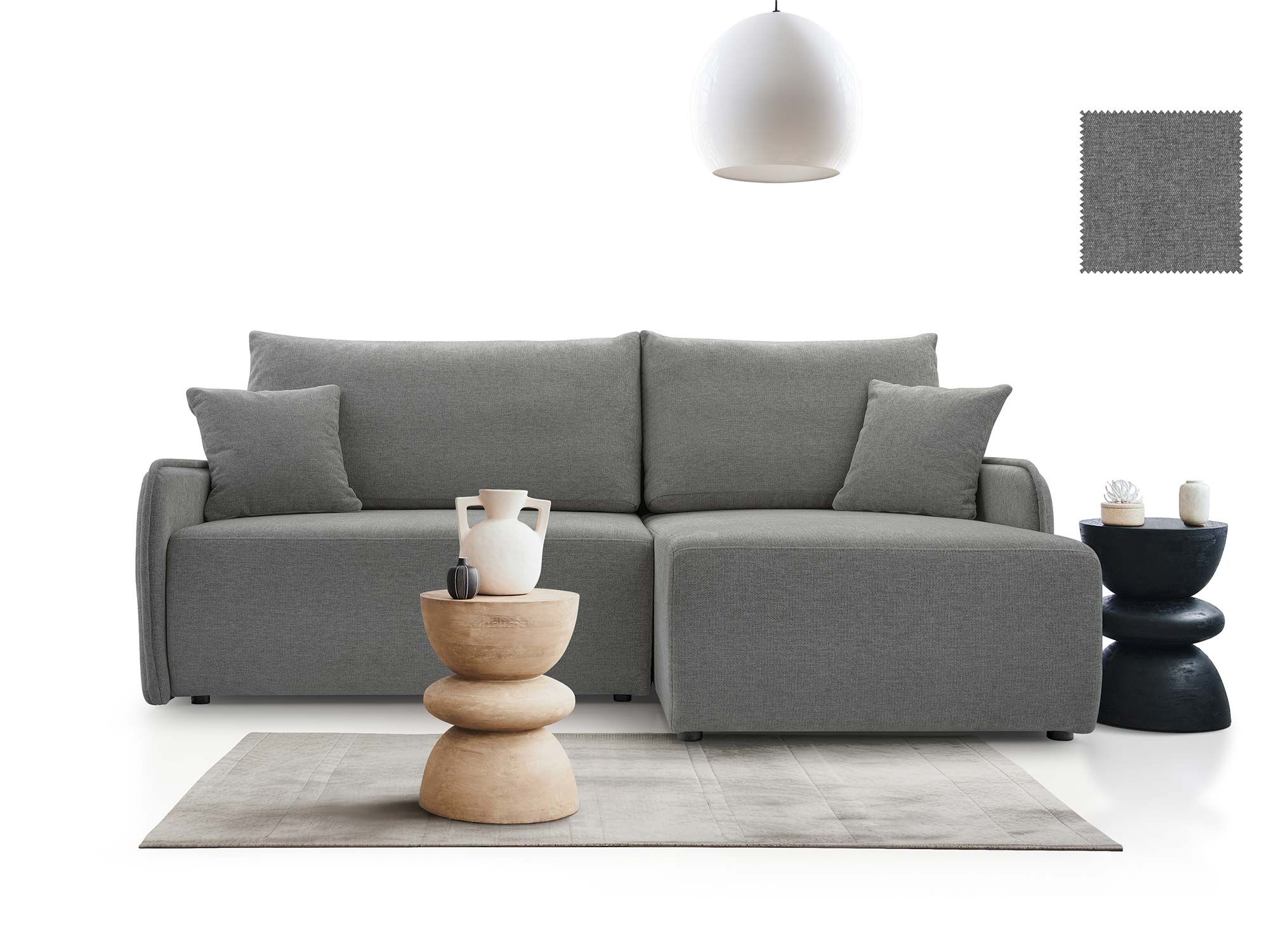 - Nowoczesny design – elegancka bryła, uzupełniona o ozdobne poduszki.